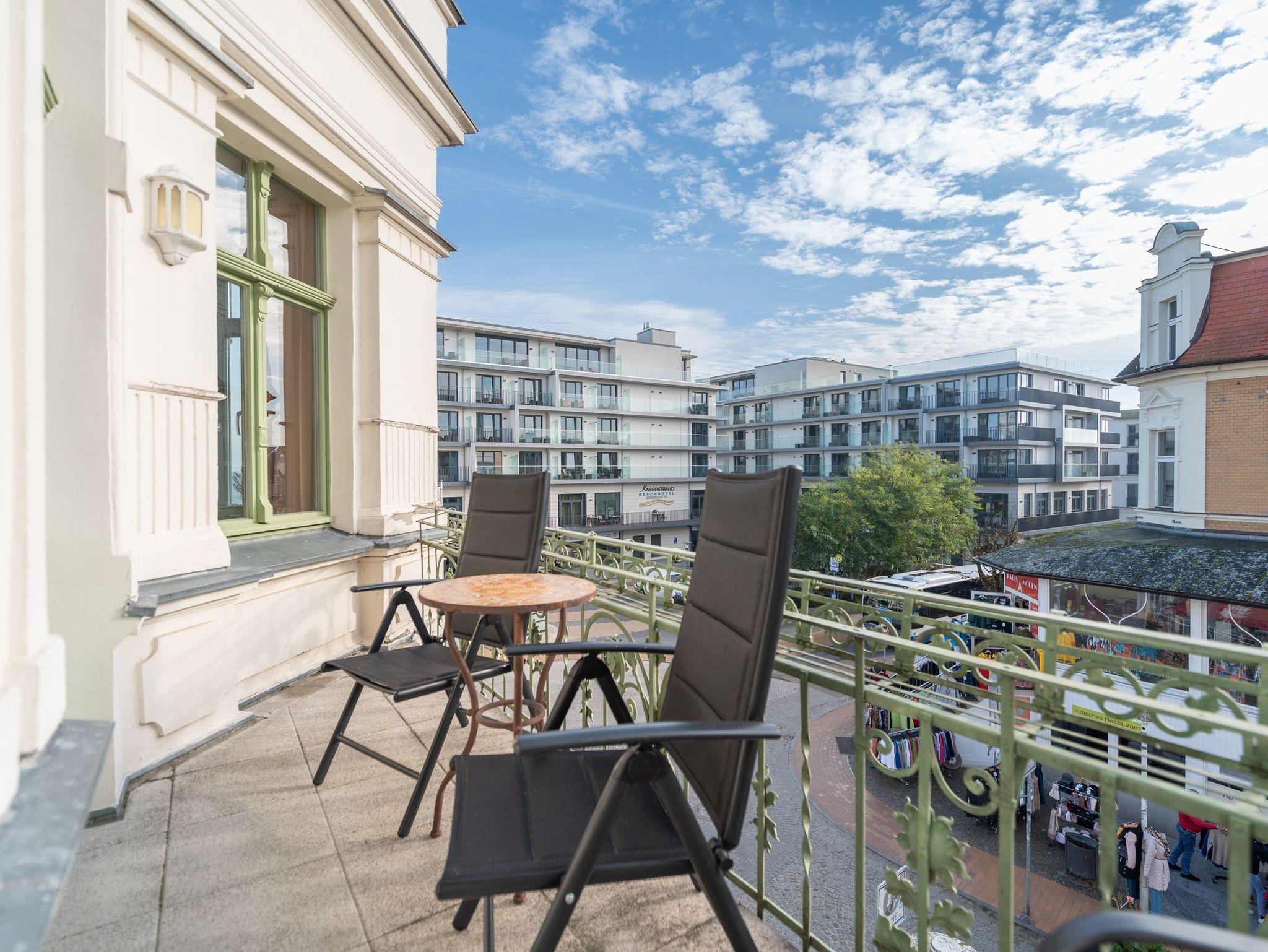 Gemütliche Ferienwohnung in der Villa Frohsinn, nur 50 Meter vom Strand in Bansin mit Meerblick und zwei Balkonen.
