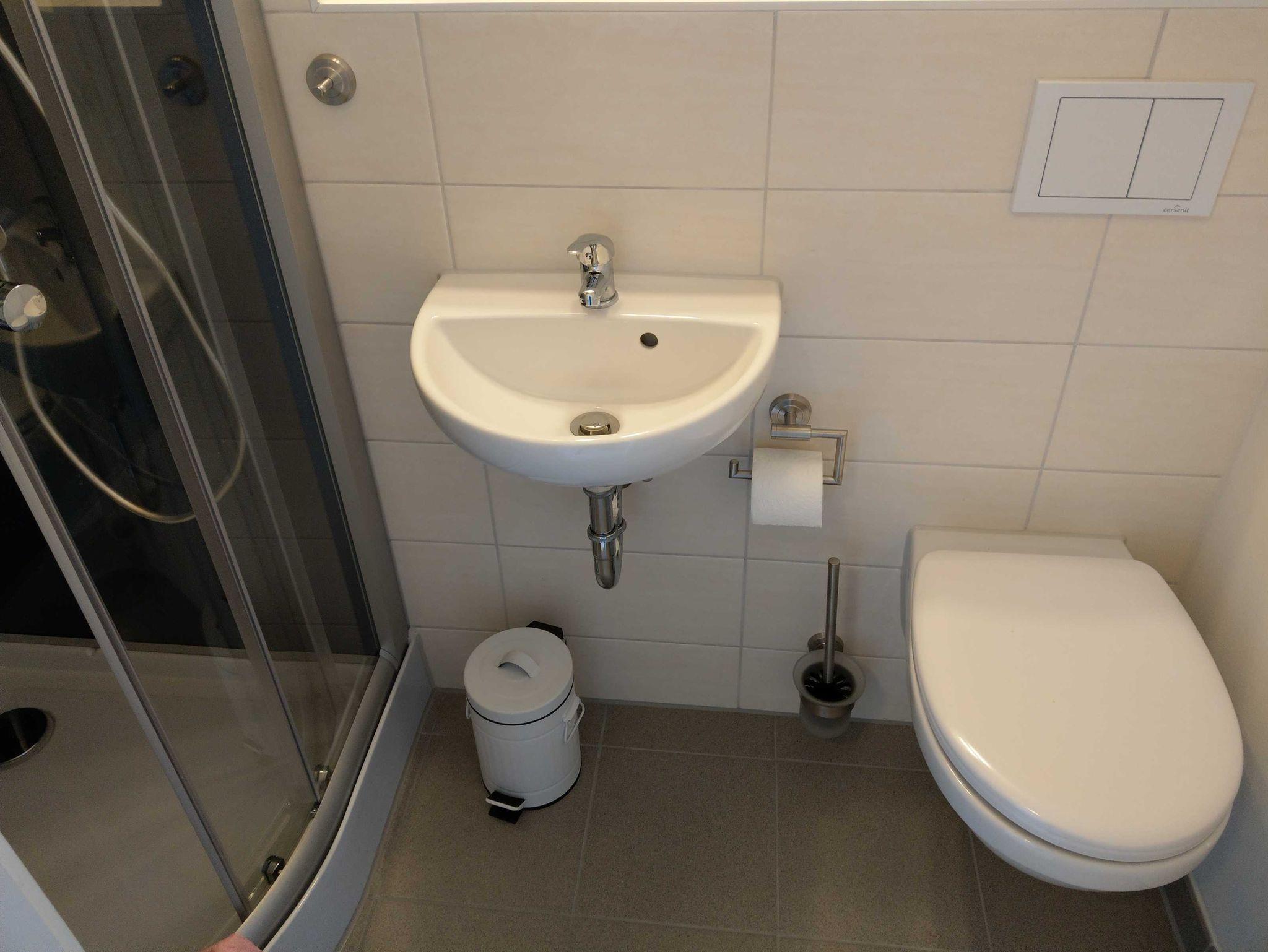 Im Dachgeschoss wurde ein kleines zweites Bad mit Dusche und WC eingebaut. Dort gibt es auch ein kleines Doppelbett (1,40 m).