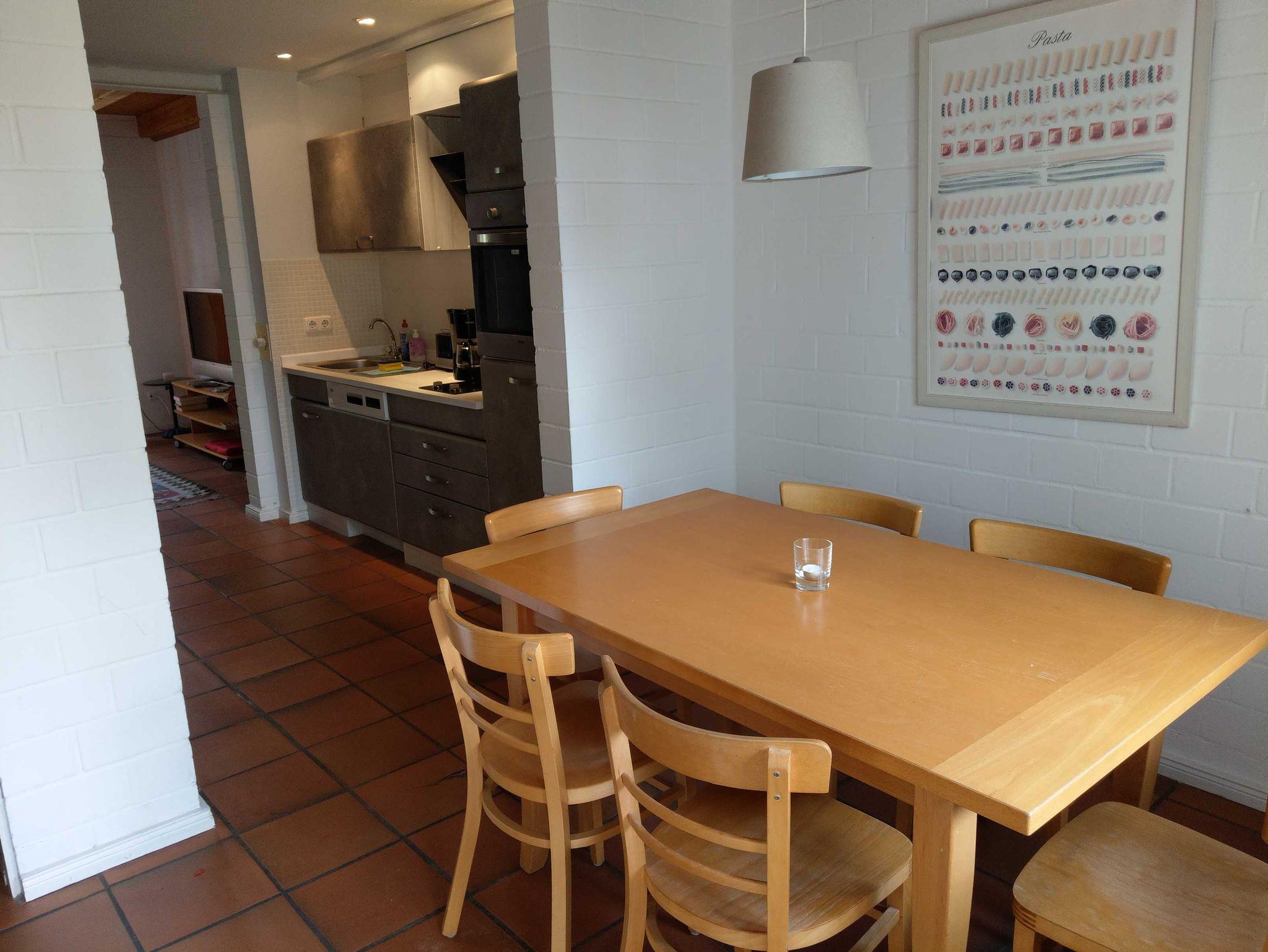 Im Erdgeschoss befindet sich das gemütliche Wohnzimmer mit Ausgang zur Terrasse (Süd-West). Die komplette Küchenzeile mit Geschirrspüler und Backofen lässt keine Wünsche offen. Der Essplatz bietet Platz für 6 Personen. Auf der Terrasse mit Terrassenmöbeln darf geraucht und gegrillt werden.