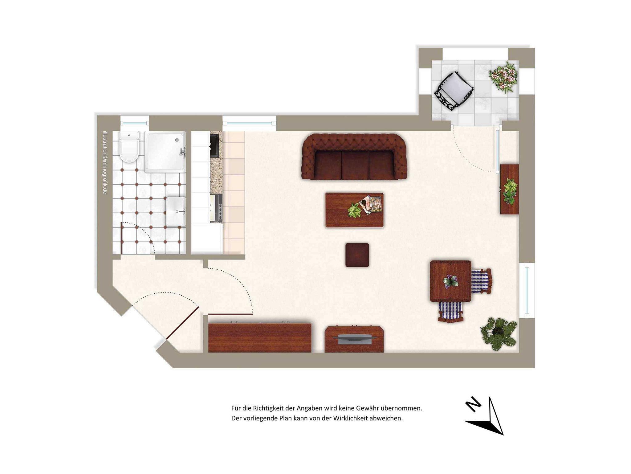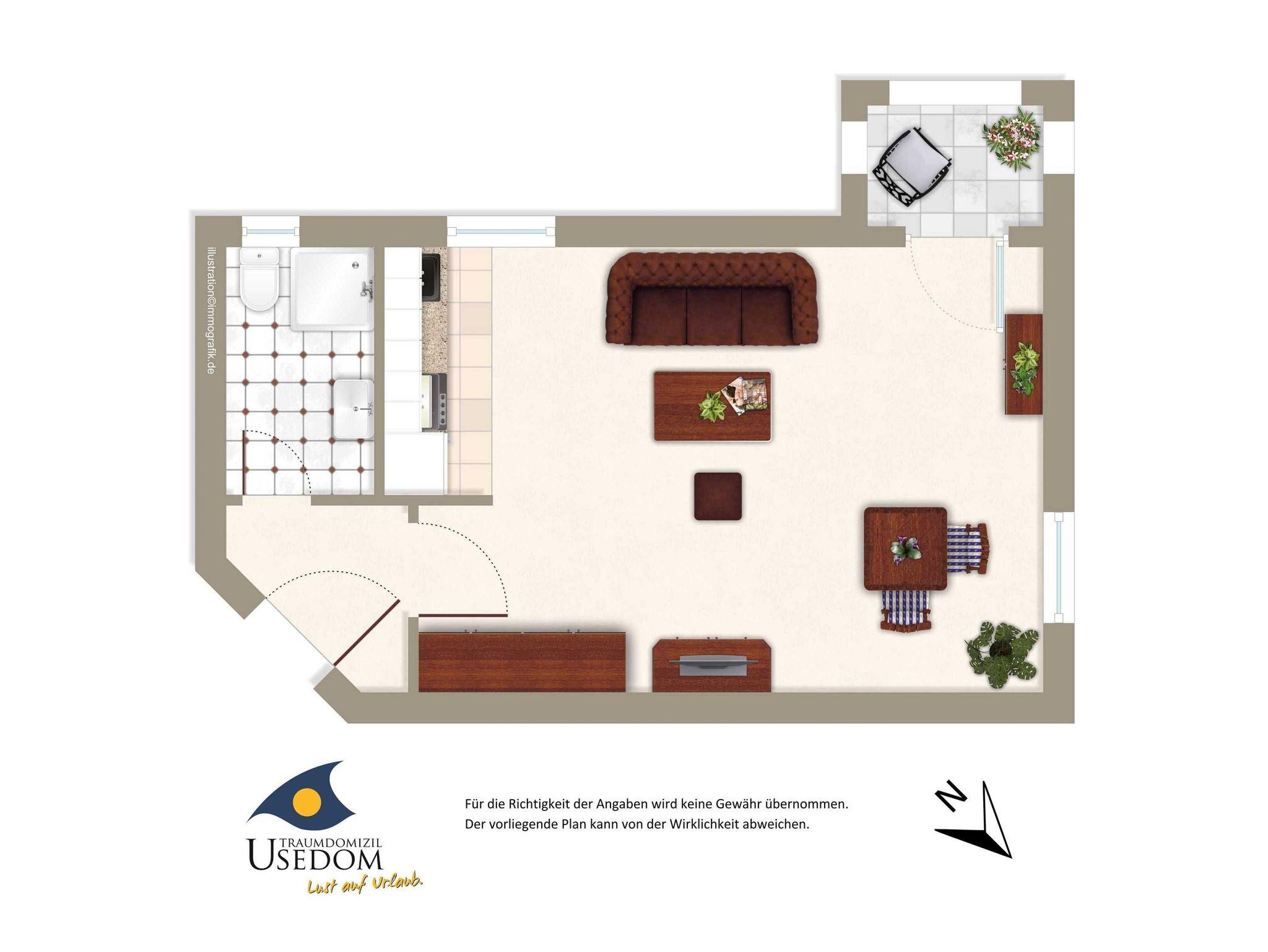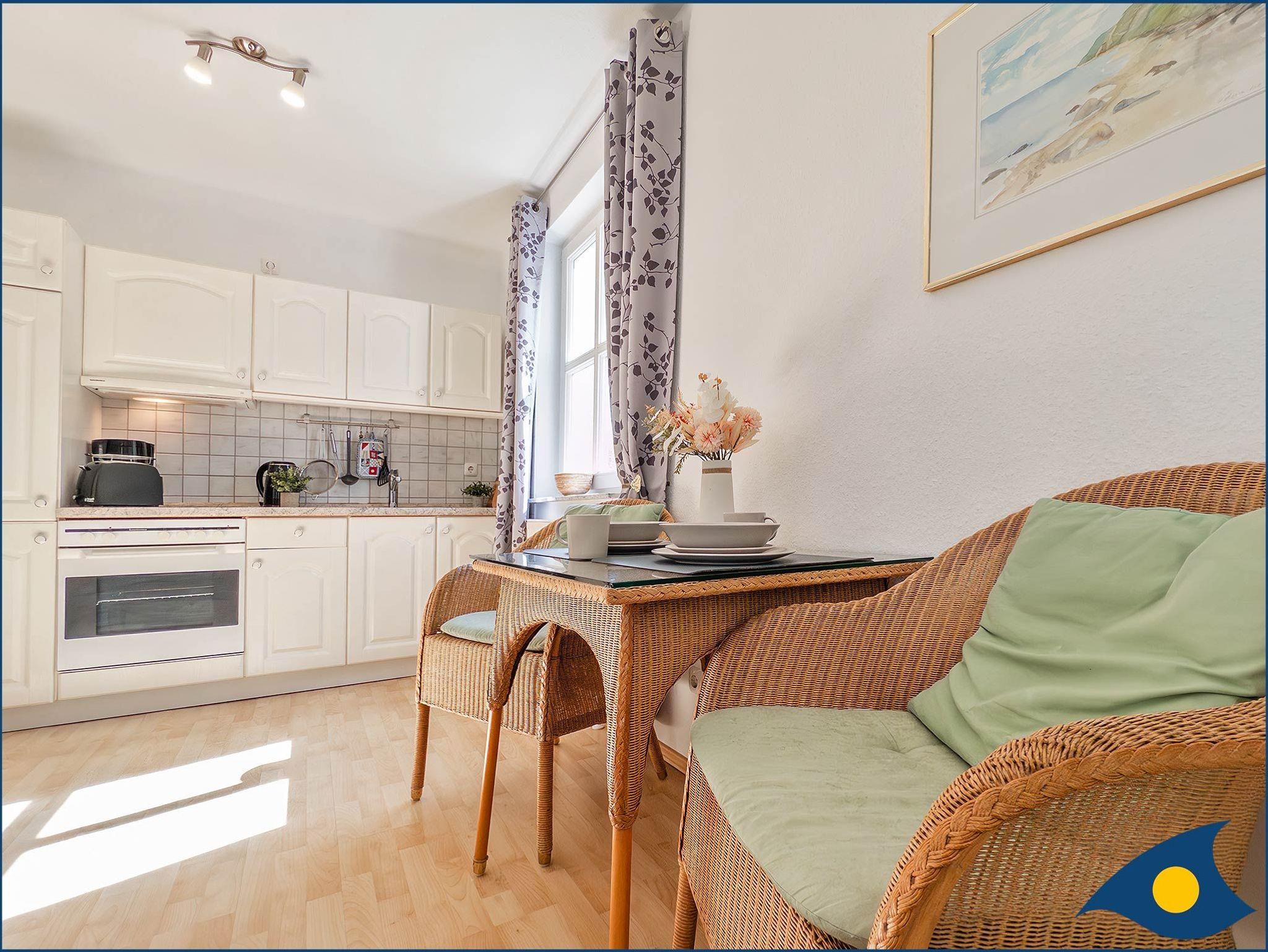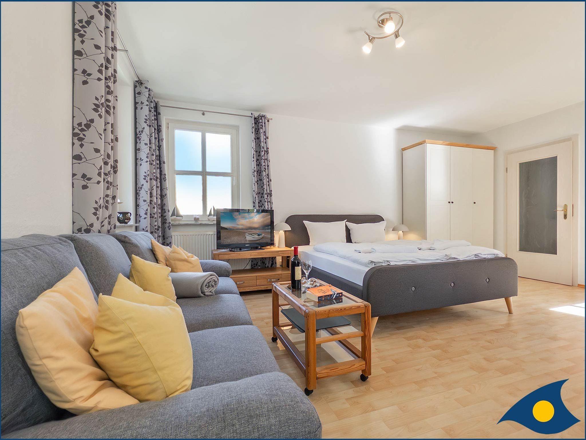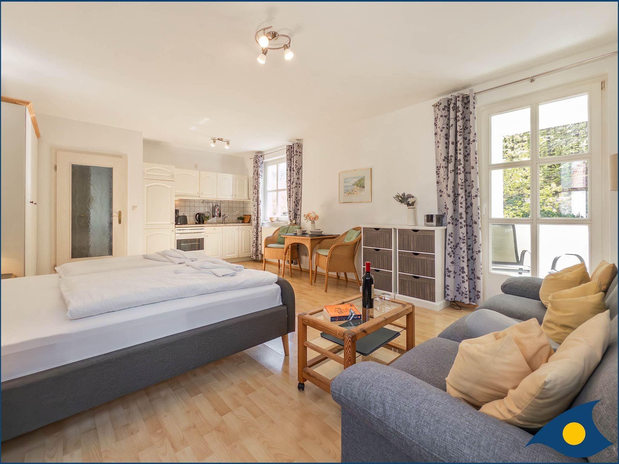 Diese gemütliche eingerichtete Einraumappartement verfügt über einen kleinen Südwestbalkon. Im Wohnzimmer finden Sie ein komfortables Bett mit Federkernmatratzen. Die moderne Küchenzeile bietet beste Voraussetzungen zur Selbstverpflegung. Ein separater Esstisch ist in der Wohnung vorhanden.