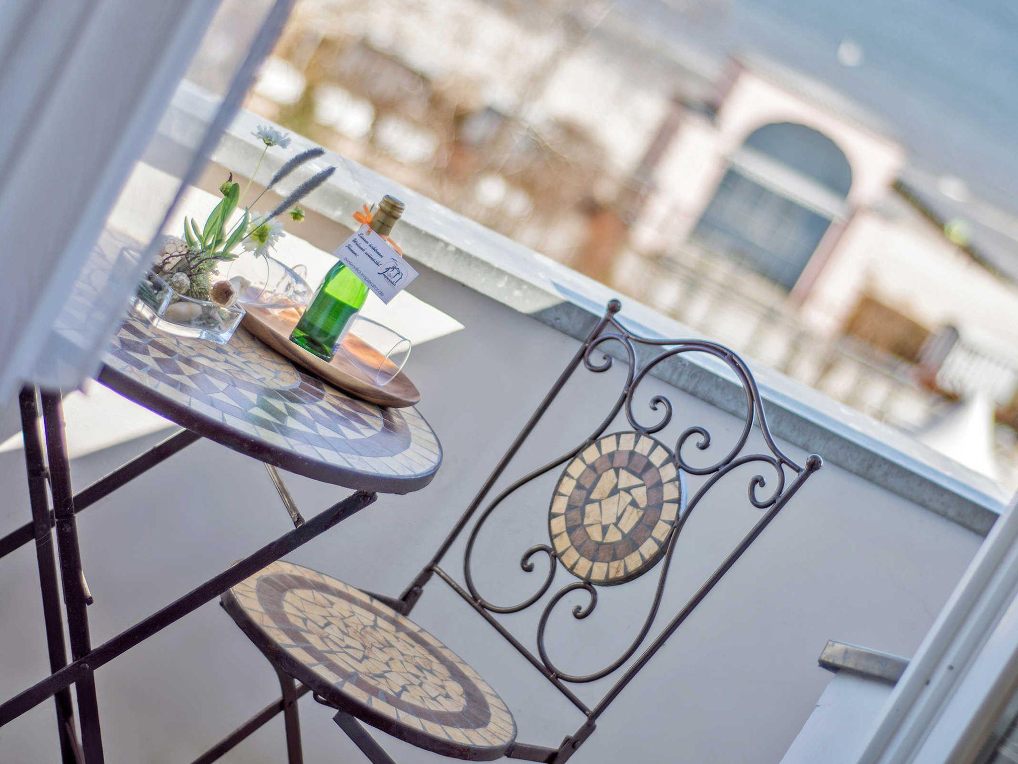 Komfortables Doppelzimmer mit Meerblick und Miniküche in der Strandvilla Imperator, nur 80 Meter vom Strand entfernt.