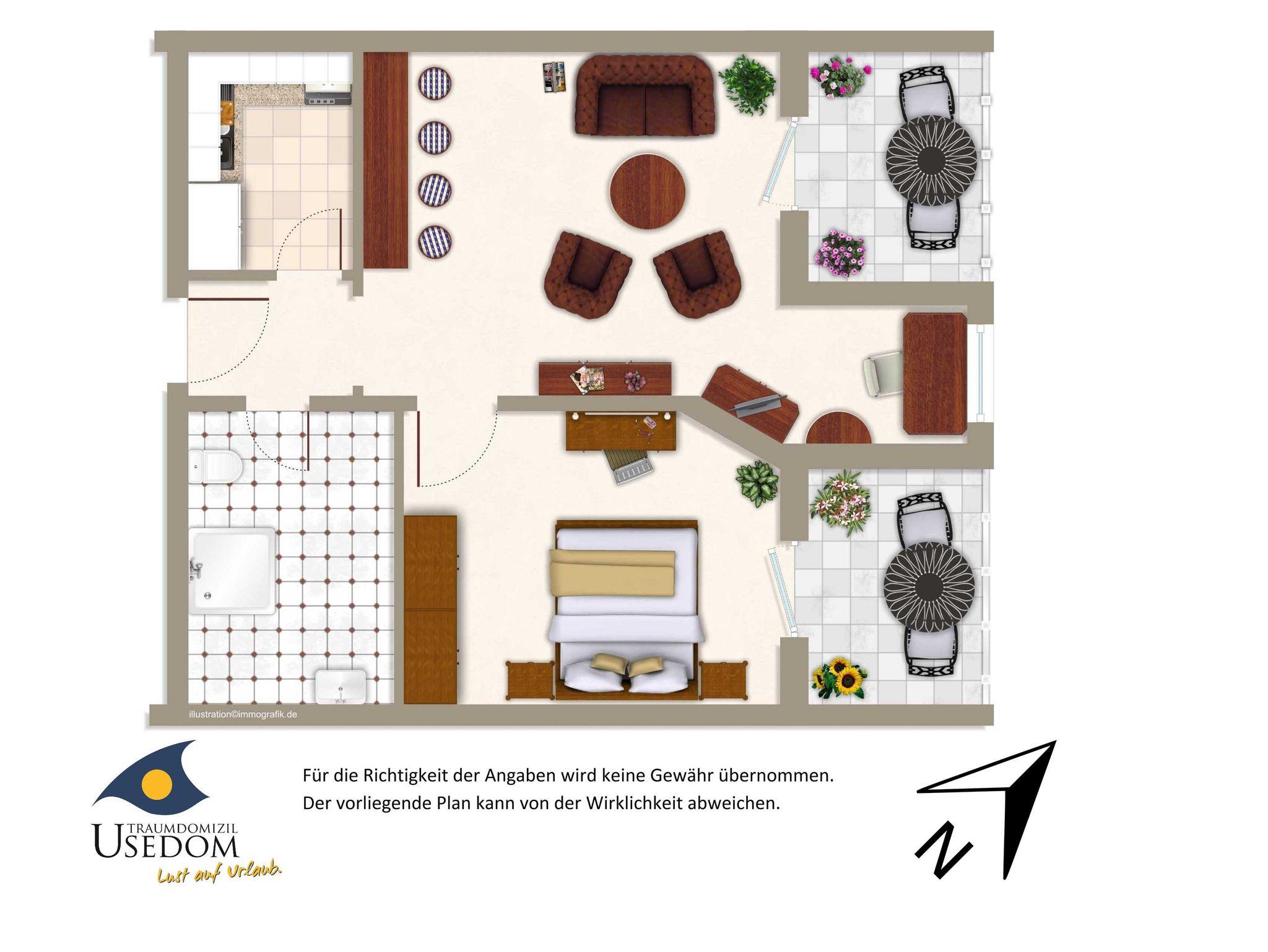 Zu diesem schönen Zweiraumappartement gehört ein 8 qm großer Balkon mit eingeschränktem Meerblick. Der kleine Tresen trennt den Küchenbereich vom Wohnzimmer. Ein bunter Stilmix und verschiedene Teppiche sorgen für eine gemütliche Atmosphäre. Vom Balkon aus kann man das Leben auf der bekannten Bansiner Bergstraße und die Aussicht bis zum Ostseestrand wunderbar genießen. Das bequeme Doppelbett sorgt für genügend Platz am Tag und einen erholsamen Schlaf in der Nacht.