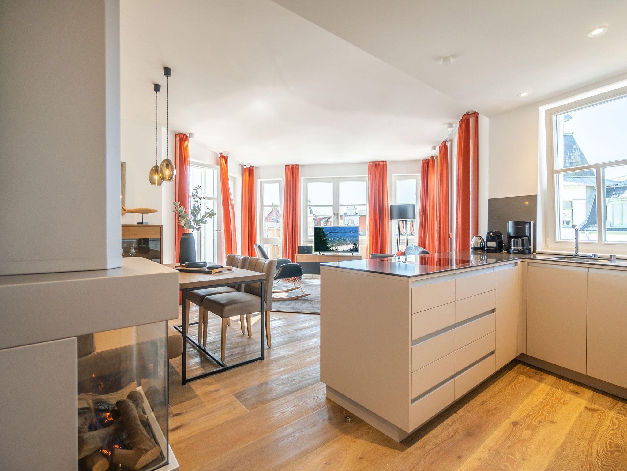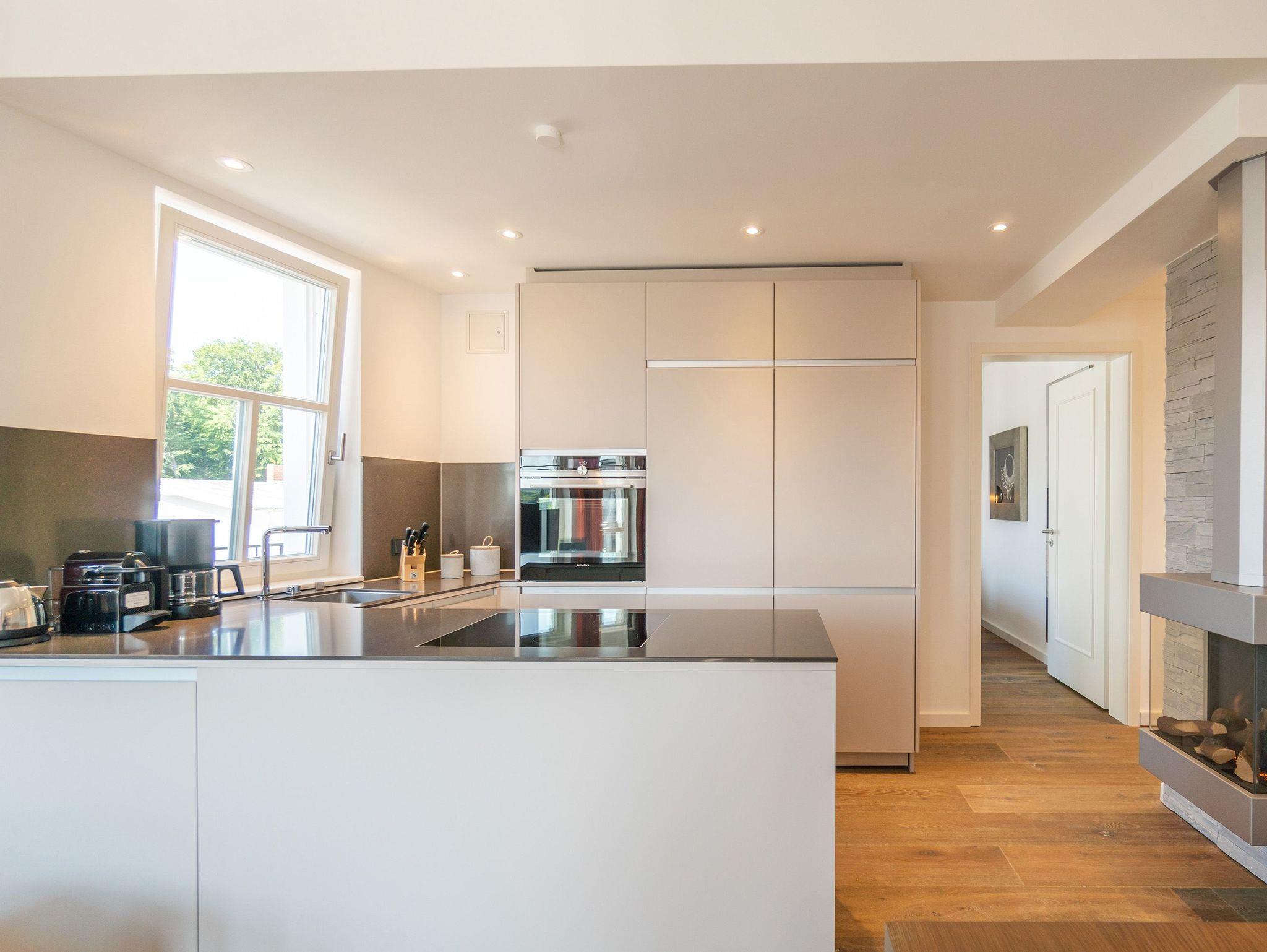 Im 3. Obergeschoss des Beachhouses werden Meerblick-Urlaubsträume wahr. Auf 69 Quadratmetern lichten Wohndesigns können bis zu vier Personen und ein Kleinkind bis drei Jahre (im Kinderreisebett) ihren Ostseeurlaubsträumen mit viel Komfort frönen. Das Meer, das sich hier schon morgens auf einem der zwei Balkone mit glitzerndem Sonnenaufgang in den Blick legt, ist nur ein paar Meter entfernt. Meeresrauschen ist hier also garantiert. Einmal tief durchatmen, den Kopf frei bekommen, abschalten und wohlfühlen in diesem Appartement gelingt das schon beim Eintreten in das lichtdurchflutete Wohnzimmer. Stilvoll und harmonisch eingerichtet fällt das Entspannen auf der bequemen Couch oder dem nordischen Design-Schaukelstuhl aus Leder nicht schwer. Ein großer Flat-TV und eine Hi-Fi-Anlage mit bluetooth sorgen für Unterhaltung. Blickfang an kühlen Tagen ist auf alle Fälle der Gas-Kamin aus Glas. Wenn sie ihn während des Essens am schönen Essplatz anmachen, zaubert er per Knopfdruck eine romantische Dinner-Atmosphäre. Zum Wohn-Essbereich hin geöffnet ist die mit hochwertigen Geräten und edlem Geschirr vollausgestattete Küche. Die nach drei Seiten frei zugängliche Kochinsel ist ein ideale Raumteiler. So können alle beim Kochen, Braten und Schmausen zusammen sein. In der Küche steht ebenfalls ein Wasch-Trockner zu Ihrer Verfügung. Vom Wohnzimmer aus haben Sie Zugang zu gleich zwei Balkonen. Ein kleinerer (8 Quadratmeter groß) hat freien Blick auf die Ostsee. Vom zweiten Balkon (9 Quadratmeter groß) aus können Sie den ganz Tag die Sonne hoch über den Dächern der Bansiner Bädervillen genießen. Denn er ist zum Süd-Westen hin ausgerichtet. Von beiden Schlafzimmern aus haben Sie ebenfalls Zugang zu jeweils einem der beiden Balkone. Beide Zimmer haben auch einen Flat-TV. Genießen Sie hier die Ruhe und gönnen Sie sich eine erholsame Nacht in den komfortablen Boxspringdoppelbetten (1,60 m x 2,00 m und 1,80 m x 2,00 m). Die Wohnung verfügt zudem über zwei Bäder mit Regendusche, Waschtisch und WC. Im Masterbad erwartet Sie sogar noch eine Finnische Sauna. Kommen Sie bei muscheligen Temperaturen ordentlich ins Schwitzen. Denn die kleine Wellnessoase steht Ihnen kostenfrei zur Verfügung. Ebenso wie das WLAN. Für Ihren Rundum-Komfort haben wir bei der Anreise die Betten bereits bezogen und Handtücher bereit gelegt. In der hochmodernen Tiefgarage ist der Stellplatz Nr. 23 für Ihre Wohnung reserviert.