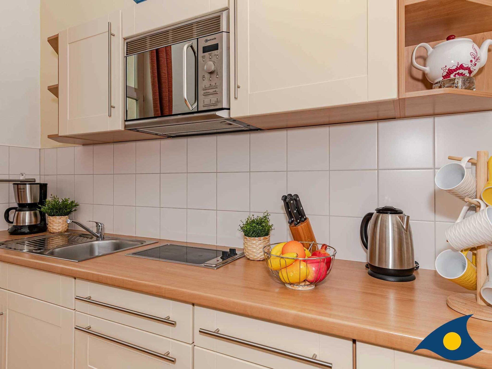 Das Appartment mit einer großen Terrasse liegt mitten im Geschehen und gleichzeitig ruhig mit seiner Lage Richtung Buchenwald. Es ist ausgestattet mit einer Küchenzeile inklusive Geschirrspüler, Bad mit ebenerdiger Dusche, W-LAN und TV.