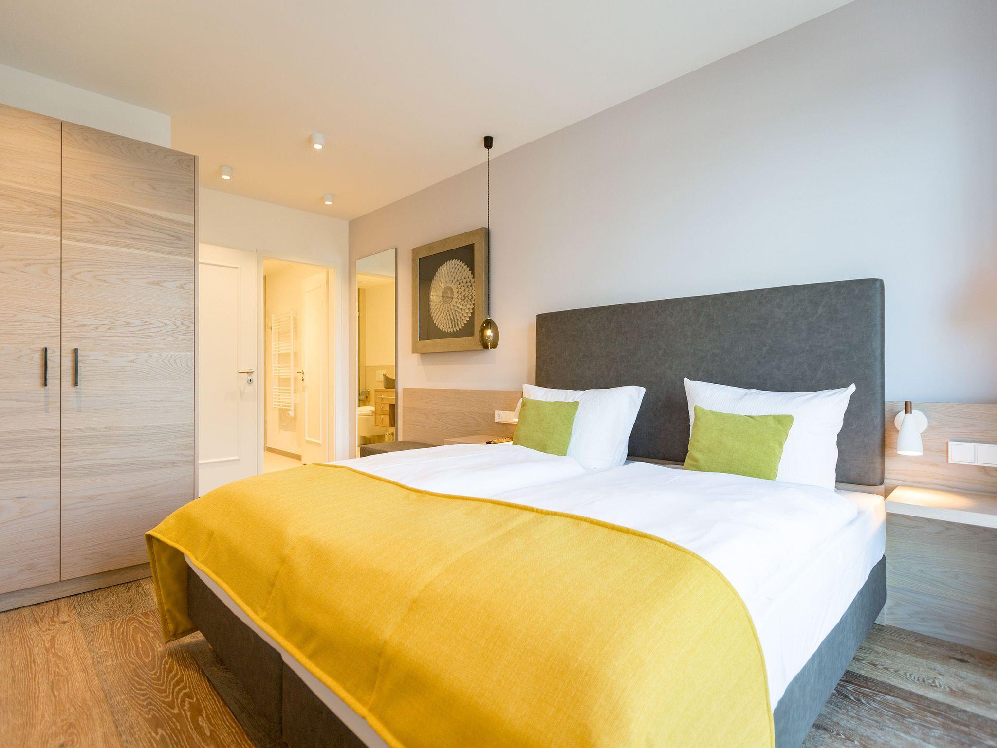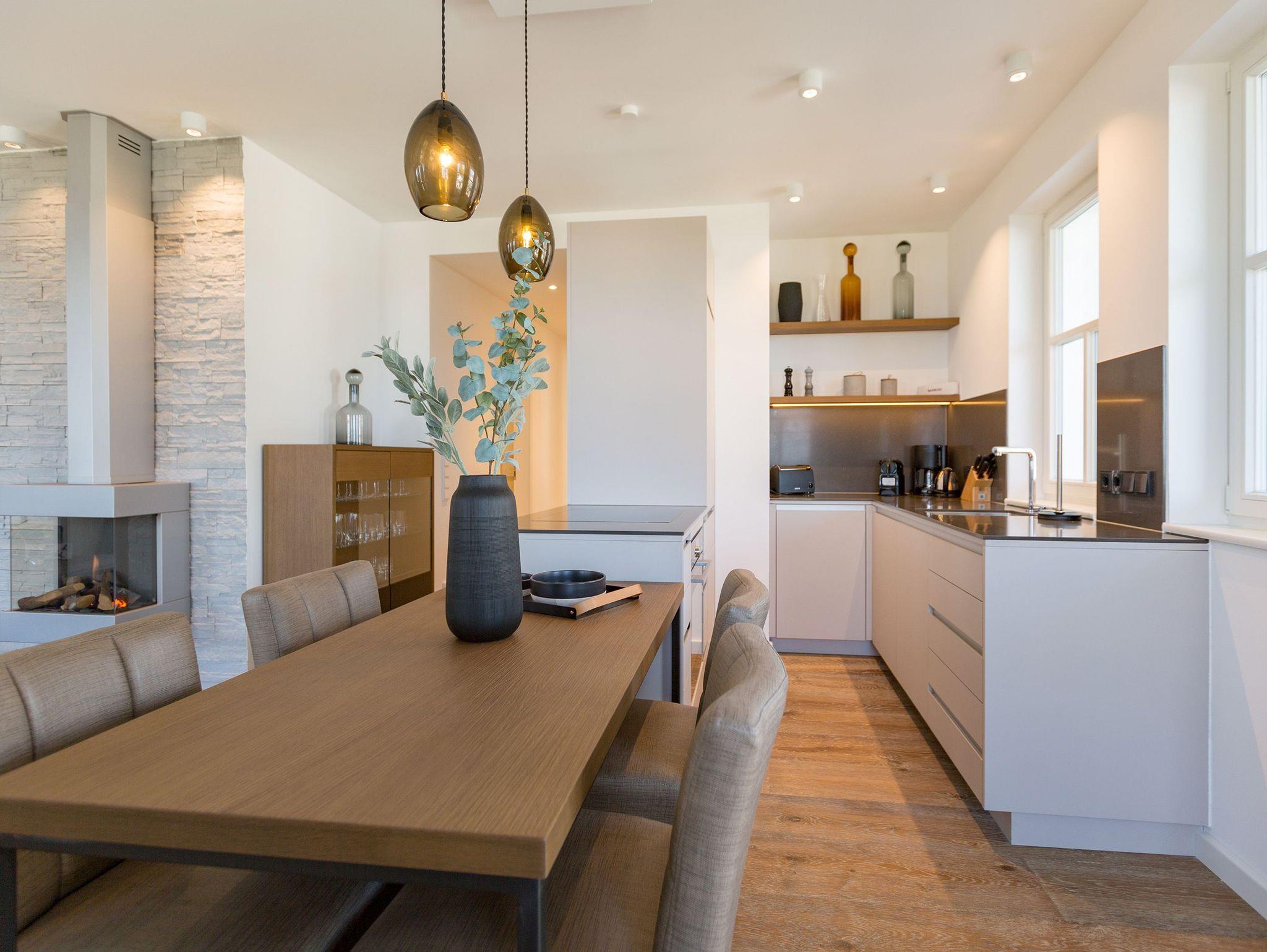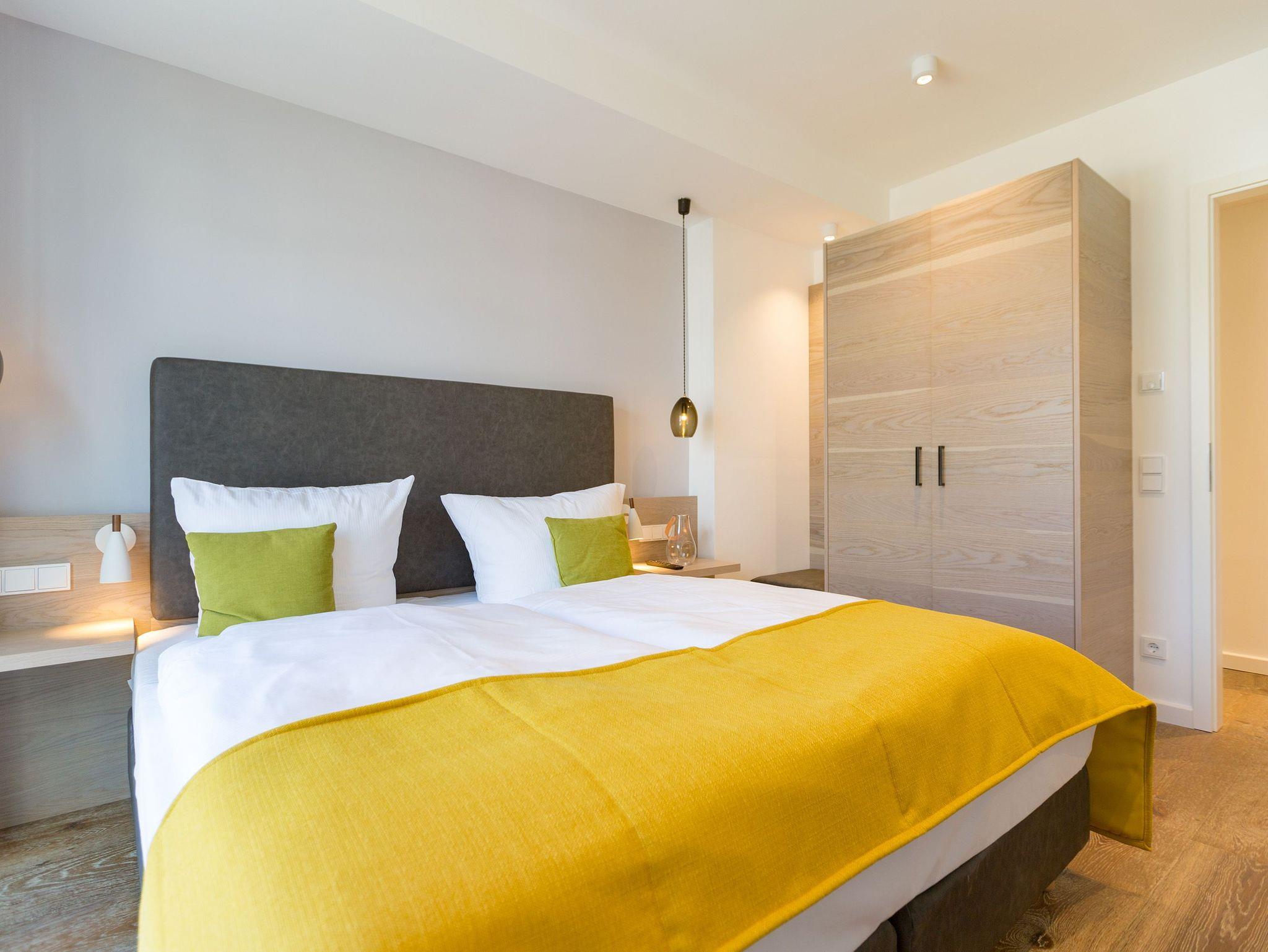 Alles aus einem Guss in diesem wunderschönen Drei-Zimmer-Feriendomizil stimmt einfach alles. Panorama-Meerblick, stylisches Wohndesign und Wohnkomfort für bis zu vier Personen, ein Kleinkind bis drei Jahre (im Kinderreisebett) und das geliebte Haustier bietet dieses Appartement im 1. Stock auf 81 Quadratmetern. Hier können und brauchen Sie sich am Blick über das weite Blau der Ostsee gar nicht satt sehen. Ob morgens, wenn die Sonne aus dem Meer aufsteigt und die Wasseroberfläche glitzert als lägen tausende Diamanten darauf oder abends, wenn der Himmel über dem Horizont sich in den zartesten Rosatönen färbt in diesem Appartement wird Ihr Urlaub zu einem ganz besonderen Auszeiterlebnis. Denn neben dem Meerblick-Balkon (14 Quadratmeter groß), auf dem Sie auch wunderbar sitzen können, hat es eine erlesene Einrichtung zu bieten. Naturmaterialien wie Holz und Stein, ein harmonisches Farbkonzept und aufeinander abgestimmte Möbel sorgen für eine entspannte Atmosphäre. Der Gas-Kamin schafft an kühlen Tagen kuschelige Flammenspiele. Der große Flat-TV und die bluetooth-Hi-Fi-Anlage gegenüber der gemütlichen Sofa-Sitzgruppe bieten Home-Entertainment vom Feinsten. Viel Raum und Platz haben Sie in dem großen und offenen Wohn-Esszimmer. Genießen Sie gemeinsame Dinner am Essplatz gleich neben der frei stehenden Kochinsel. Die Küche schließt sich nahtlos und ebenso offen an das Wohnzimmer an. Hier finden Sie alles, was Sie zum Kochen, Braten oder Backen brauchen. Hochwertige Markengeräte und erlesenes Geschirr die Küche ist vollausgestattet. Zwei Schlafzimmer bieten traumhaften Nächten wundervolle Bequemlichkeit. Boxspringdoppelbetten (jeweils 1,80 m x 2,00 m) sorgen für erholsamen Schlaf. Jedes Schlafzimmer verfügt über einen Flat-TV und einen großen Schrank mit viel Ablagemöglichkeiten. Außerdem verfügt die Wohnung über zwei Badezimmer mit Regendusche, Waschtisch und WC. Wellness-Liebhaber kommen in der Wohnung Nummer 1 ebenfalls auf ihre Kosten. Eine eigene Finnische Sauna heizt Ihnen im Masterbad an ungemütlichen Tagen und Abenden ordentlich ein. Lassen Sie los und entspannen Sie einfach drauf los! Wir haben für Sie die Betten bereits bezogen und Handtücher für Sie bereit gelegt. In der Wohnung befindet sich ein Hauswirtschaftsraum mit einem Waschtrockner. Es gibt einen Safe. Und das WLAN ist kostenfrei. In der modernen Tiefgarage ist für Sie der Stellplatz Nr. 1 im Doppelparker oben (max. Höhe 1,90m, max. Länge 5,10 m, max. Breite 2,50 m, max. Last 2.600 kg) reserviert.
