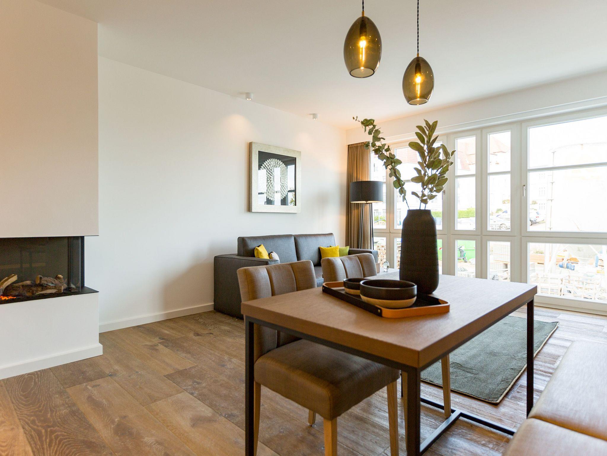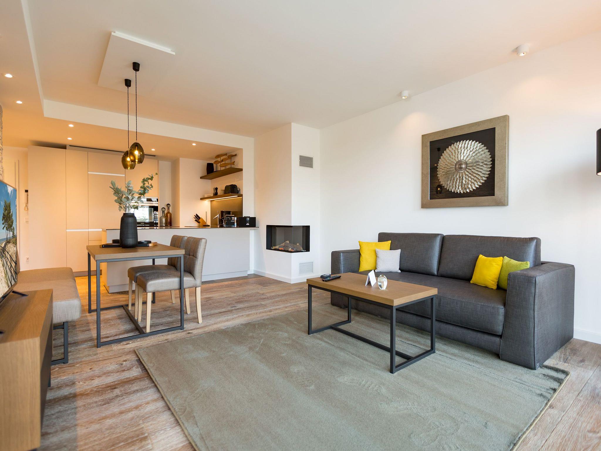Exklusiv Urlauben, das können Sie in dem 51 Quadratmeter großen zwei-Raum-Appartement im 1. Obergeschoss des Beachhouses vis-à-vis zur Ostsee perfekt. Denn dieses wunderschöne, lichtdurchflutete Feriendomizil macht Auszeitträume wahr. Zwei Personen und ein geliebter Vierbeiner können hier eine entspannte Zeit miteinander verbringen, Alltagssorgen und Stress vergessen und sich am Strand einmal so richtig den Kopf von der frischen Ostseebrise frei pusten lassen. Vom Balkon (6 Quadratmeter) Ihrer Ferienwohnung aus können Sie aufs Meer hinaus schauen. Genießen Sie beim Frühstück oder bei einem Sundowner den endlosen Blick über die blaue Weite. Legen Sie die Füße hoch auf der bequemen Couch im luftig geräumigen und großzügigen Wohn-Esszimmer. Hochwertige Materialien, eine aufeinander abgestimmte Gestaltung und Einrichtung sowie stylische Accessoires verleihen dem Appartement Stil und Eleganz. Ein Gas-Kamin lädt zu romantischen Stunden vor dem Flammenspiel ein. Ein schöner Esstisch mit Stühlen und einer Sitzbank ist der perfekte Platz für lauschige Essen und Plauderstunden. Eine Hi-Fi-Anlage mit Bluetooth sorgt für die passende Musik, ein großer Flat-TV für spannendes Home-Entertainment. Sie kochen gern? Die vollausgestattete, offene Küchenzeile eignet sich dazu ideal. In den Schränken finden Sie edles Design-Geschirr und für diverse Brat- oder Back-Aktionen stehen Ihnen Markengeräte zur Verfügung. Zu einem erholsamen Urlaub gehört auch ein vergnüglicher Schlaf. Den finden Sie garantiert im gemütlichen Schlafzimmer mit dem großen Boxspringdoppelbett (1,80 m x 2,00 m). Von hier aus haben Sie ebenfalls einen Zugang auf den Balkon. So können Sie direkt nach dem Aufwachen Ihre Meersehnsucht stillen. Auch in diesem Zimmer haben Sie einen Flat-TV. Große Schränke im Schlafzimmer und im Flur bieten ausreichend Platz für die Urlaubsgarderobe. In einem Safe können Sie Ihre Wertgegenstände verstauen. Das Bad ist eine echte Wohlfühlzone mit großer, ebenerdiger Regendusche, geräumigem Waschtisch mit beleuchtetem Spiegel, WC und einer Finnischen Sauna, die Sie kostenfrei nutzen können. In einem kleinen Hauswirtschaftsraum befindet sich ein Wasch-Trockner. Für Ihren Komfort sind die Betten bezogen und Handtücher liegen bereit. Das WLAN ist ebenfalls kostenfrei. In der modernen Tiefgarage ist für Sie der Stellplatz Nr. 8 im Doppelparker oben (max. Höhe 2,00m, max. Länge 5,10 m, max. Breite 2,50 m, max. Last 2.600 kg) reserviert.