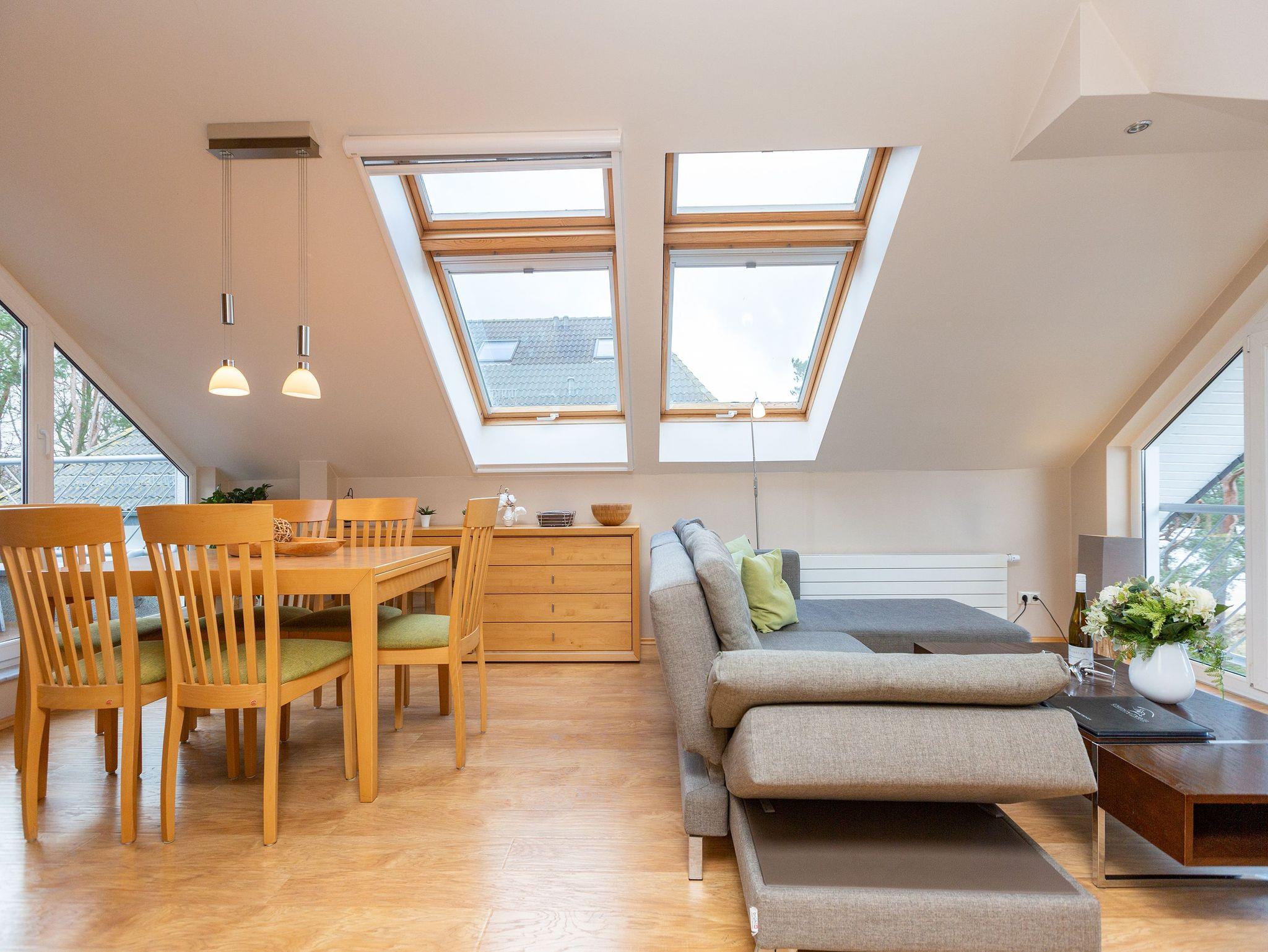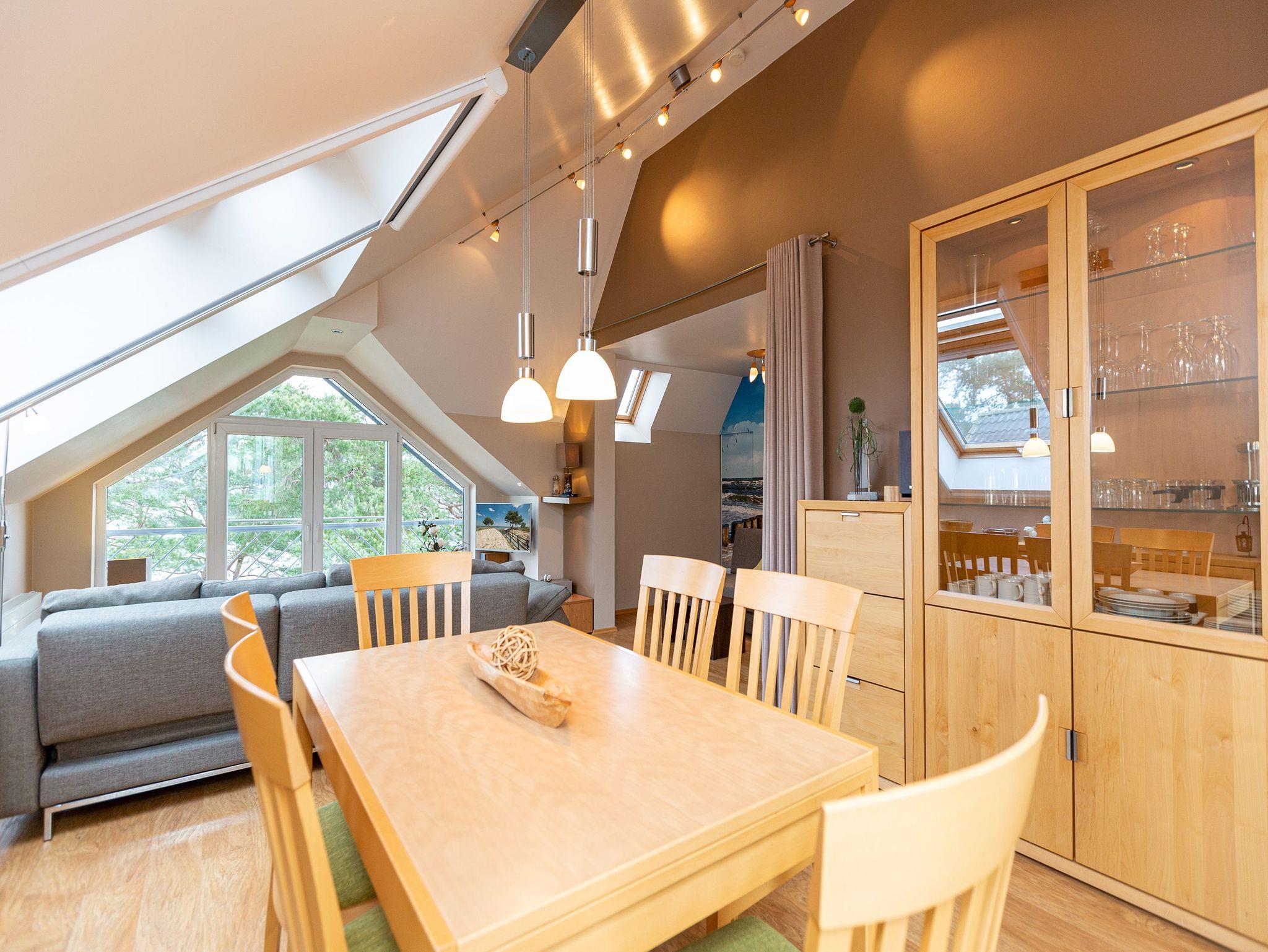 Fantastischer Meerblick und Dachterrasse. Residieren Sie im Obergeschoß der Villa Strandperle. Ob im hellen lichtdurchfluteten Wohnzimmer oder auf Ihrer Dachterrasse, lassen Sie die Seele baumeln beim Blick auf die Ostsee. Diese Ferienwohnung (75 qm) ist für max. 4 Personen ausgestattet und verfügt über ein Wohnzimmer mit Essplatz und einem zusätzlichen Schlafbereich mit einer Schlafcouch, der durch einen blickdichten Vorhang vom übrigen Wohnraum abgetrennt werden kann. Das Bad in diesem Domizil bietet Ihnen eine Dusche und Badewanne, ein Argument für kalte Jahreszeiten. Das Highlight ist der separate Küchenbereich mit großen Fensterfronten, die man zur Dachterrasse hin öffnen kann. In Ihrem Schlafzimmer finden Sie ein Doppelbett und einen kleinen Balkon, der zum Bansiner Schloonsee ausgerichtet ist. Auf Wunsch stellen wir für unsere kleinen Gäste ein Kinderreisebett (ohne zusätzliche Matratze [&] Bettzeug) und einen Kinderhochstuhl ( gegen einen Aufpreis) zur Verfügung. Für Ihren Komfort sind die Betten bei der Anreise bezogen und Handtücher liegen bereit (Erstausstattung). Für Ihren PKW steht ein Außenstellplatz Nr. 32 auf dem Grundstück zur Verfügung.