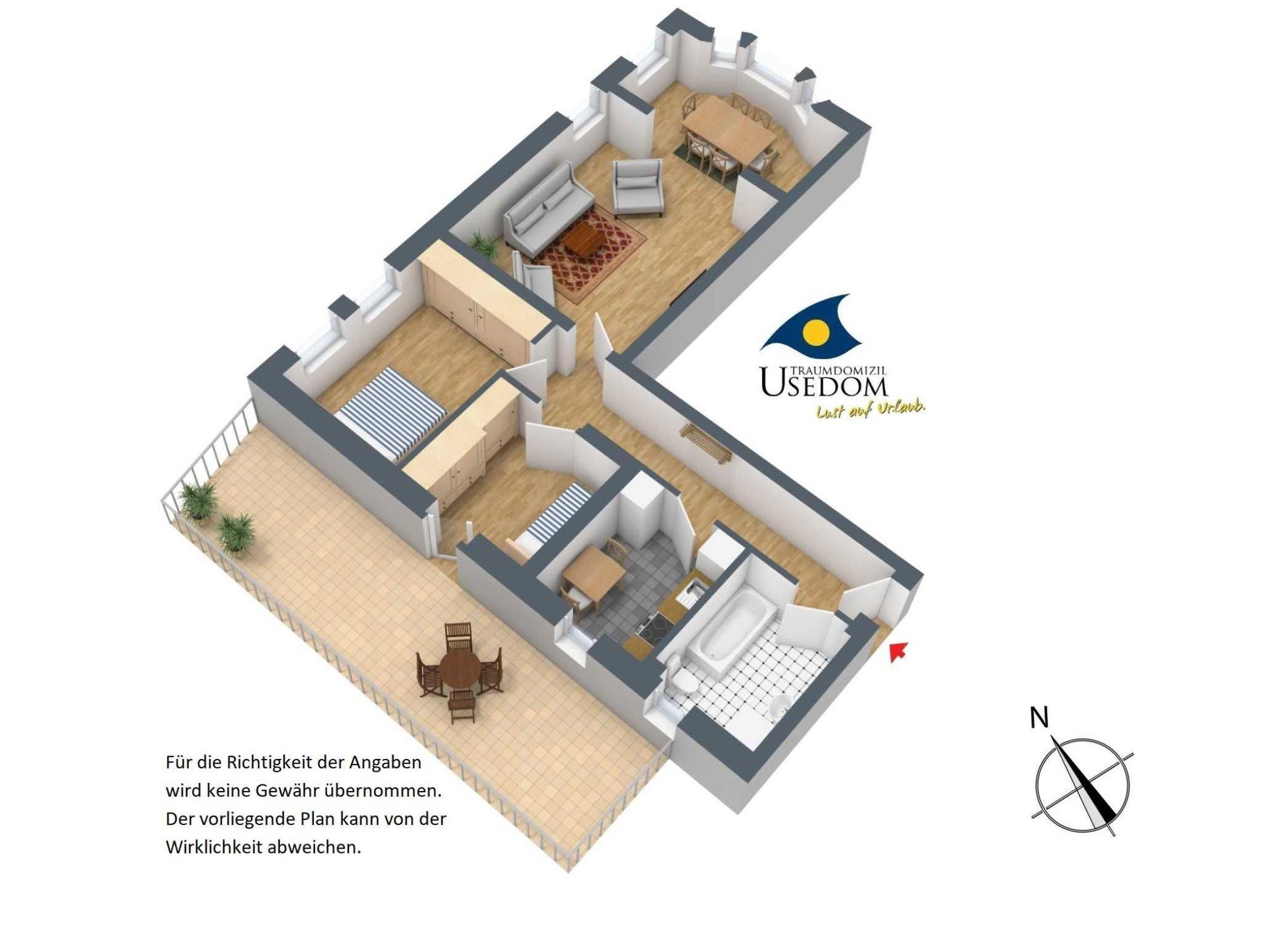 Gemütliches 3-Zimmer-Appartement nahe Strand und Zentrum in Bansin mit Terrasse und Seeblick.