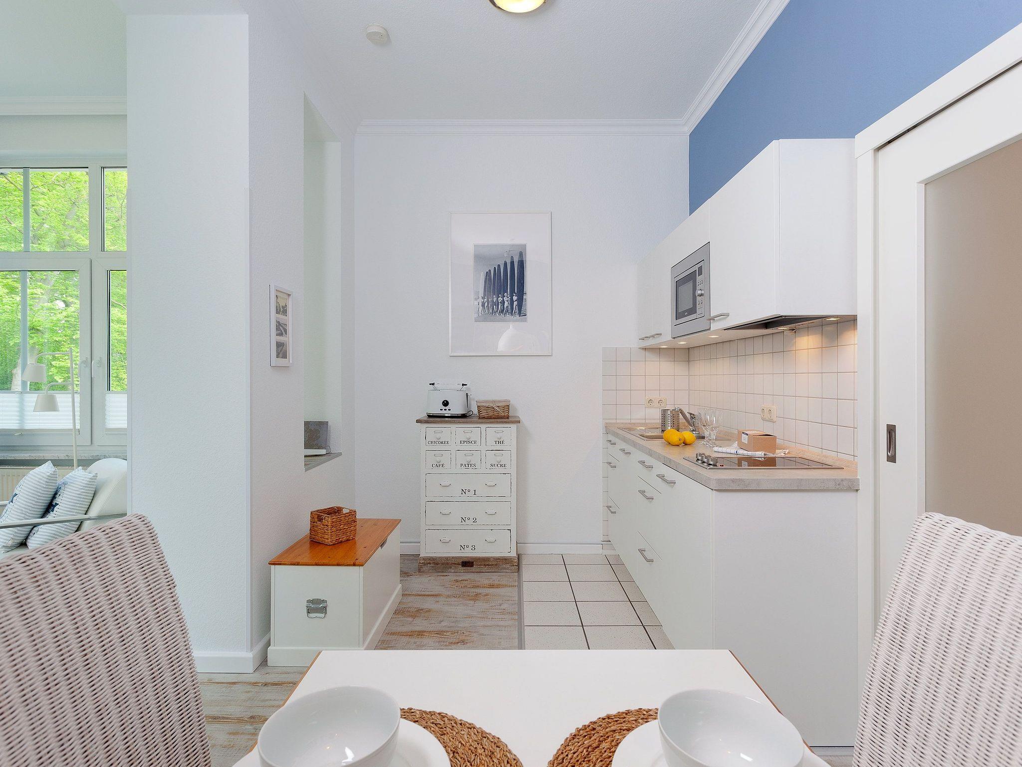 Die kleine aber feine Ferienwohnung ist das ideale Urlaubsdomizil für verliebte Pärchen, aber auch für reisefreudige Singles. Der kombinierte Wohn-, Koch- und Essbereich ist in hellen Farben mit leichten Farbnuancen gehalten und garantiert Gemütlichkeit zu jeder Jahreszeit. Die exklusive Küchenzeile ist mit Allem bestückt, was Sie für die Zubereitung Ihrer Lieblingsspeisen benötigen. Neben zwei Ceranfeldern und einem Kühlschrank findet sich auch eine Mikrowelle, Wasserkocher, Kaffeemaschine und ein Toaster. An dem separaten Esstisch können Sie die kulinarischen Speisen im passenden Ambiente genießen. In dem angrenzenden Wintergarten, mit traumhaften Blick in den gegenüberliegenden Park, bieten das hochwertige Doppelbett (160 x 200cm) und der neue 32 LCD / LED TV jeglichen Komfort um entspannt und erholt in den nächsten Urlaubstag starten zu können oder diesen ausklingen zu lassen.
