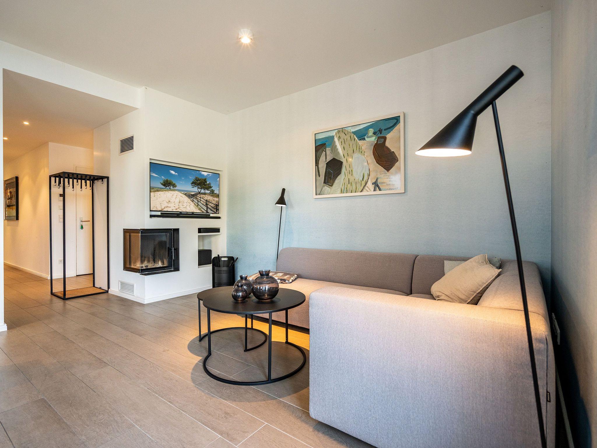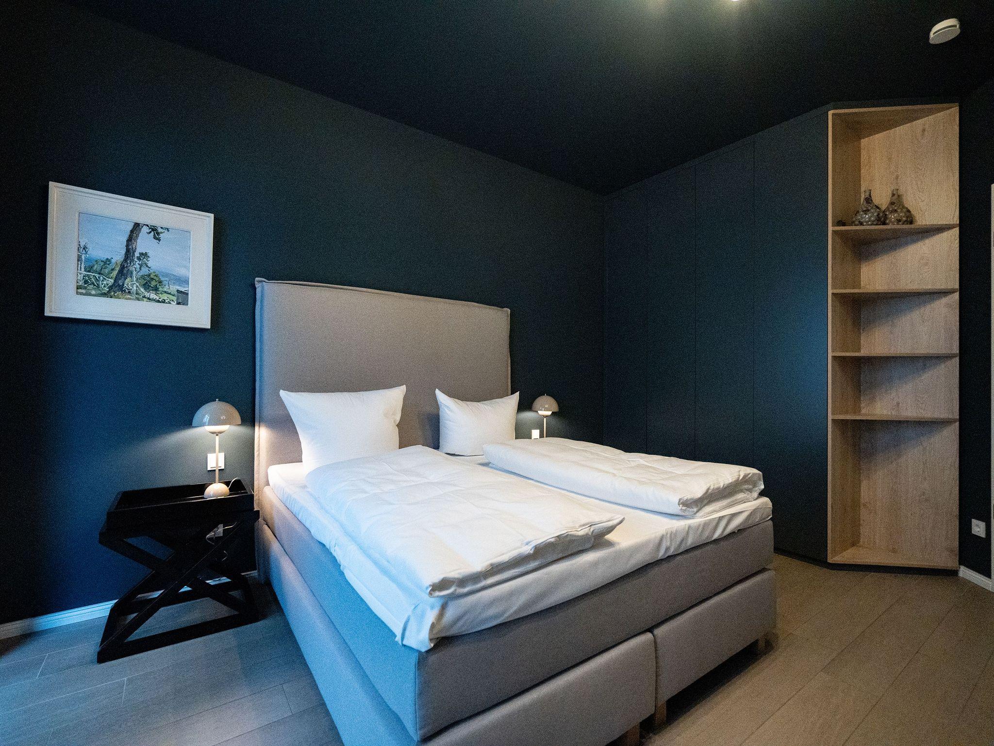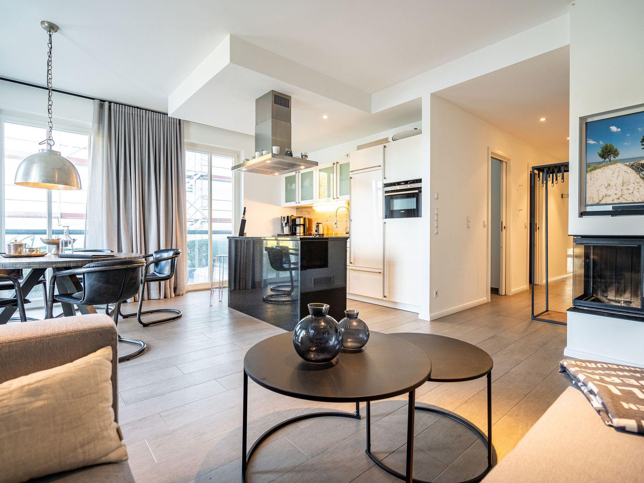 Gemütlicher Lifestyle, eine riesige Sonnenterrasse und ein wunderschöner Ausblick auf den Schloonsee! Unsere neue 4-Raum-Ferienwohnung im Erdgeschoss der Strandresidenzen bietet auf großzügigen 120 Quadratmetern (buchbar für 5 Personen [&] 2 Kleinkinder bis 3 Jahre im Kinderreisebett) ein perfektes Urlaubsdomizil. Freuen Sie sich auf zeitgemäßes Design, kombiniert mit wohnlichen Accessories und abgestimmten Farben und Stoffen. Der helle Wohnbereich mit lässiger Sitzgruppe, Flat-TV und schönem Kamin schließt sich die komplett ausgestattete, offene Küche und an den sonnigen Essplatz an. Der schöne Blick auf den Schloonsee und der großzügige Südbalkon versetzen Sie sicher gleich in Urlaubslaune. Zwei große Schlafzimmer sind mit je einem Doppelboxspringbett (1,80 m x 2,00m) ausgestattet, die für einen erholsamen Schlaf sorgen. Das 3. kleinere Schlafzimmer verfügt über ein Einzelboxspringbett (0,90m x 2,00m) und einen Einbaukleiderschrank. In allen Zimmern kann ein zusätzliches Kinderreisebett (zubuchbar) aufgestellt werden. Ergänzt wird die Wohnung durch ein Bad mit Badewanne und ein Bad mit Dusche, die hier integrierte Sauna lädt zum Relaxen ein. Ein besonderes Highlight ist die riesige 50 qm große, halbumlaufende Südwest-Terrasse. Ausgestattet mit schönen Gartenmöbeln, Strandkorb und Blick auf den Schloonsee wird sie in den wärmeren Jahreszeiten sicher schnell zu Ihrem Lieblingsplatz. Für Ihren Komfort sind die Betten bei der Anreise bezogen und Handtücher liegen bereit. Zwei Pkw-Stellplätze stehen in der Tiefgarage zur Verfügung. Auf Wunsch stellen wir ein Kinderreisebett und einen Kinderhochstuhl gegen Aufpreis zur Verfügung. Das WLAN-Netz in der Wohnung steht kostenfrei zur Verfügung - bitte fragen Sie an unserer Rezeption danach. Für den Tag am Meer steht Ihnen als besonderes Bonbon von Mitte Mai bis Ende September (je nach Witterung) zusätzlich ein Strandkorb am Strand und auf der Terrasse kostenlos zur Verfügung.