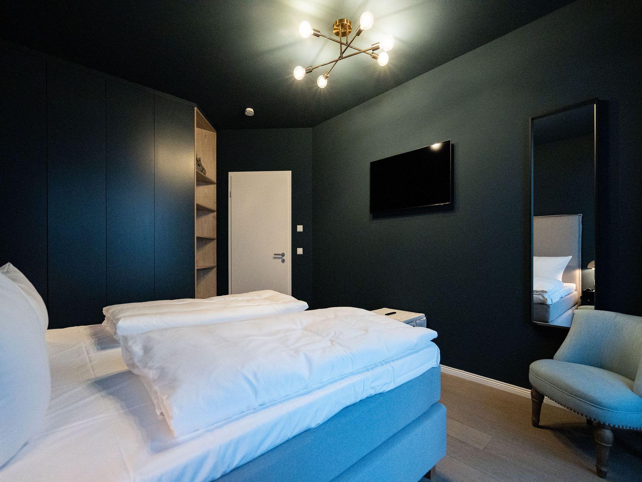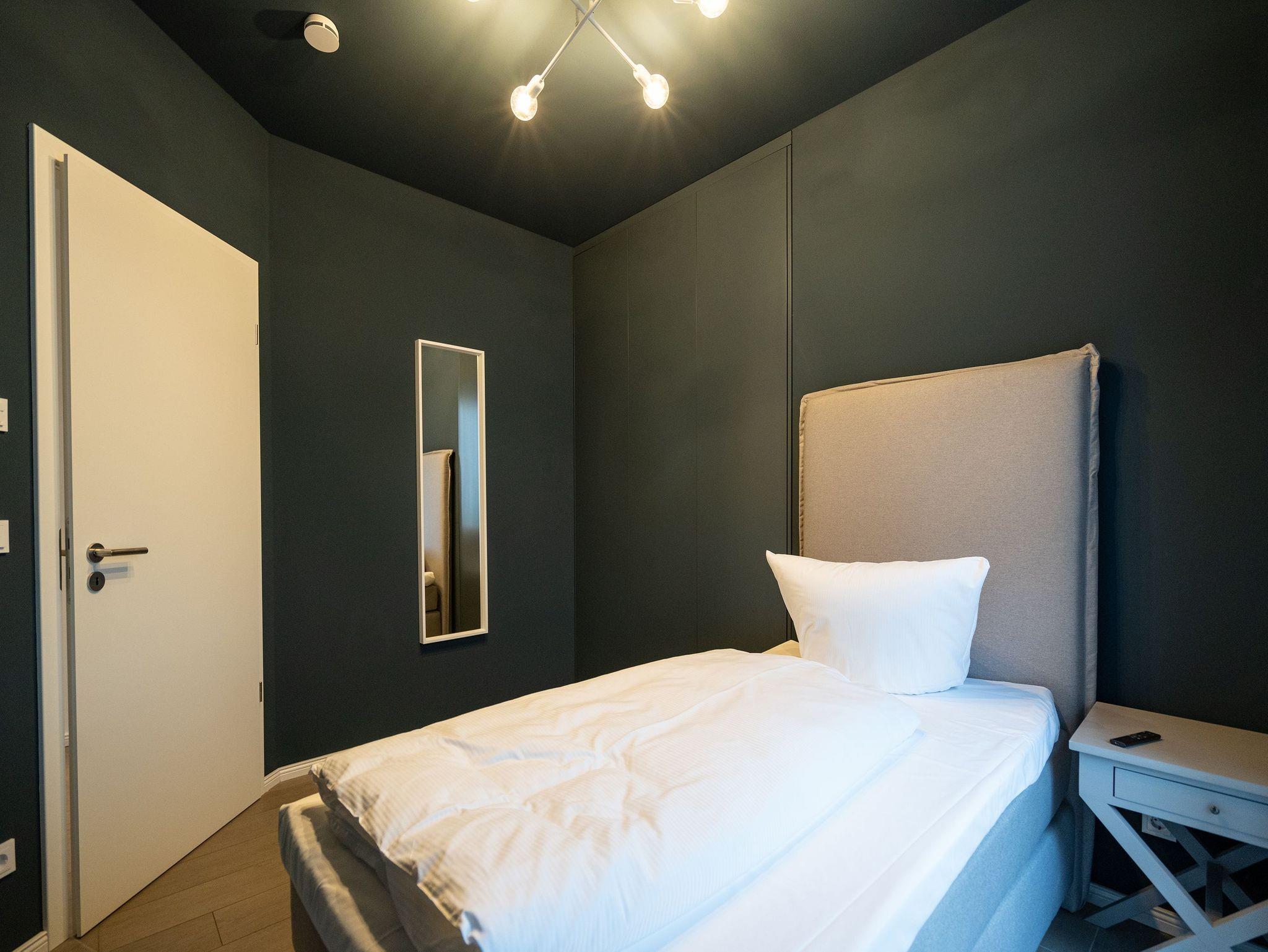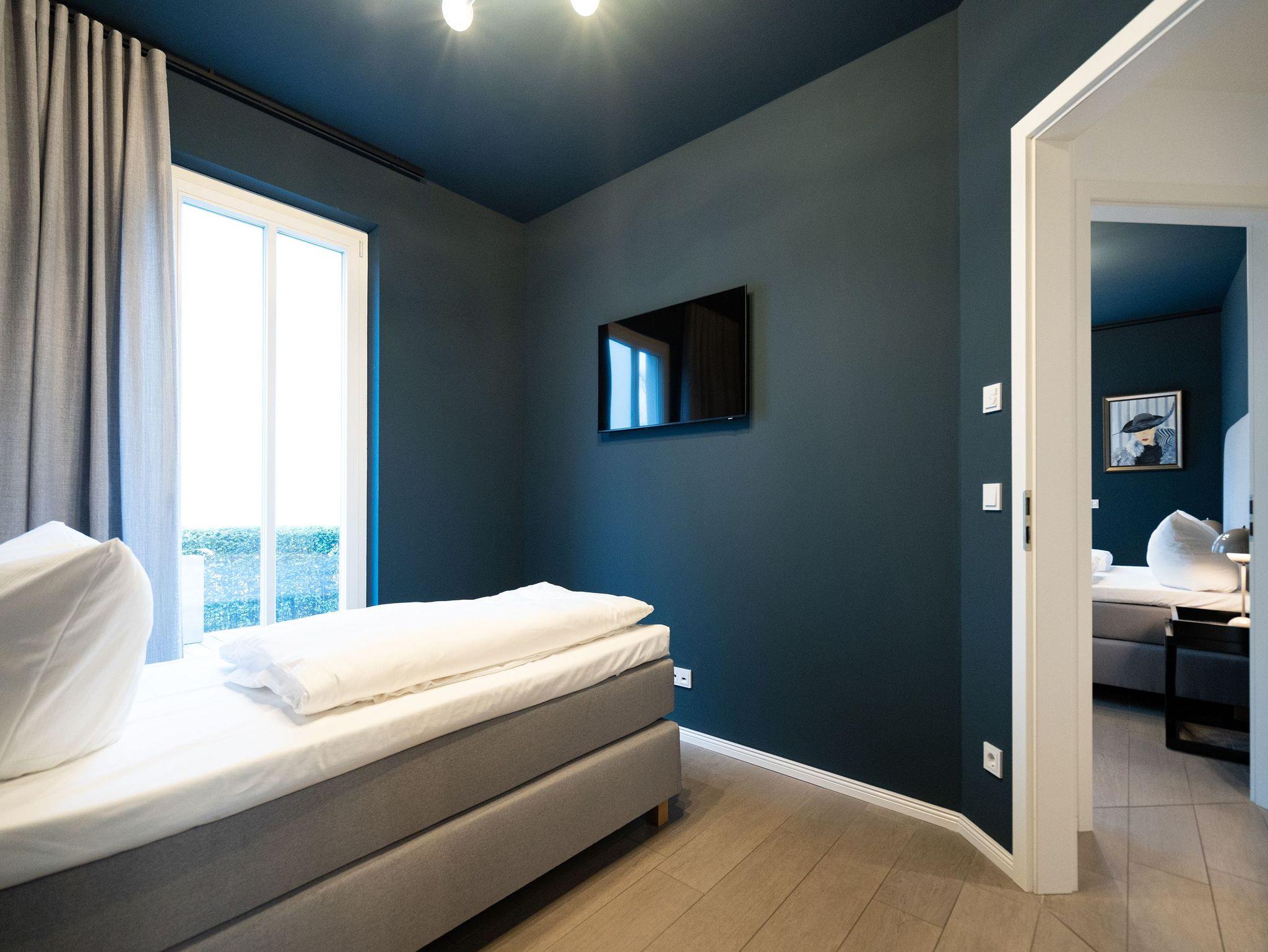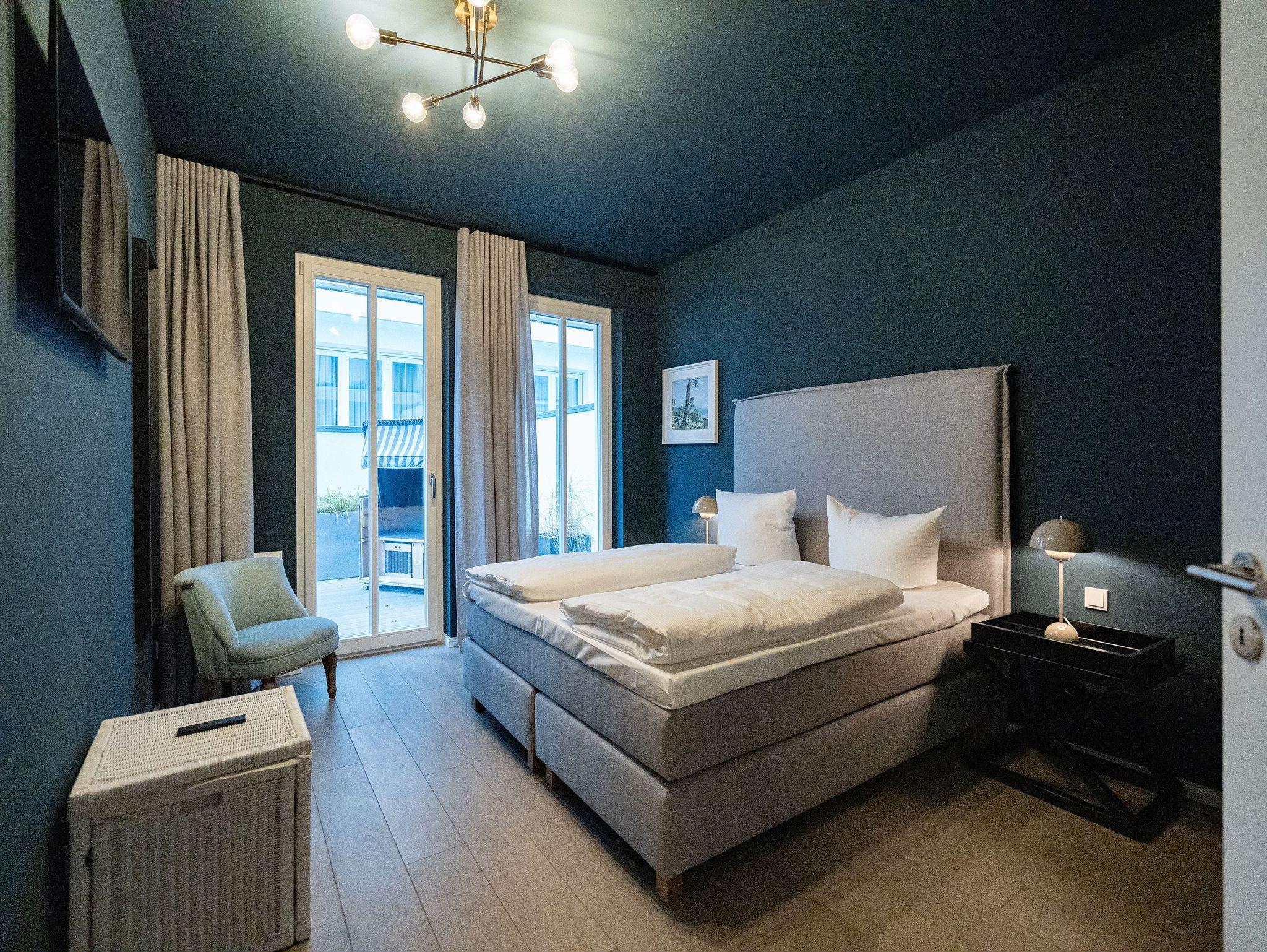 Gemütlicher Lifestyle, eine riesige Sonnenterrasse und ein wunderschöner Ausblick auf den Schloonsee! Unsere neue 4-Raum-Ferienwohnung im Erdgeschoss der Strandresidenzen bietet auf großzügigen 120 Quadratmetern (buchbar für 5 Personen [&] 2 Kleinkinder bis 3 Jahre im Kinderreisebett) ein perfektes Urlaubsdomizil. Freuen Sie sich auf zeitgemäßes Design, kombiniert mit wohnlichen Accessories und abgestimmten Farben und Stoffen. Der helle Wohnbereich mit lässiger Sitzgruppe, Flat-TV und schönem Kamin schließt sich die komplett ausgestattete, offene Küche und an den sonnigen Essplatz an. Der schöne Blick auf den Schloonsee und der großzügige Südbalkon versetzen Sie sicher gleich in Urlaubslaune. Zwei große Schlafzimmer sind mit je einem Doppelboxspringbett (1,80 m x 2,00m) ausgestattet, die für einen erholsamen Schlaf sorgen. Das 3. kleinere Schlafzimmer verfügt über ein Einzelboxspringbett (0,90m x 2,00m) und einen Einbaukleiderschrank. In allen Zimmern kann ein zusätzliches Kinderreisebett (zubuchbar) aufgestellt werden. Ergänzt wird die Wohnung durch ein Bad mit Badewanne und ein Bad mit Dusche, die hier integrierte Sauna lädt zum Relaxen ein. Ein besonderes Highlight ist die riesige 50 qm große, halbumlaufende Südwest-Terrasse. Ausgestattet mit schönen Gartenmöbeln, Strandkorb und Blick auf den Schloonsee wird sie in den wärmeren Jahreszeiten sicher schnell zu Ihrem Lieblingsplatz. Für Ihren Komfort sind die Betten bei der Anreise bezogen und Handtücher liegen bereit. Zwei Pkw-Stellplätze stehen in der Tiefgarage zur Verfügung. Auf Wunsch stellen wir ein Kinderreisebett und einen Kinderhochstuhl gegen Aufpreis zur Verfügung. Das WLAN-Netz in der Wohnung steht kostenfrei zur Verfügung - bitte fragen Sie an unserer Rezeption danach. Für den Tag am Meer steht Ihnen als besonderes Bonbon von Mitte Mai bis Ende September (je nach Witterung) zusätzlich ein Strandkorb am Strand und auf der Terrasse kostenlos zur Verfügung.