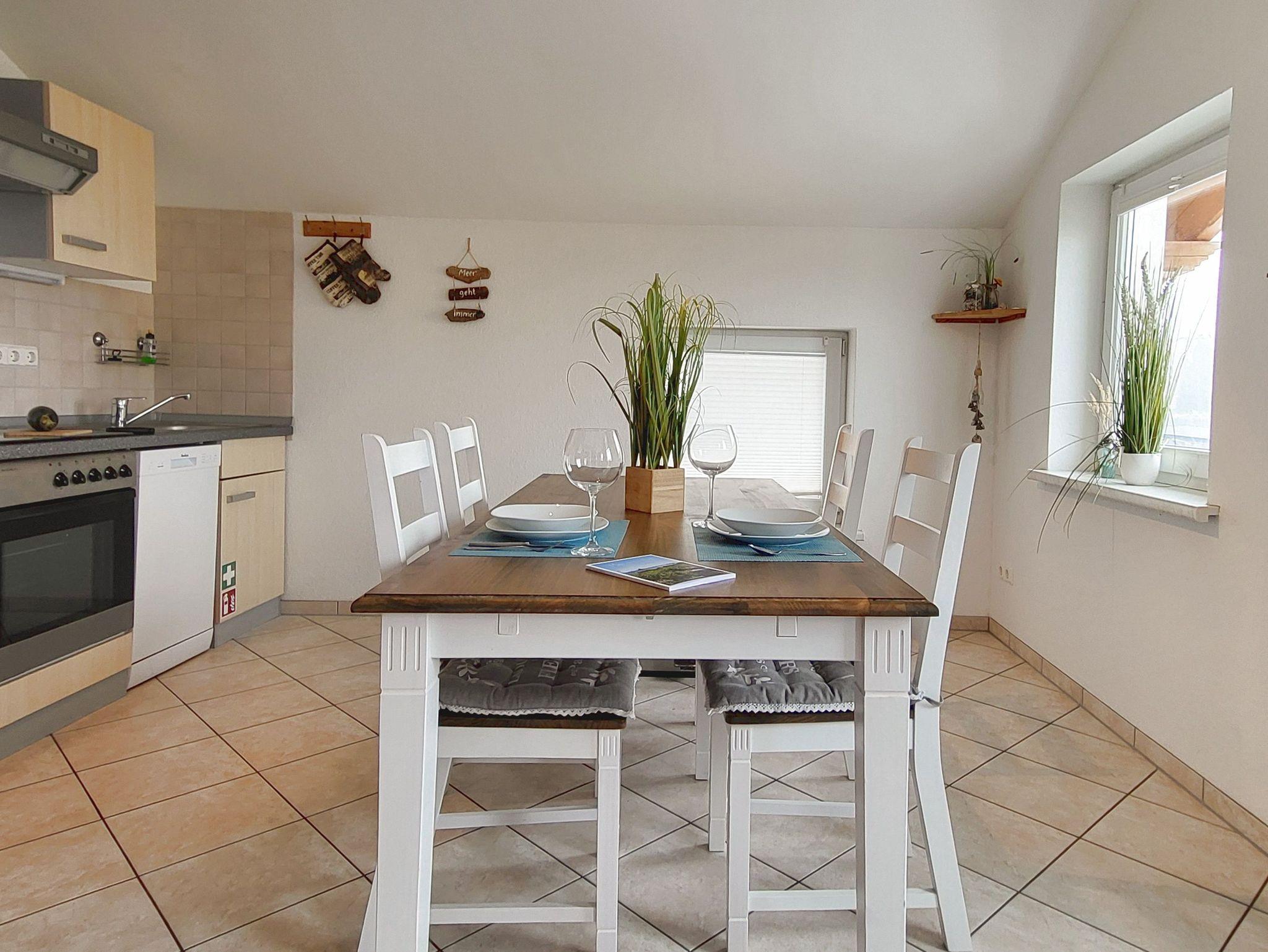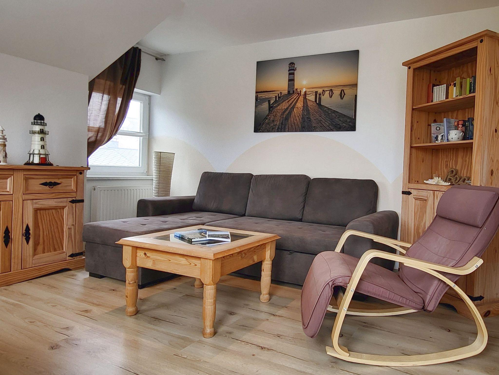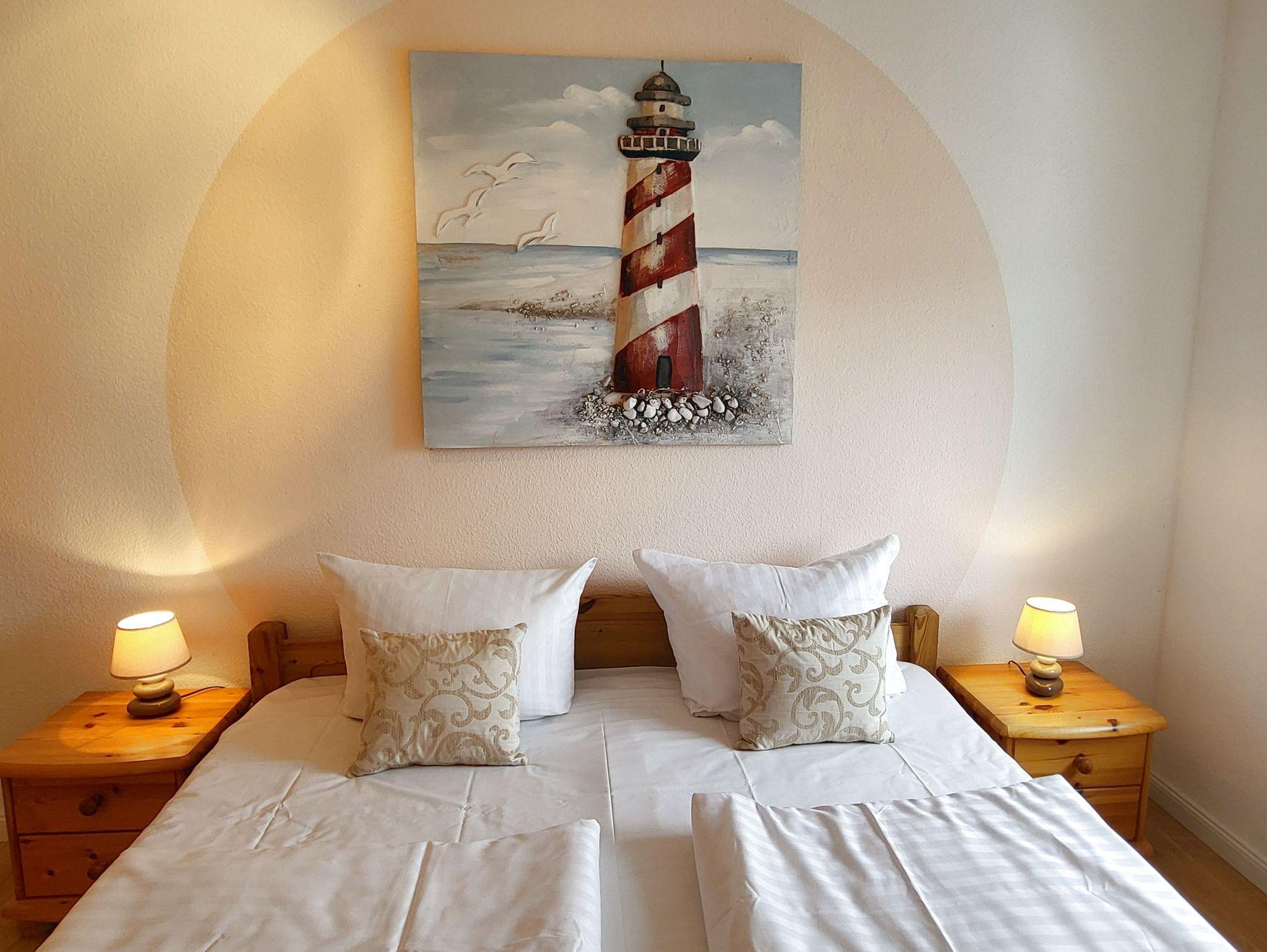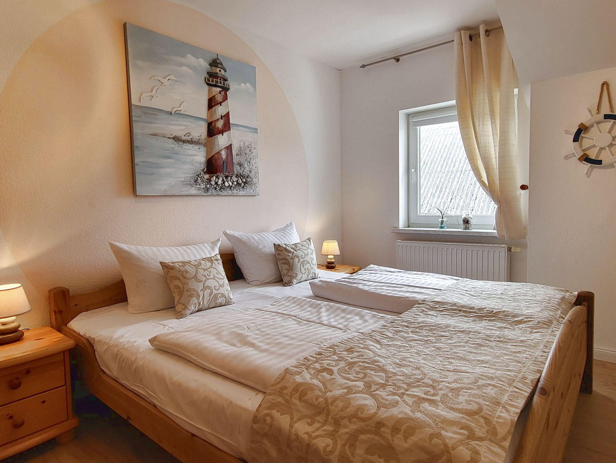 Das freundlich eingerichtete Appartement Leuchtturm im 1. Obergeschoss des Hauses bietet auf insgesamt 70 m² Raum für einen erholsamen Urlaub in ruhiger Lage für bis zu vier Personen.