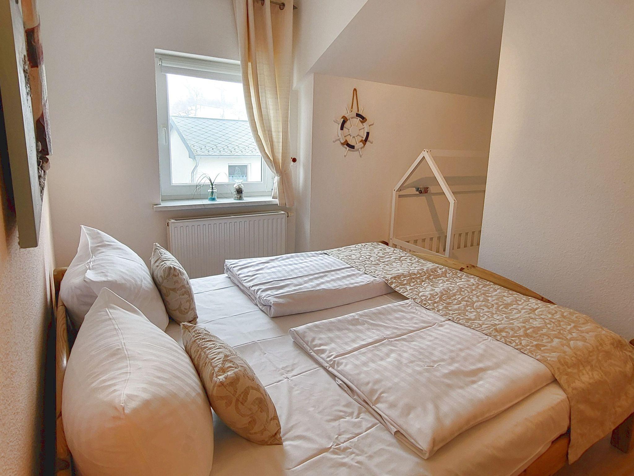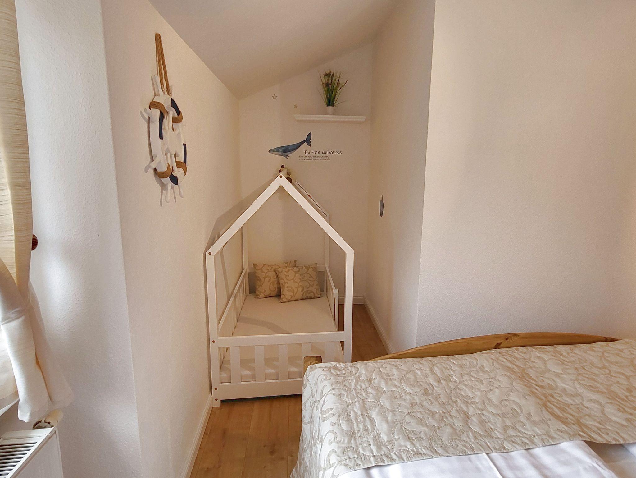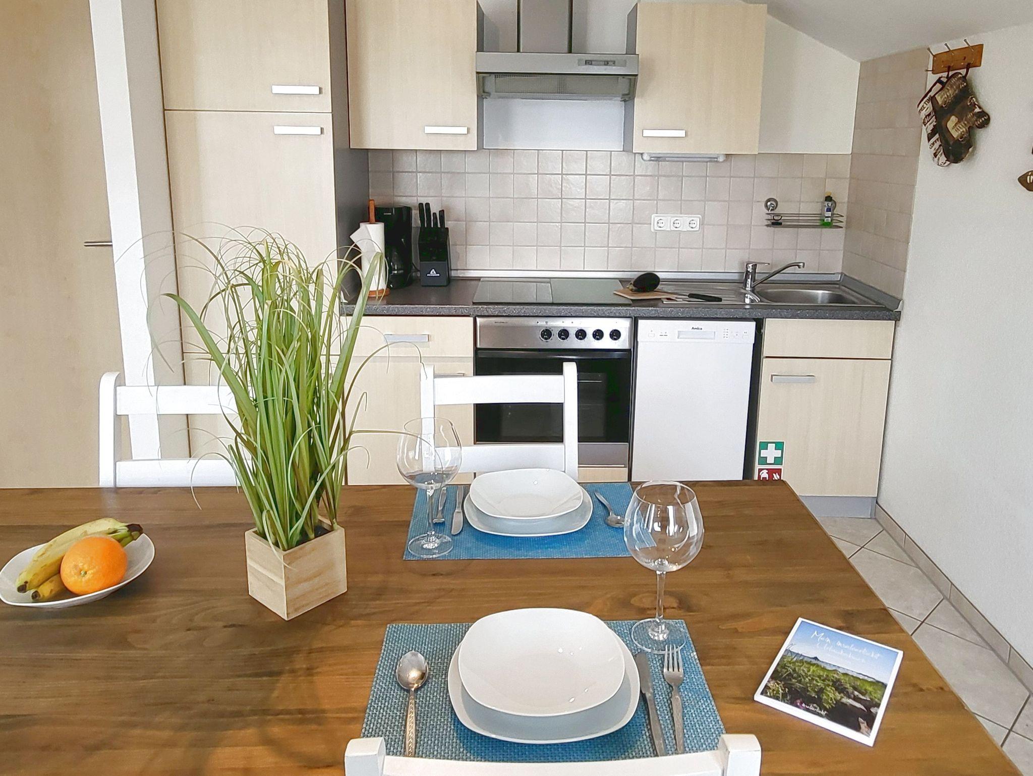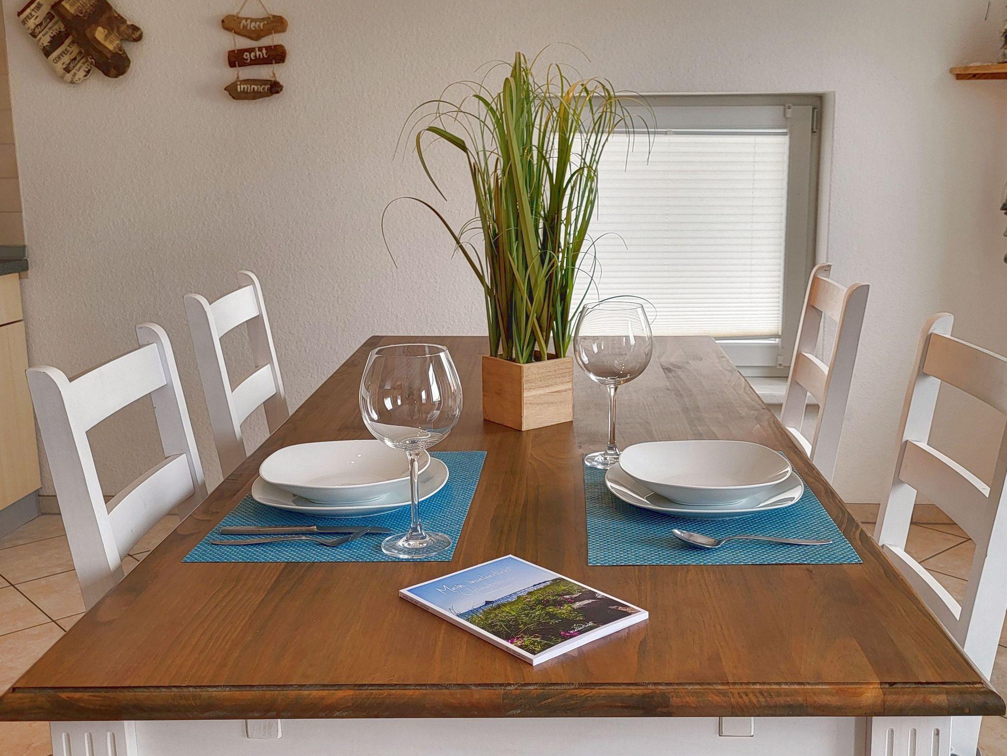 Das freundlich eingerichtete Appartement Leuchtturm im 1. Obergeschoss des Hauses bietet auf insgesamt 70 m² Raum für einen erholsamen Urlaub in ruhiger Lage für bis zu vier Personen.