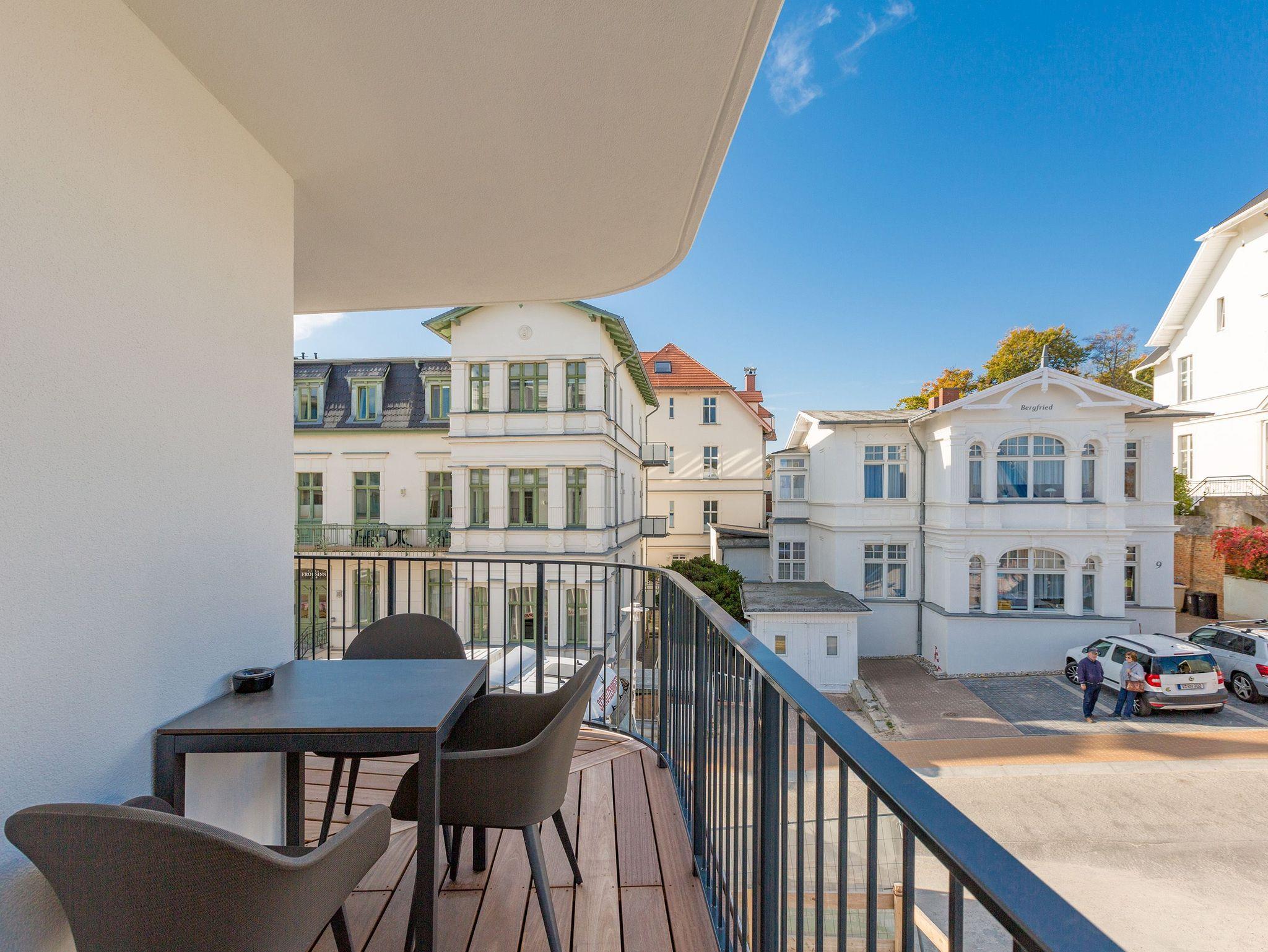 Elegantes Beachhouse Appartement 15 in Bansin mit Balkon, Sauna und Meerblick für entspannte Ostseeferien.