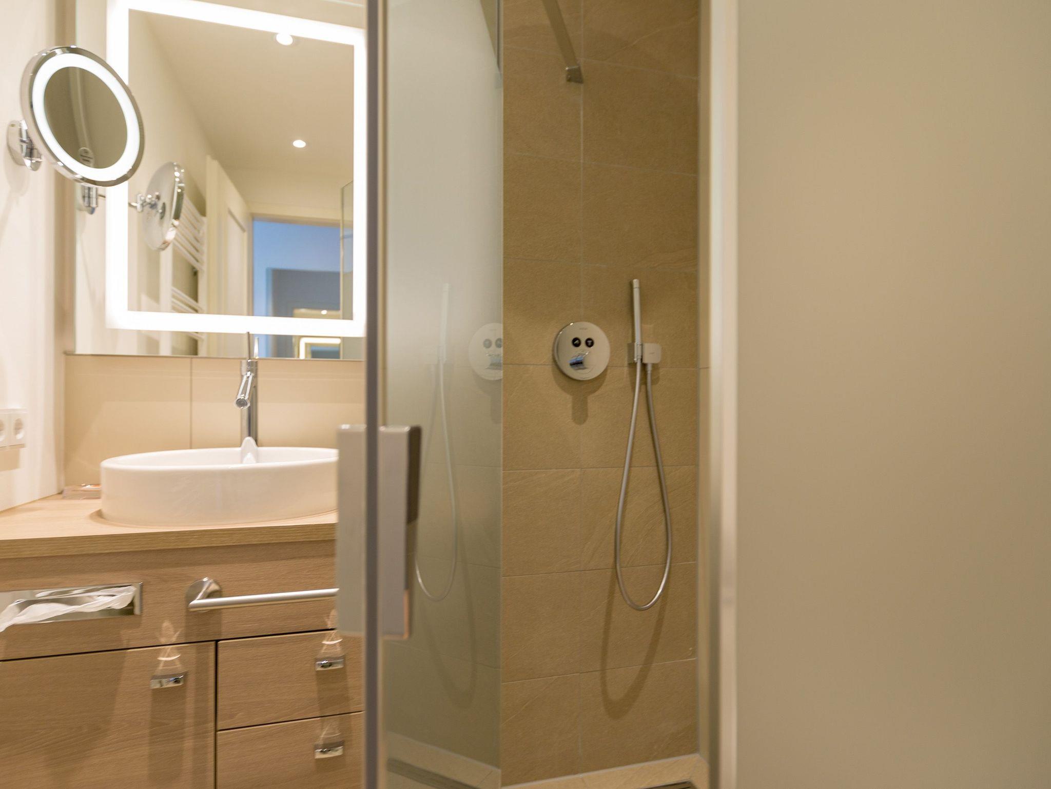 Ein Urlaubsdomizil zum wahrhaften Ausspannen und Erholen ist das Appartement Nummer 15 im 2. Stock des Bansiner Beachhouses. Viel Eleganz und stylische Möbel empfangen die bis zu vier Ostseeliebhaber und ein Kleinkind (bis drei Jahre im Kinderreisebett) in den drei Zimmern auf 69 Quadratmetern. Auf dem umlaufenden Balkon (9 Quadratmeter groß) können Sie Ostseeluft schnuppern und bei einem kühlen Getränk das Farbenspiel des Sonnenuntergangs über den Dächern der alten Bädervillen genießen. Aus allen drei Zimmern haben Sie Zugang auf den Balkon. So können Sie schon morgens, frisch gestärkt, nach einer erholsamen Nacht in einem der beiden Boxspringdoppelbetten (1,80 m x 2,00 m) raus an die frische Luft treten. In den beiden Schlafzimmern finden Sie in den großen Schränken auch reichlich Platz zum Ablegen Ihrer Urlaubsgarderobe. Ebenfalls zur Ausstattung gehört in jedem Zimmer ein Flat-TV. Einen besonders großen finden Sie im wunderschönen und eleganten Wohn-Esszimmer. Neben einer Hi-Fi-Anlage mit Bluetooth ist er zuständig für spannendes und entspannendes Home-Entertainment. Das WLAN für Ihre Lieblingsmusik ist kostenfrei. Vom bequemen Sofa aus haben Sie aber auch freien Blick auf den Gas-Kamin, mit dem Sie es sich auf Knopfdruck gemütlich machen können. Die Designer-Liebe steckt bekanntlich im Detail. Und so werden Sie in diesem Appartement alles aufs Feinste und bis ins Kleinste aufeinander abgestimmt finden. Vom Accessoires über die Lampen oder die Wandgestaltung bis hin zu den Design-Möbeln ist das Konzept auf exklusiven Wohnkomfort zugeschnitten. Zum Wohn-Esszimmer hin öffnet sich die voll ausgestattete Küche. Markengeräte und Geschirr erleichtern das Kochen und Backen und machen das Essen am großen und schönen Esstisch zum vergnüglich kulinarischen Erlebnis. Doch zu einem entspannenden Urlaub gehört auch die körperliche Wellness. In der Finnischen Sauna im Masterbad können Sie Stressgedanken schnell vergessen. An kühlen und tristen Tagen ist sie eine echte Wohlfühl-Oase. Das Urlaubsdomizil ist gleich mit zwei Bädern ausgestattet. In beiden finden Sie eine ebenerdige Regendusche, einen Waschtisch und ein WC. In einem kleinen Hauswirtschaftsraum können Sie Ihre Wäsche im Wasch-Trockner reinigen. Für den Rund-um-soglos-Urlaub haben wir für Sie die Betten schon bezogen und Handtücher bereit gelegt. In der modernen Tiefgarage ist für Sie der Stellplatz Nr. 15 im Doppelparker unten (max. Höhe 1,85 m, max. Länge 5,10 m, max. Breite 2,50 m, max. Last 2.600 kg) reserviert.