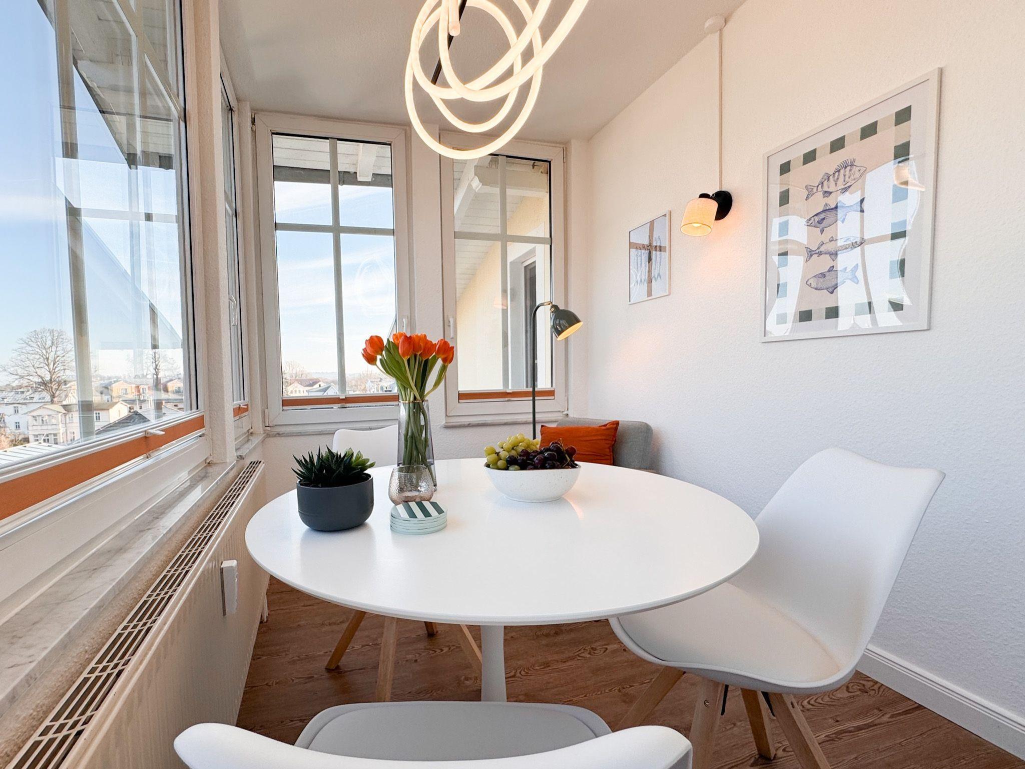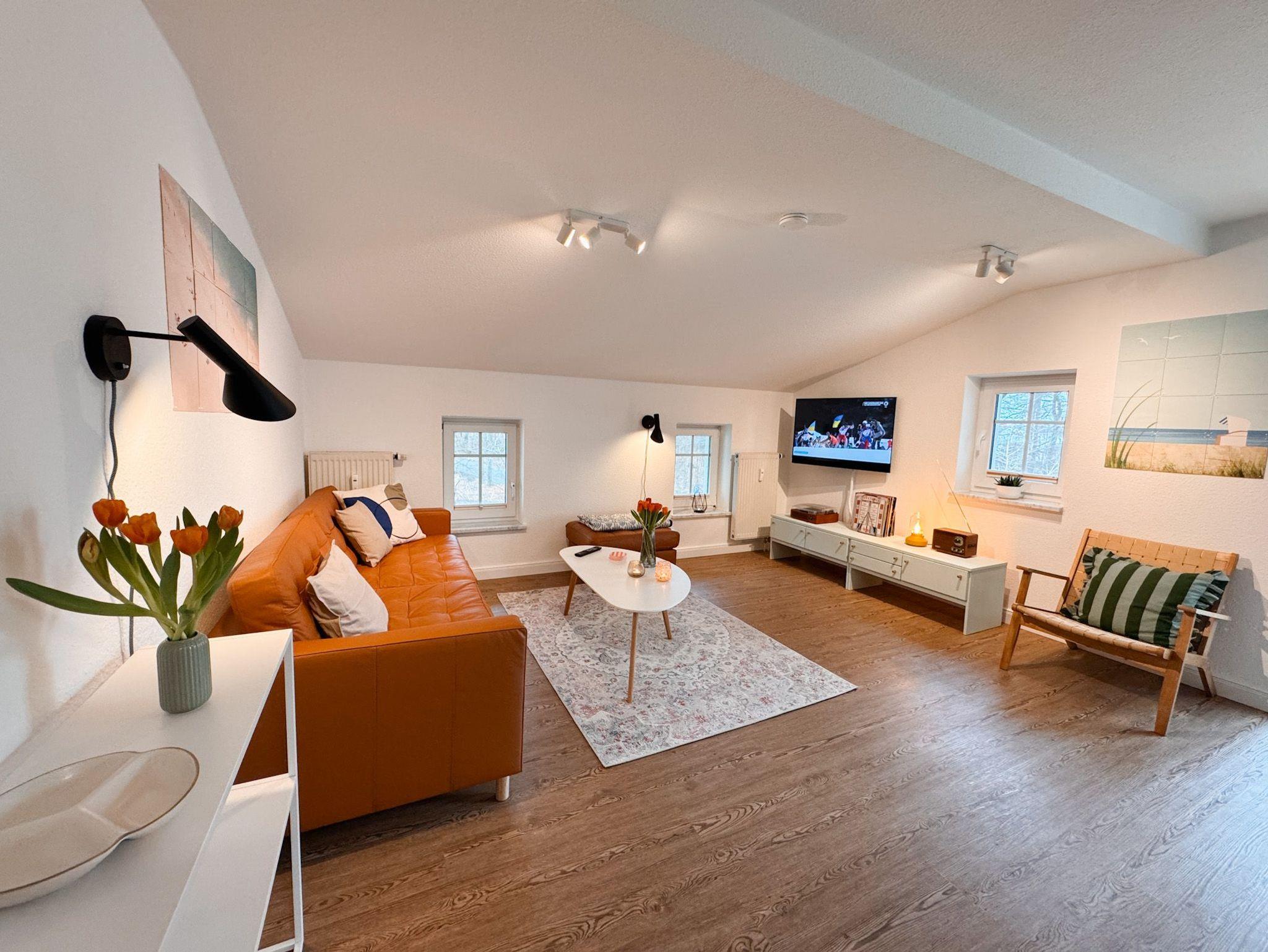 Sie befindet sich im Dachgeschoß der Villa Waldstraße und bietet Ihnen ein modernes Wohnzimmer, eine komplett ausgestattete moderne Küchenzeile mit Cerankochfeld, Mikrowelle, Dunstabzughaube, Kühlschrank mit Gefrierfach, Kaffeemaschine, Wasserkocher, Toaster, Backofen, Geschirrspüler. Im Erkerzimmer mit Blick über Bansin lässt es sich wunderbar Frühstücken. Das Schlafzimmer ist mit einem komfortablen Boxspringbett (180cmx200cm) und Flachbildfernseher ausgestattet. Das Bad ist mit Badewanne, Dusche und WC ausgestattet. Als Aufbettungsmöglichkeit steht im Wohnzimmer für eine 3. und 4. Person eine bequeme Schlafcouch (140cmx200cm) zur Verfügung.
