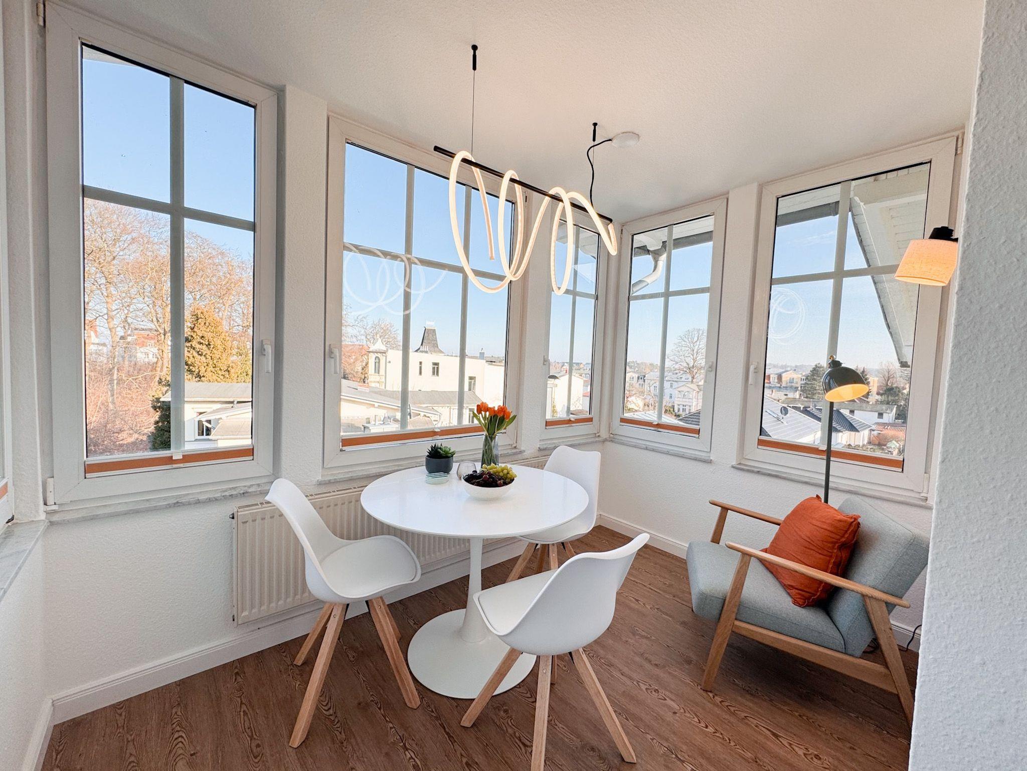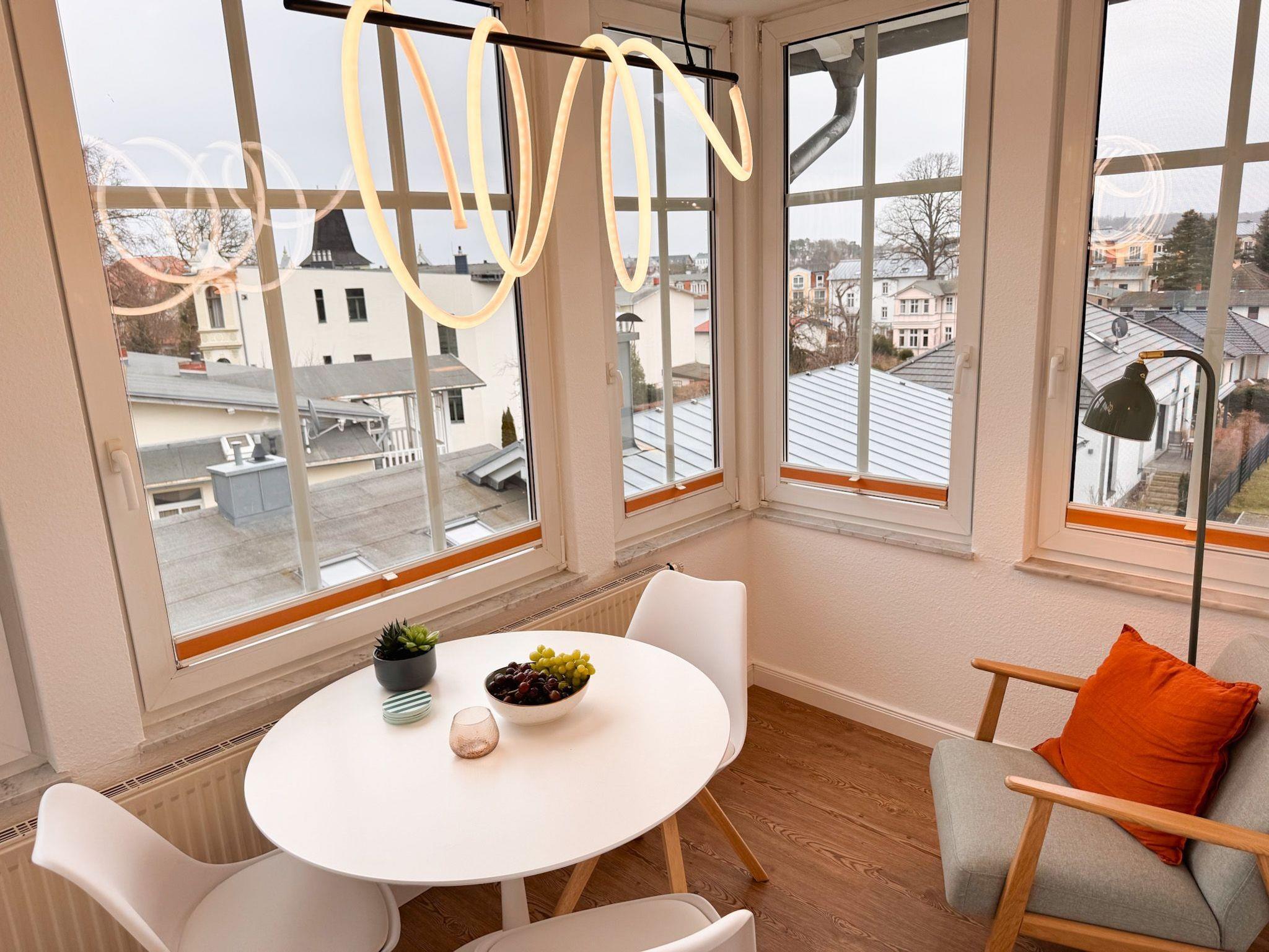 Moderne Ferienwohnung in kernsanierter Jugendstilvilla, 100 m vom Strand in Bansin, mit Tiefgarage und Fahrradkeller.