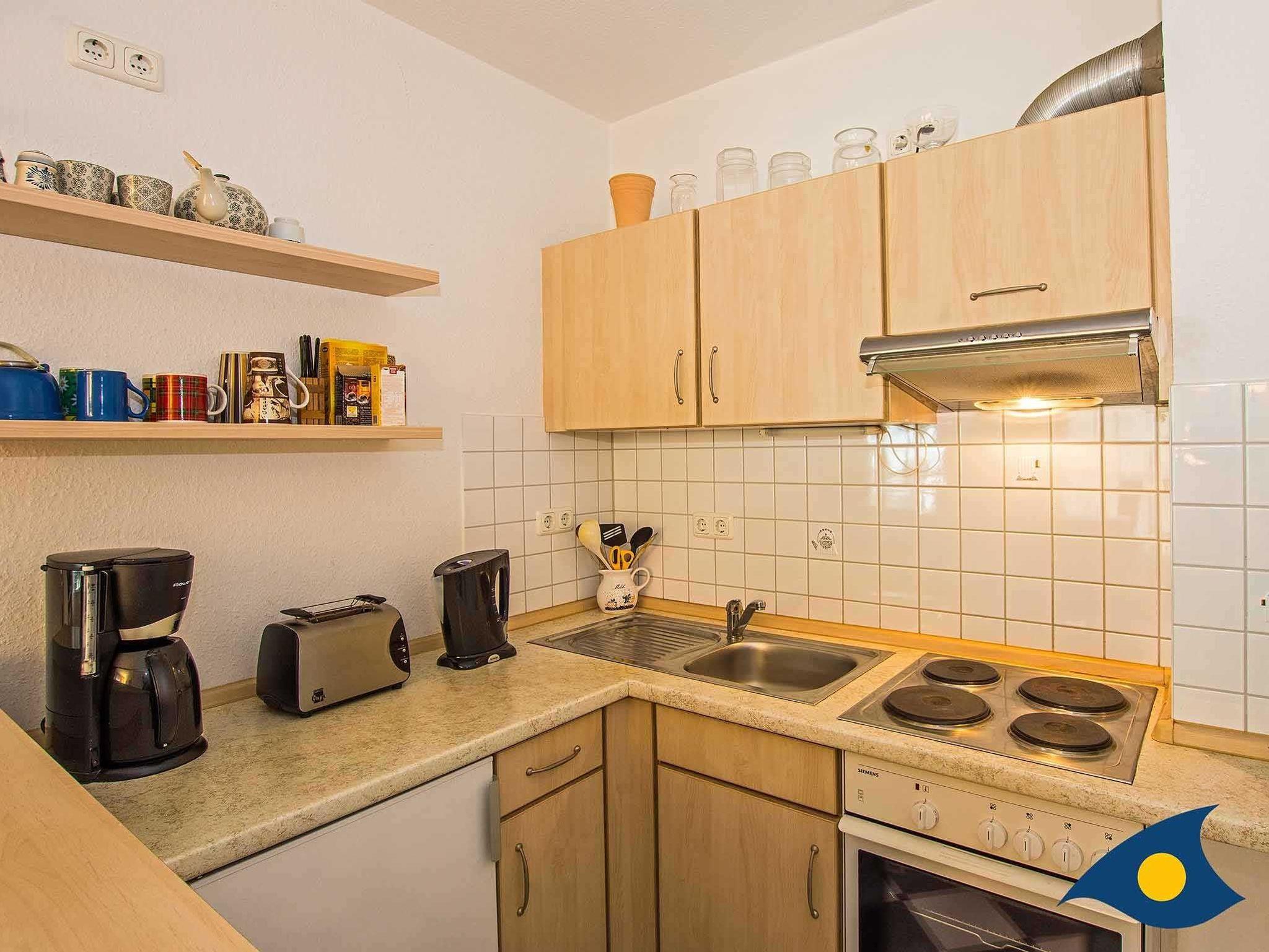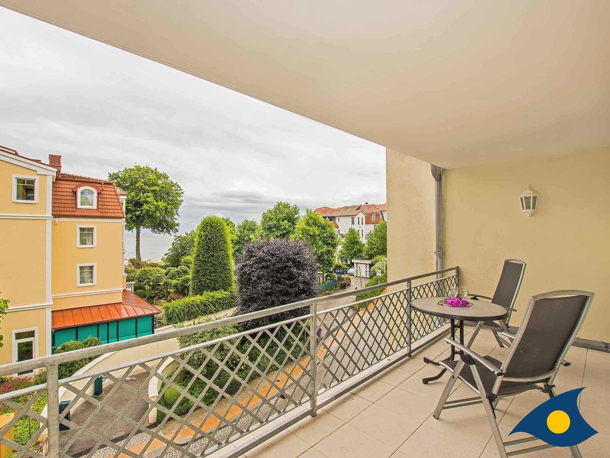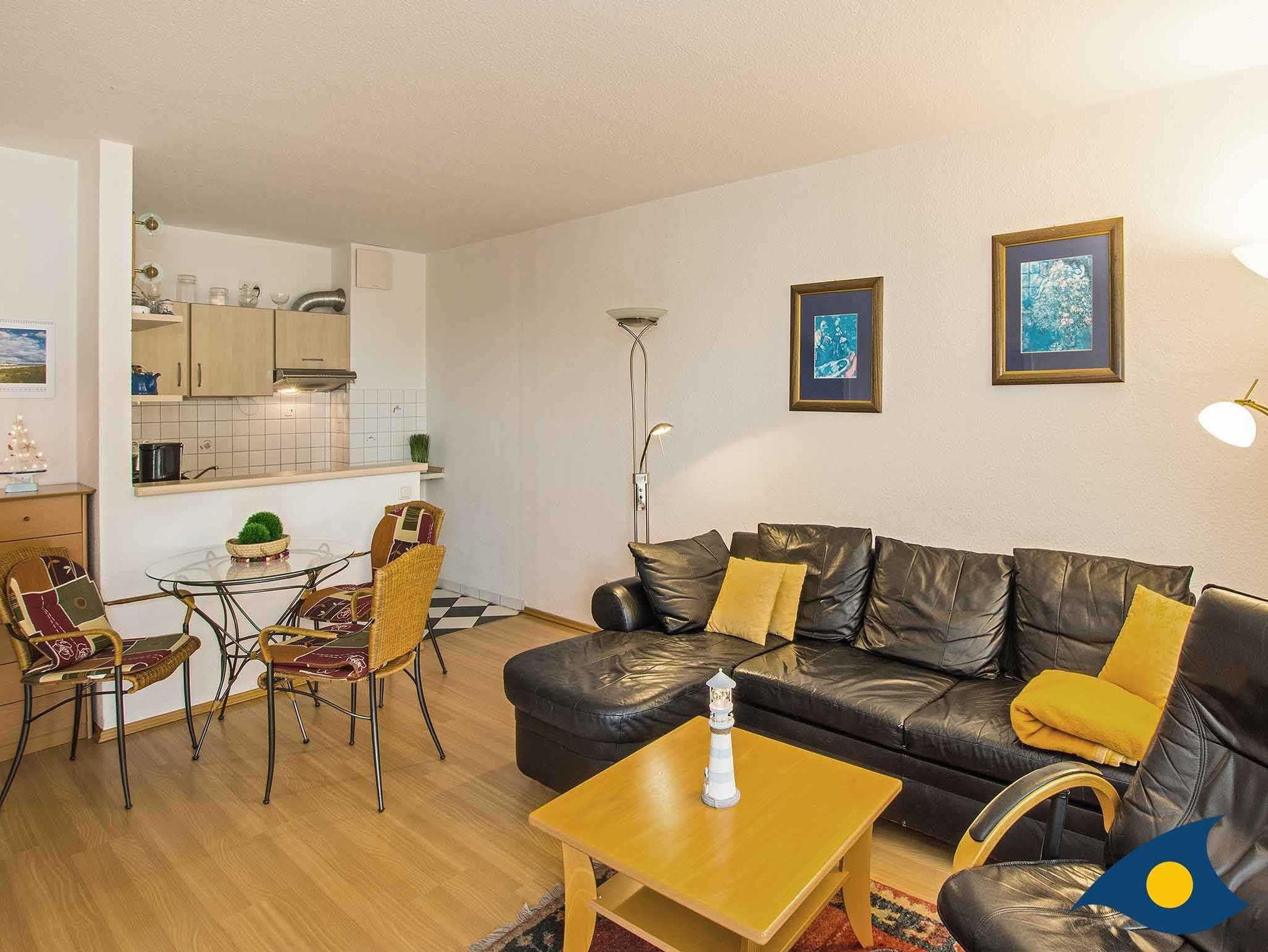 Hier erwartet Sie ein liebevoll eingerichtetes Zweiraumappartement mit reizvollem Ausblick auf Meer, Strand und Seebrücke. Der 13 qm große Balkon bietet viel Platz zum Relaxen. Zur modernen Ausstattung dieser Wohnung gehört neben Laminatboden, Ledercouch, Küchenzeile und Tresen auch ein originell gestaltetes Badezimmer.