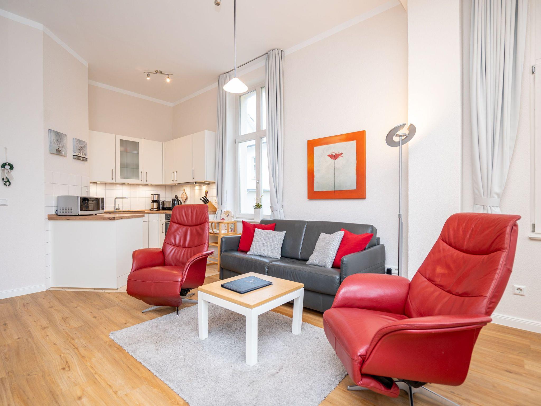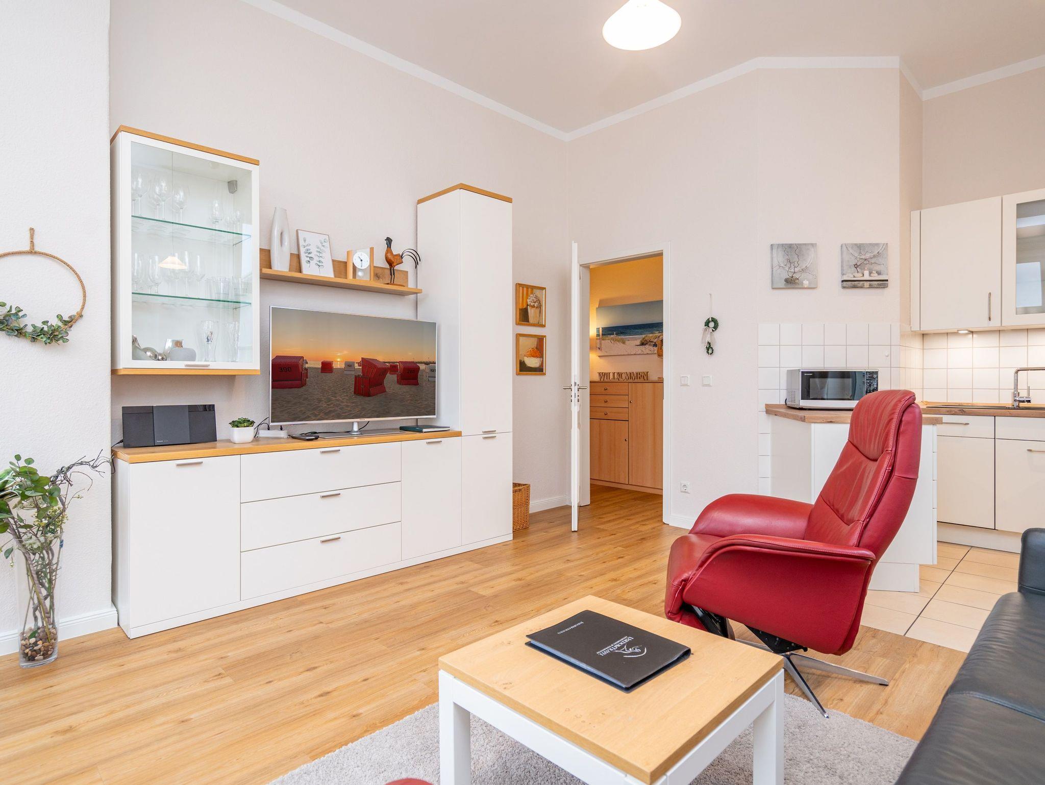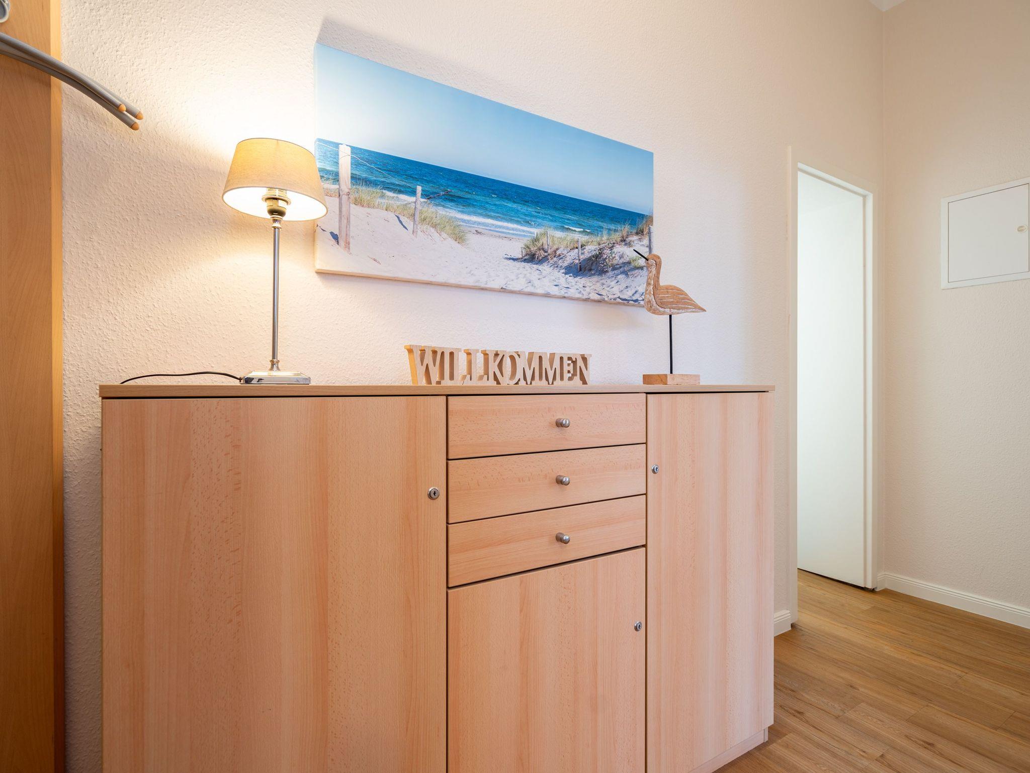 Diese helle lichtdurchflutete Ferienwohnung ( für max. 2 Personen [&] 2 Kinder bis 15 Jahre) überzeugt von der ersten Minute an. Liebevoll dekoriert und stilvoll möbliert verbringen Sie hier erholsame Urlaubstage. Im Wohnbereich finden Sie eine komplett ausgestattete Küchenzeile mit allen Annehmlichkeiten. Das Schlafzimmer mit Doppelbett bietet 2 Personen Platz für eine erholsame Nacht und auf Ihrem Balkon genießen Sie die Morgensonne oder die gesunde Ostseeluft. Für die 3. und 4. Person besteht die Möglichkeit der Aufbettung auf der Schlafcouch im Wohnzimmer. Für Ihren Komfort steht die Erstausstattung Wäsche für Sie bereit. [nbsp]