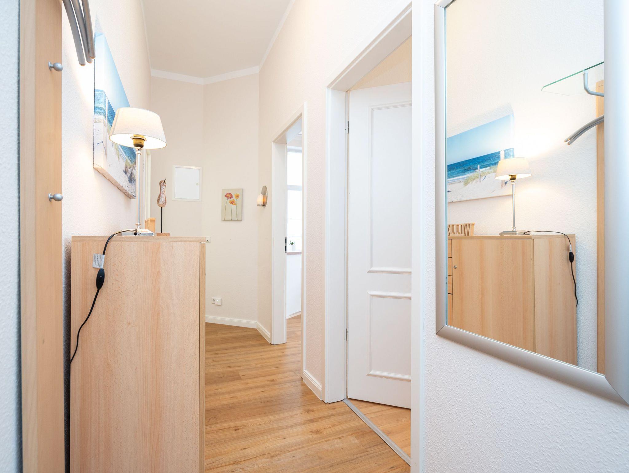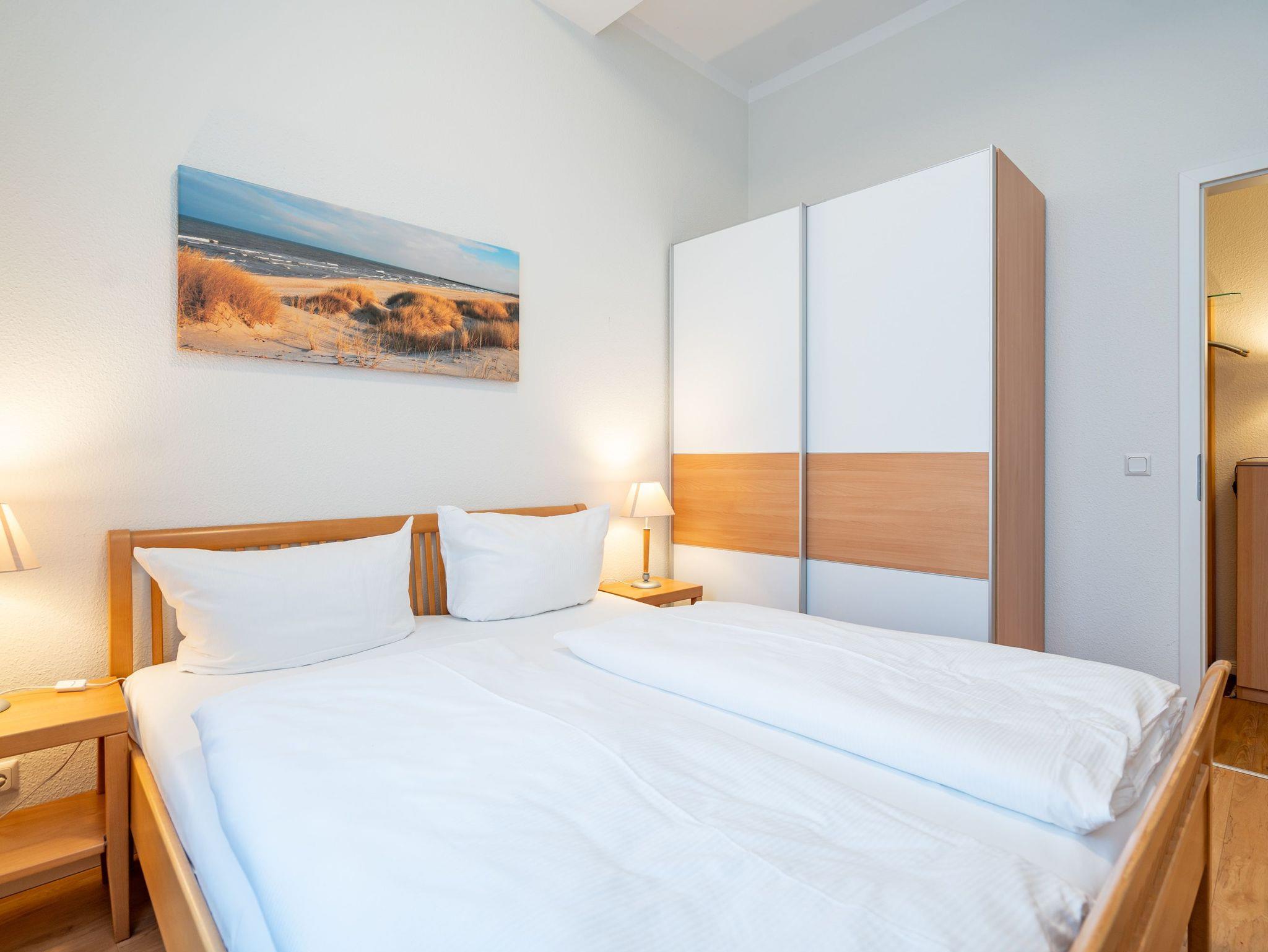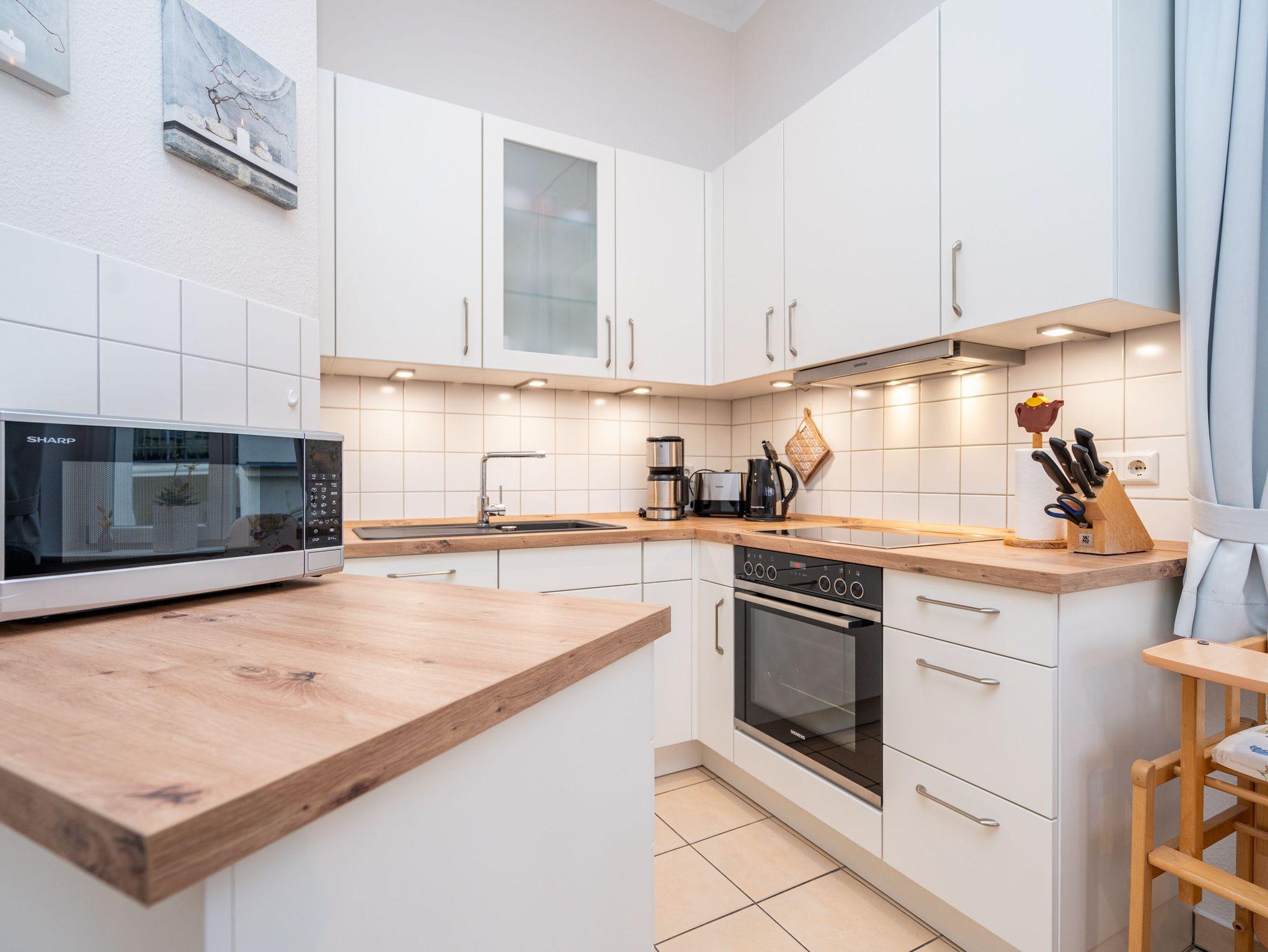 Diese helle lichtdurchflutete Ferienwohnung ( für max. 2 Personen [&] 2 Kinder bis 15 Jahre) überzeugt von der ersten Minute an. Liebevoll dekoriert und stilvoll möbliert verbringen Sie hier erholsame Urlaubstage. Im Wohnbereich finden Sie eine komplett ausgestattete Küchenzeile mit allen Annehmlichkeiten. Das Schlafzimmer mit Doppelbett bietet 2 Personen Platz für eine erholsame Nacht und auf Ihrem Balkon genießen Sie die Morgensonne oder die gesunde Ostseeluft. Für die 3. und 4. Person besteht die Möglichkeit der Aufbettung auf der Schlafcouch im Wohnzimmer. Für Ihren Komfort steht die Erstausstattung Wäsche für Sie bereit. [nbsp]