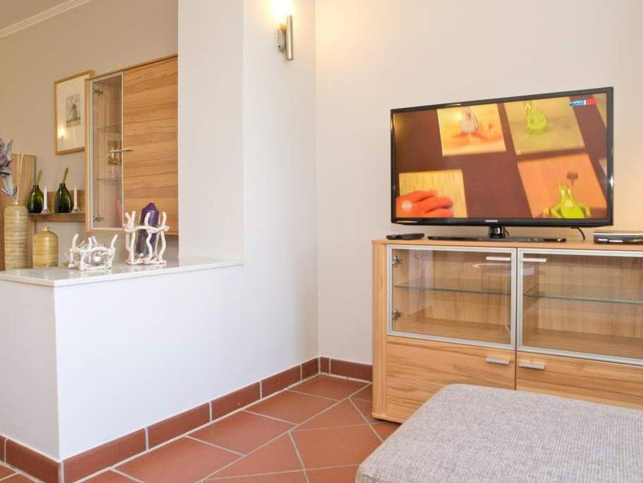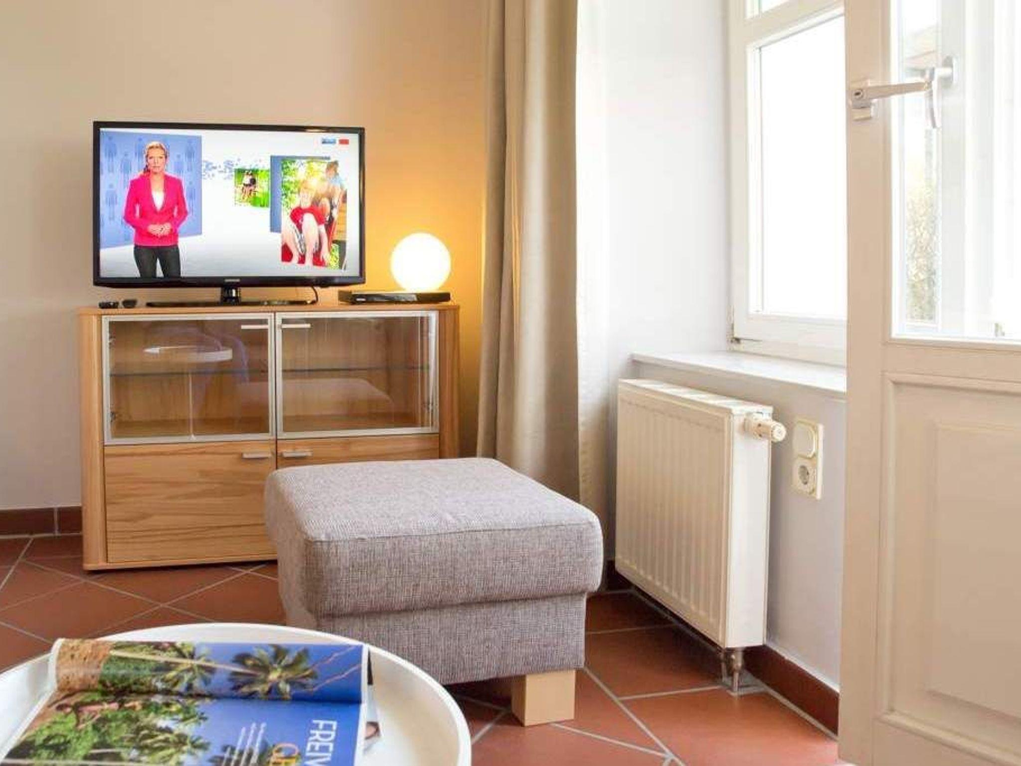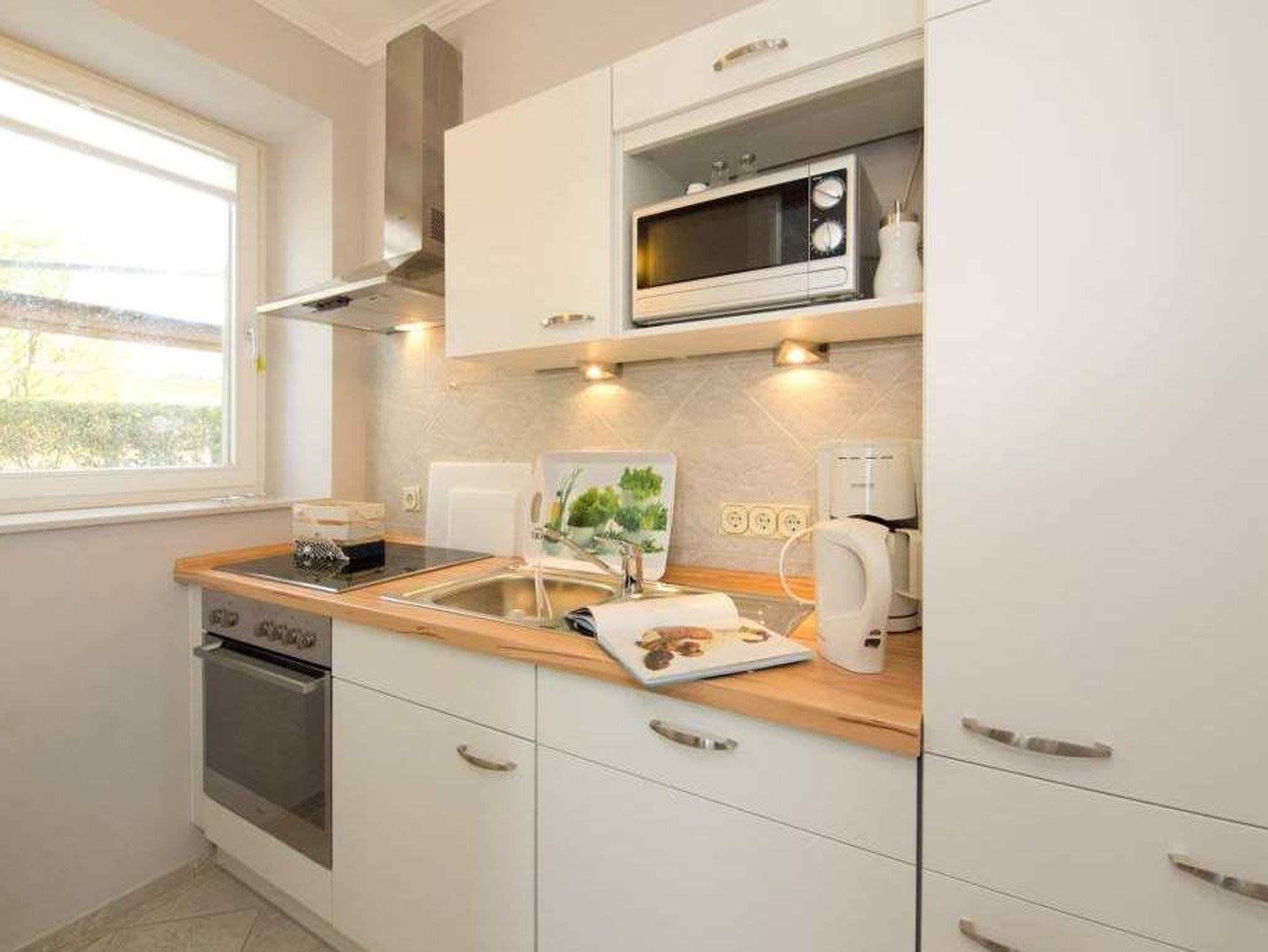 Eine Terrasse mit Strandkorb (ab Pfingsten bis September, je nach Witterung) und Blick auf die Ostsee - die 3-Raum-Ferienwohnung 3 in der Villa befindet sich im Erdgeschoss. Auf großzügigen 70 qm finden Sie hier ein liebevoll arrangiertes Urlaubsdomizil für bis zu 4 Personen. Helle Farben und Stoffe und eine moderne Einrichtung vermitteln ein angenehmes Wohngefühl. Der Wohnbereich ist mit einem Essplatz ausgestattet und geht in eine offene Veranda mit Sitzgruppe und Flat-TV über. Die separate Küche ist komplett ausgestattet. Ergänzt wird die Wohnung durch ein Schlafzimmer mit bequemem Boxspringdoppelbett (1,80 m x 2,00 m). Von hier aus hat man Zugang (mit Sichtschutzvorhang abzutrennen) zum zweiten Schlafbereich mit 2 Einzelbetten (2x 0,80m x 1,80m - ideal für Kinder). Ein großes Bad mit zwei Waschbecken, WC und Dusche ergänzt die Wohnung. Für Ihren Komfort sind die Betten bei der Anreise bezogen und Handtücher liegen bereit. Ein Pkw-Stellplatz steht in einer Garage in der hinteren Bergstraße zur Verfügung.
