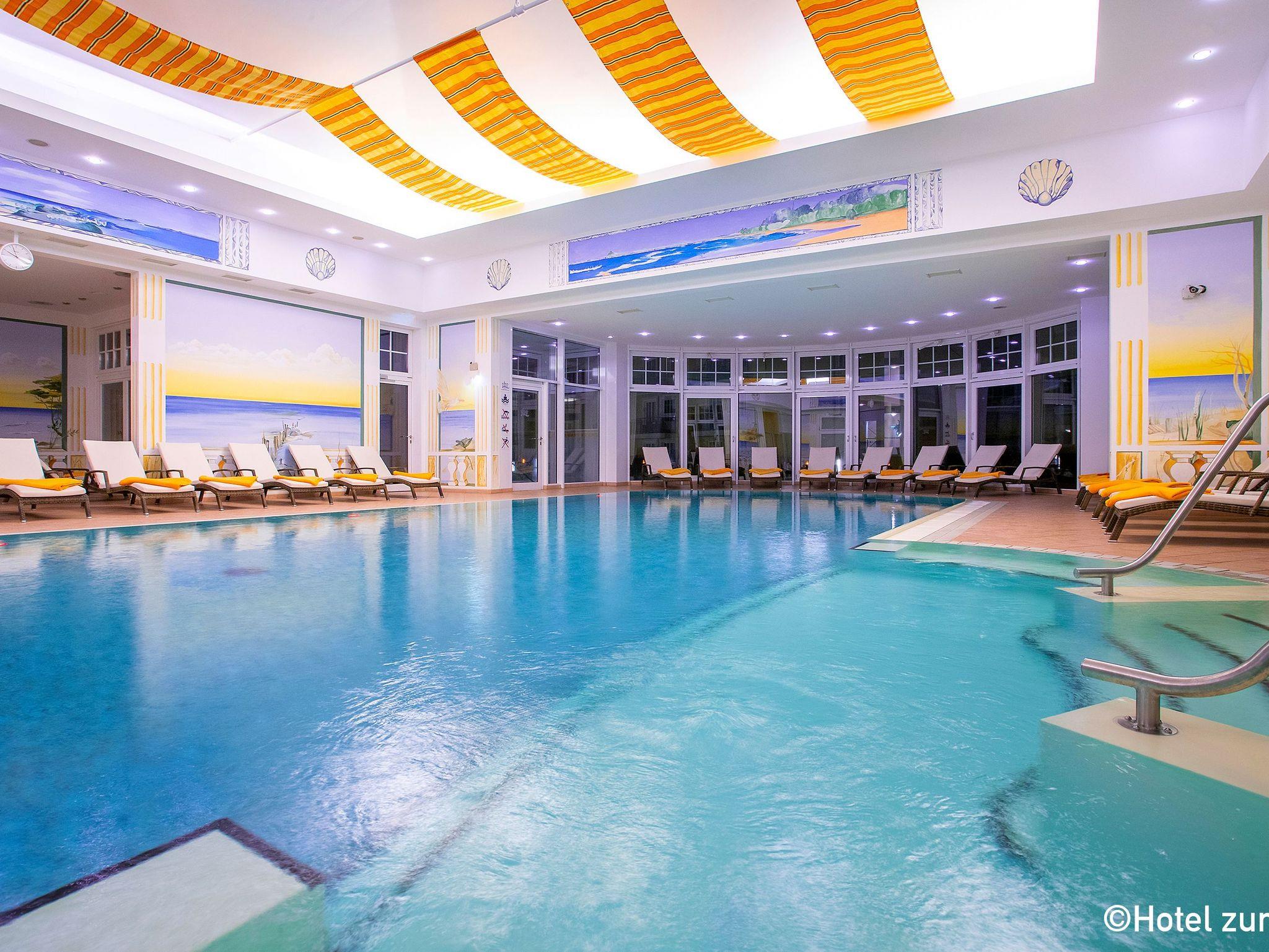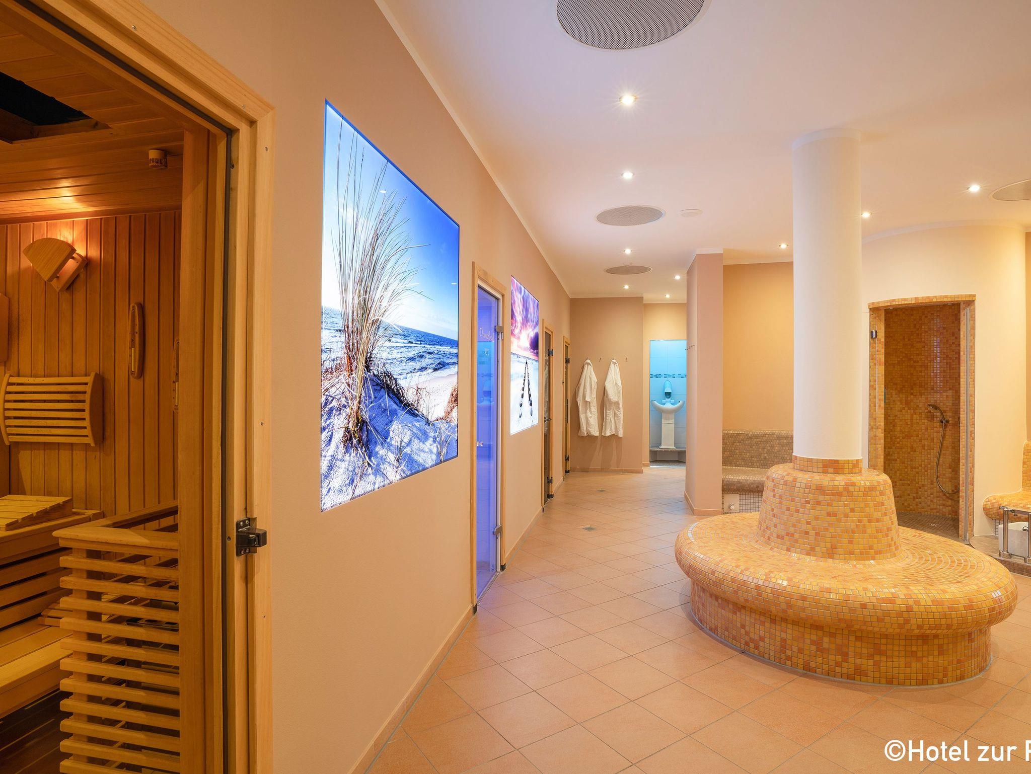 Indoor- (29°C) und Outdoor-Pool (ganzjährig beheizt 25°C), traditionelle finnische Sauna, Bio-Sauna, Dampfsauna, Eisbrunnen sowie Erlebnisduschen warten ganzjährig auf Sie ohne Extrakosten.