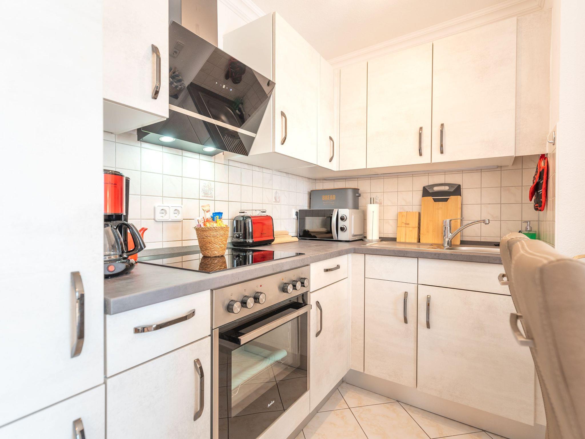 • Wohn- und Küchenbereich: Modern eingerichtet und mit allem ausgestattet, was Sie für einen selbstbestimmten Aufenthalt benötigen, inklusive Designgeschirr und -besteck von WMF, Kindergeschirr, Backutensilien und einem Mixer.