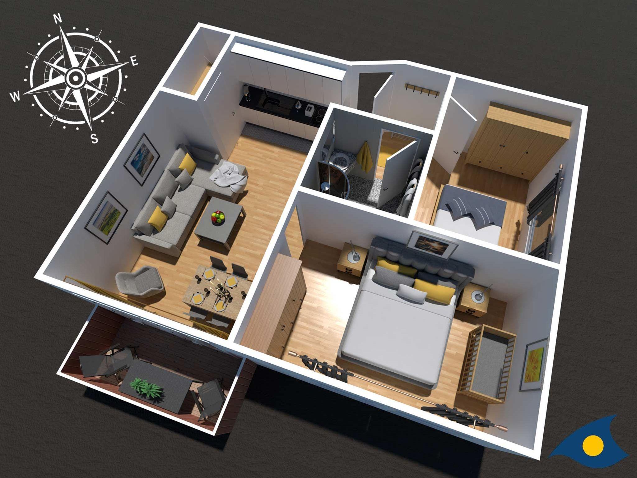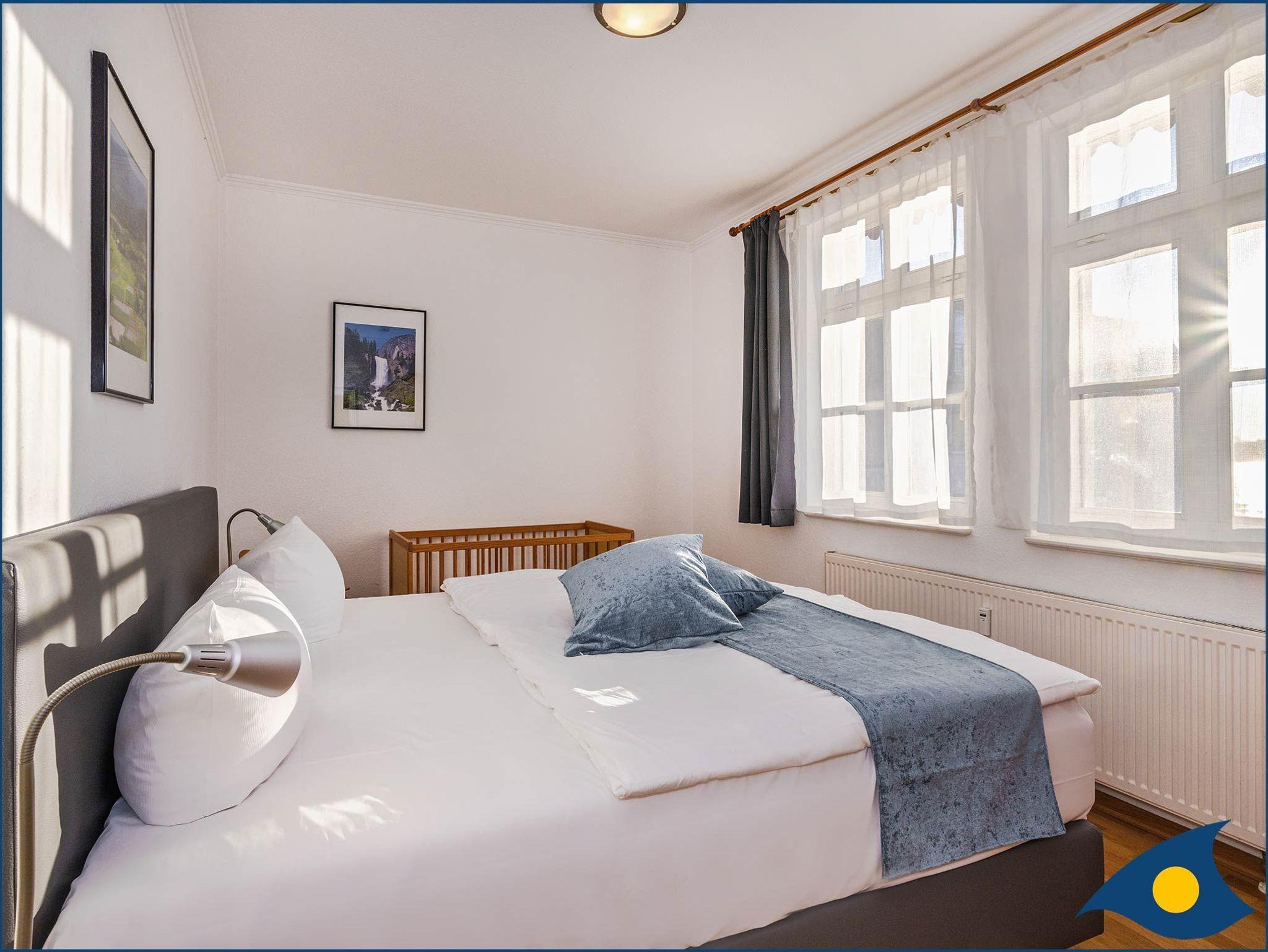 • 1 Schlafzimmer mit Doppelbett und Kinderbett