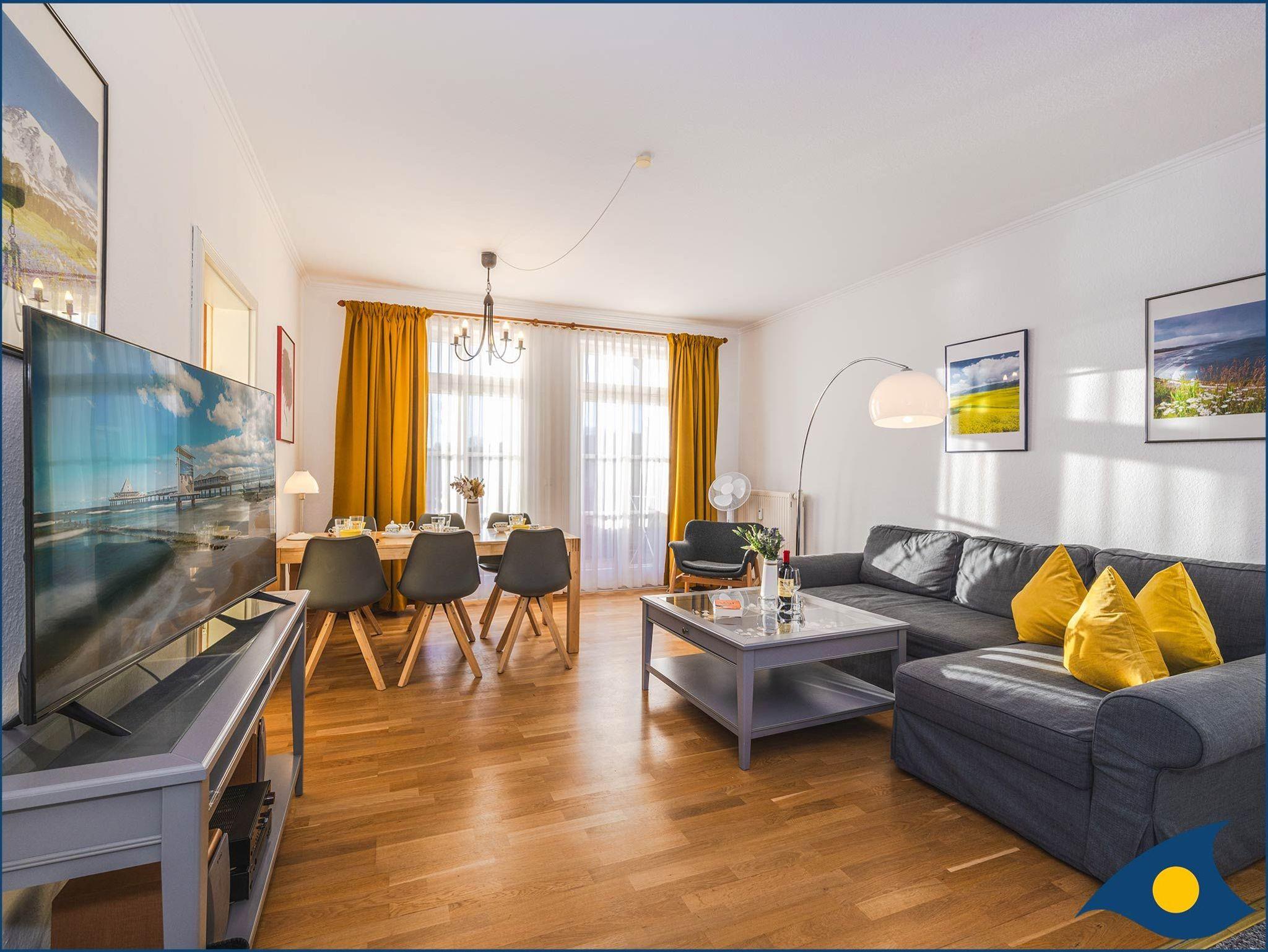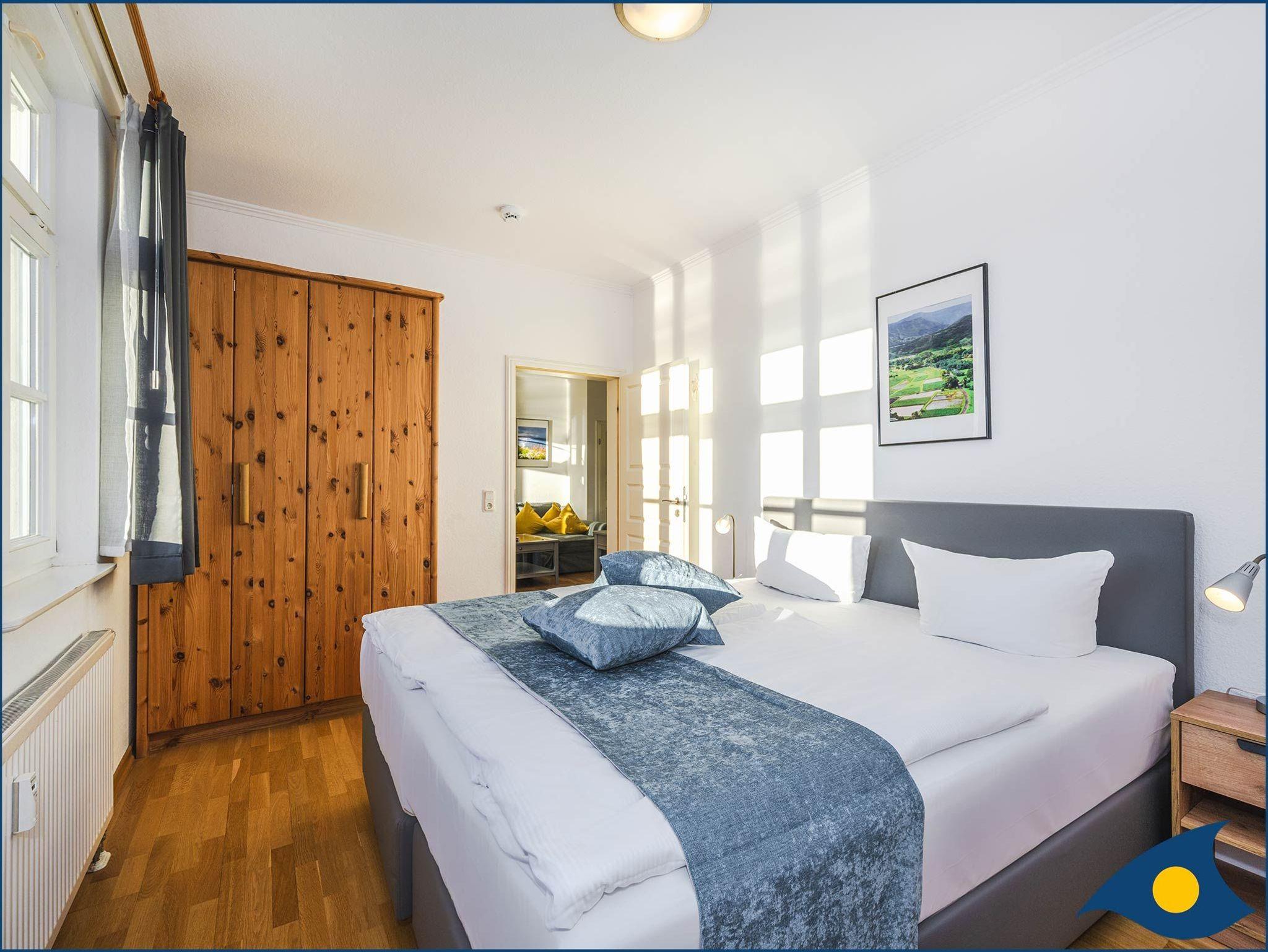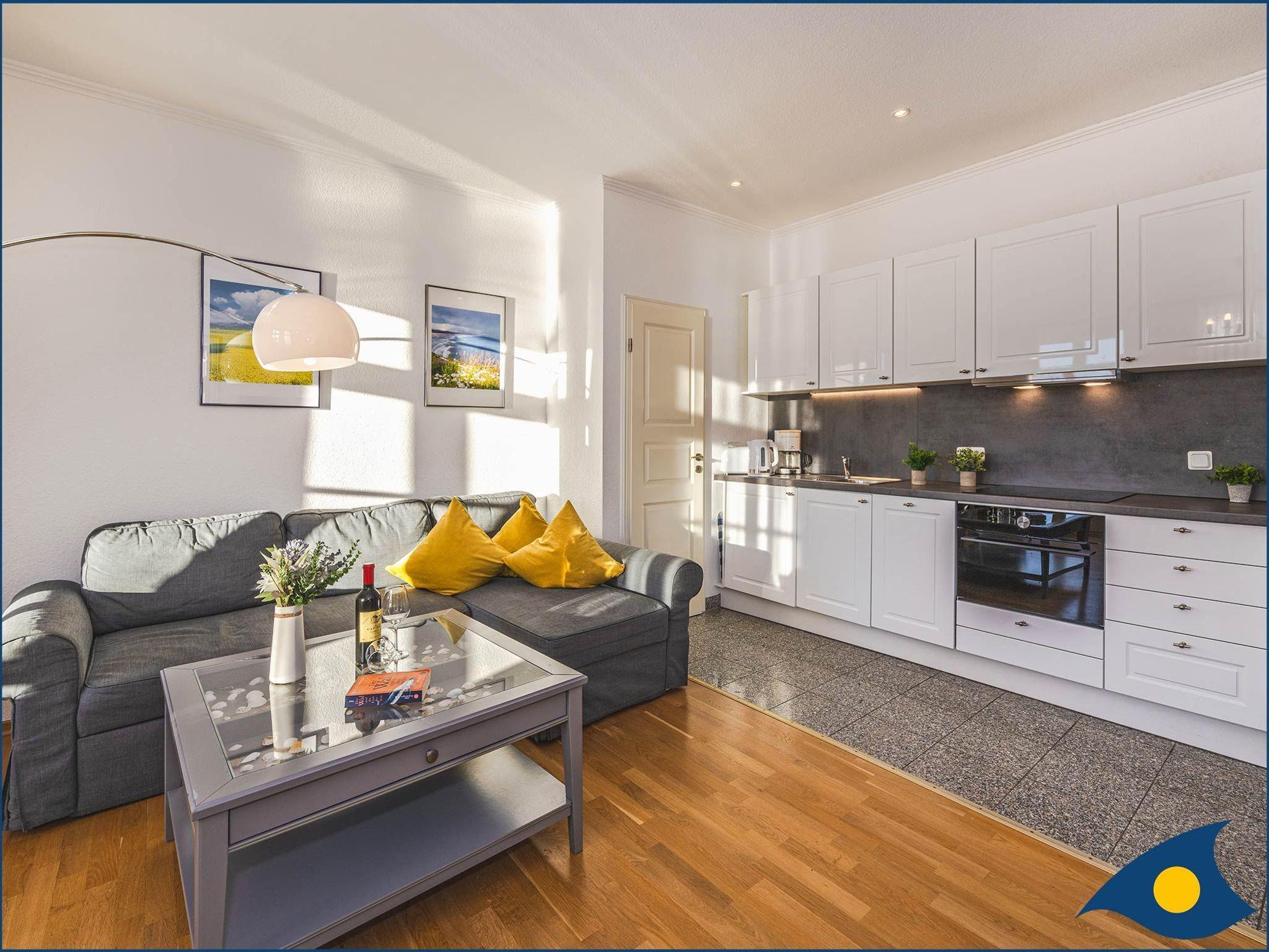 In der ersten Etage der 1896 erbauten Villa Vineta begrüßt Sie ein lichtdurchflutetes, freundliches 3-Raum-Appartement. Es erwarten Sie ein großzügiger Wohn- / Essraum mit modernen Küchenzeile, ein Schlafzimmer mit einem großzügigen Boxspringbett und Kinderbett und ein weiteres Schlafzimmer mit einem normalen Doppelbett. Im Wohnzimmer befindet sich eine Couch mit Schalffunktion für zwei Personen.