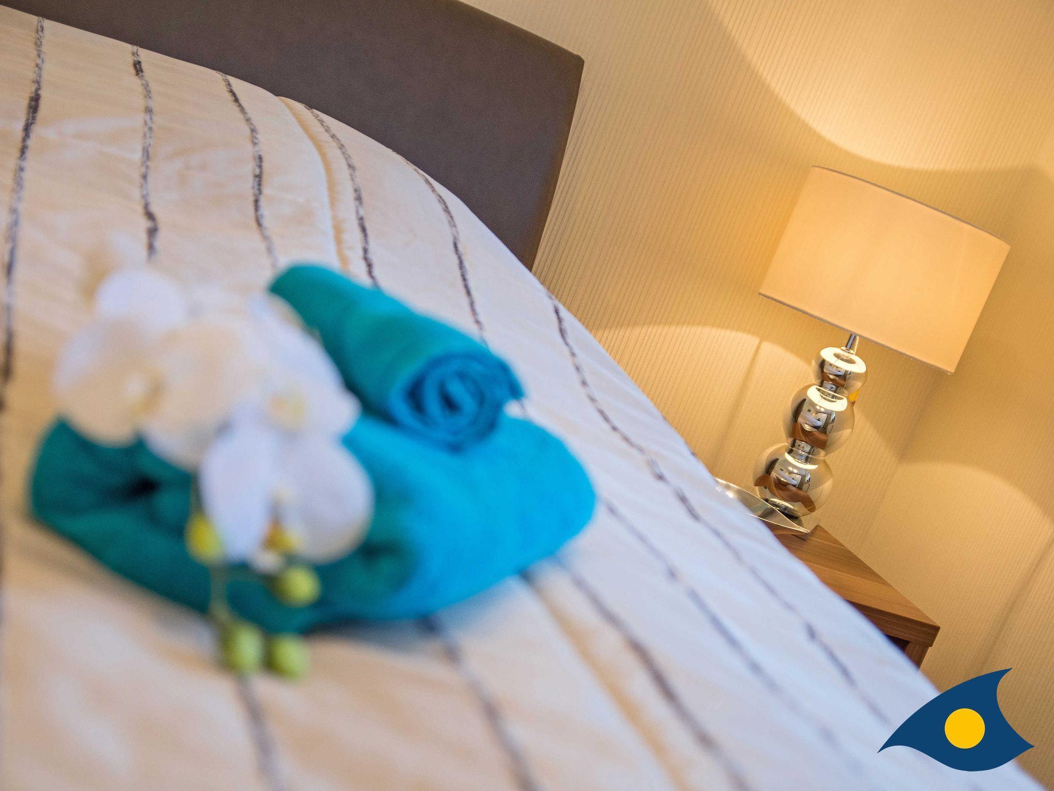 Das Schlafzimmer mit dem gemütlichen Doppelbett und das elegante Badezimmer mit WC und Dusche lassen Ihren Usedom Urlaub perfekt werden.