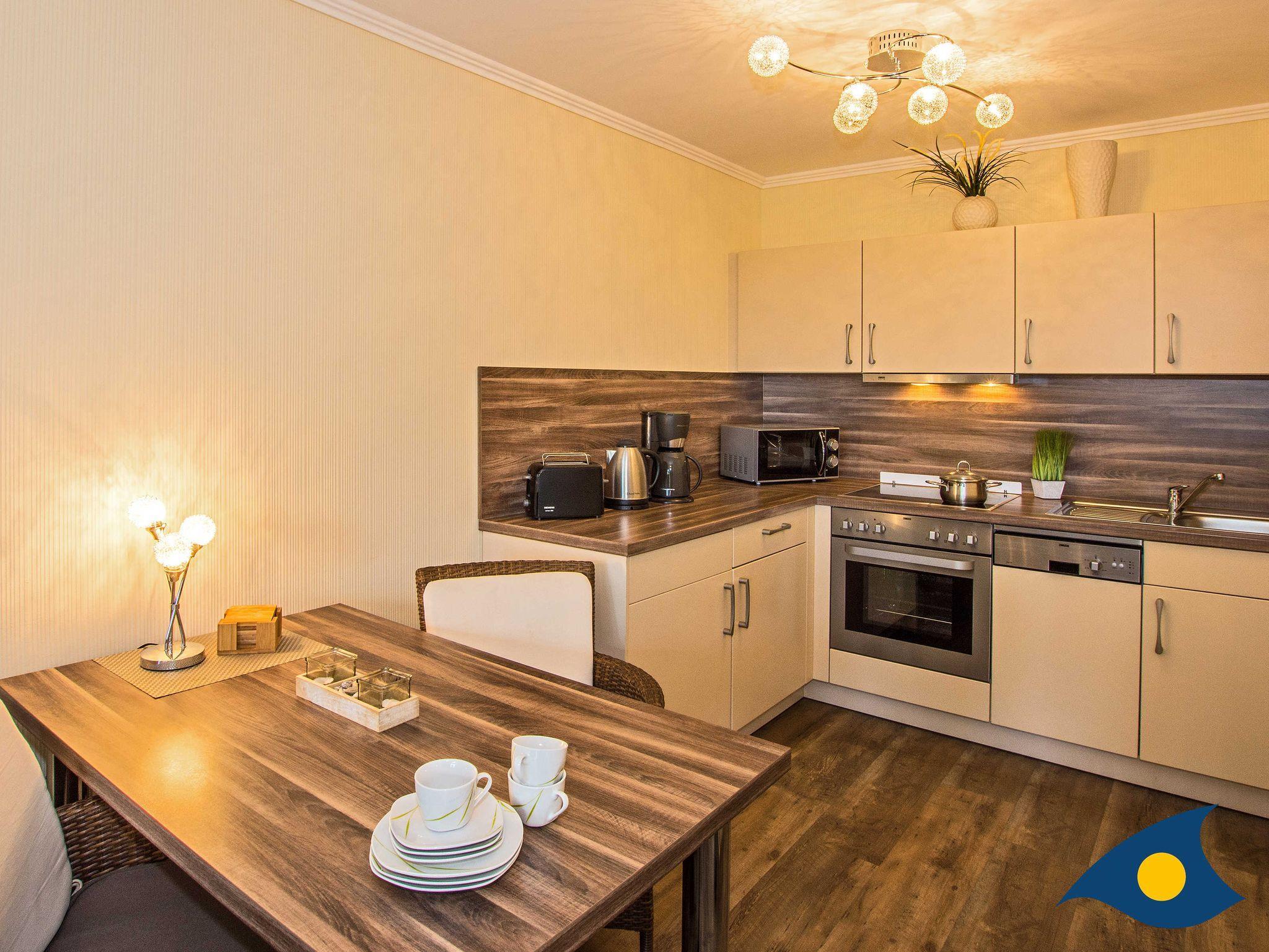 Modern, liebevoll und gemütlich ausgestattet begrüßt Sie diese herrliche 2-Raum-Ferienwohnung. Das Wohnzimmer mit dem bequemen Sofa, der großen Fensterfront und der offenen Küche lässt Sie einen traumhaften Urlaub zu Zweit erleben. Der schöne Balkon lädt zum Frühstücken, zum Stöbern in einem schönen Buch oder einem Gläschen Wein ein. Von hier aus reicht der Blick bis zum Meer und zum weißen Sandstrand. Diesen erreichen Sie in 3 Minuten zu Fuß.