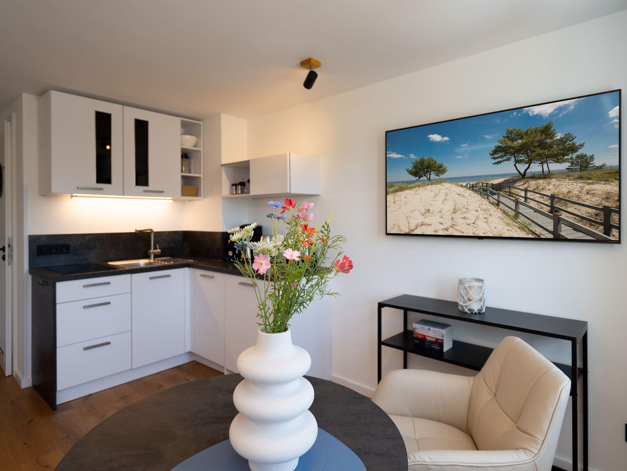 Gemütliches 2-Zimmer-Appartement mit Elektrokamin und moderner Ausstattung in der Villa Elisabeth, nur 400 m vom Ostseestrand entfernt.