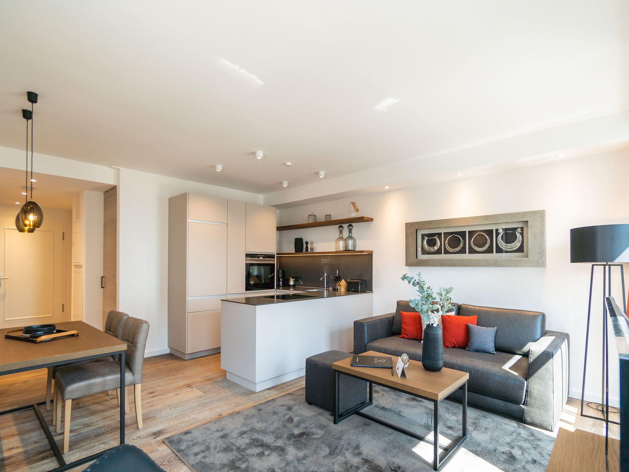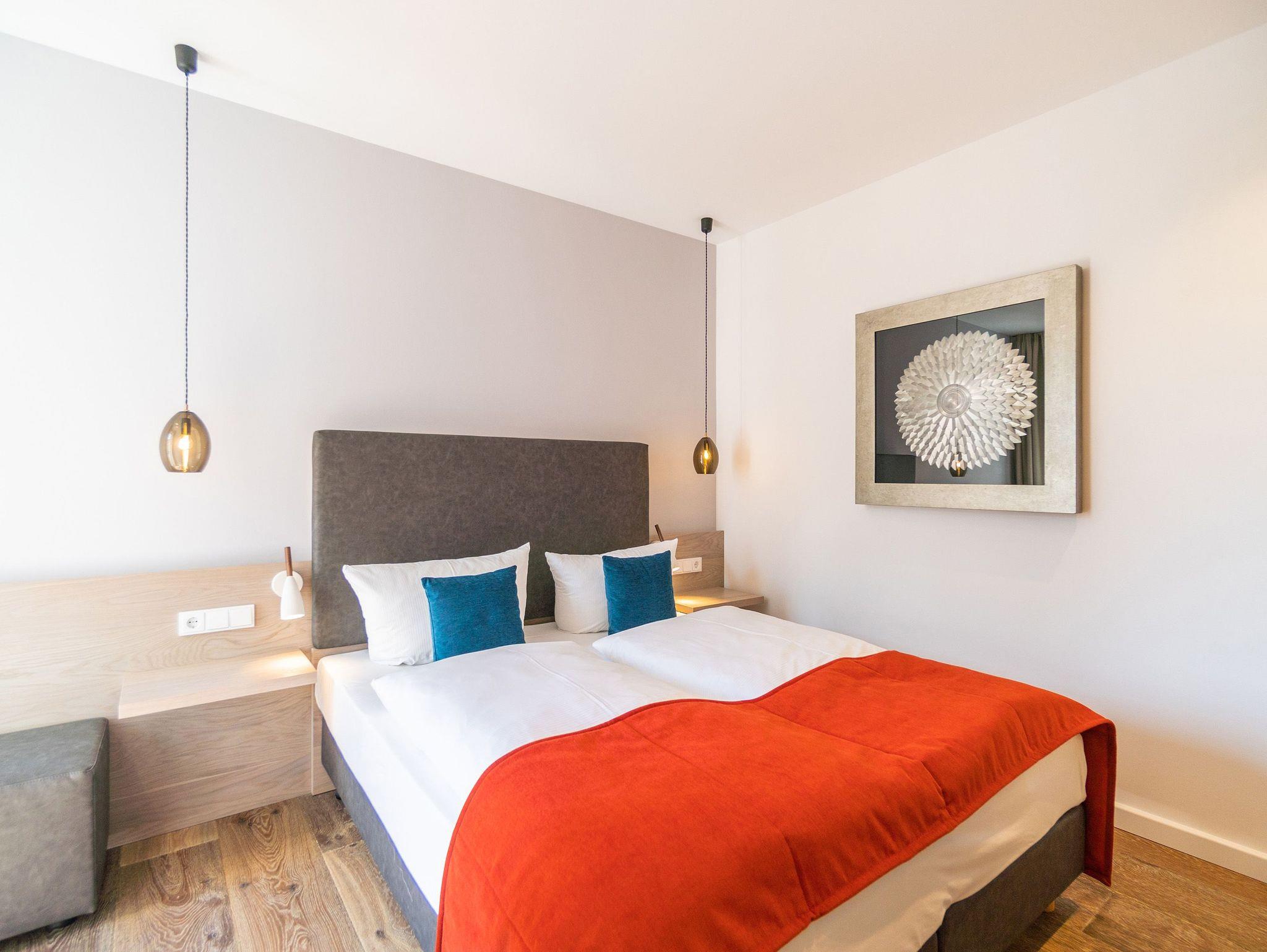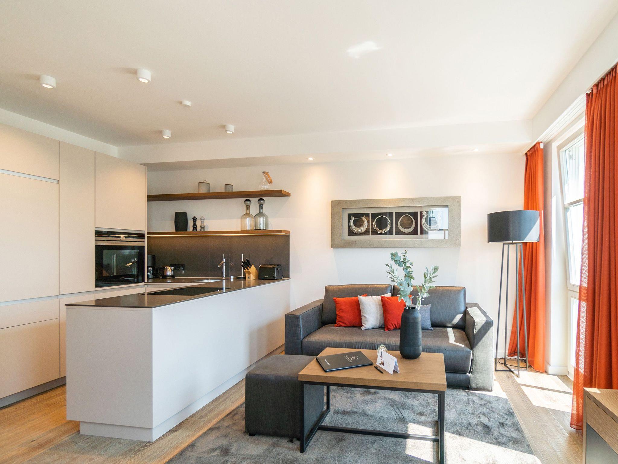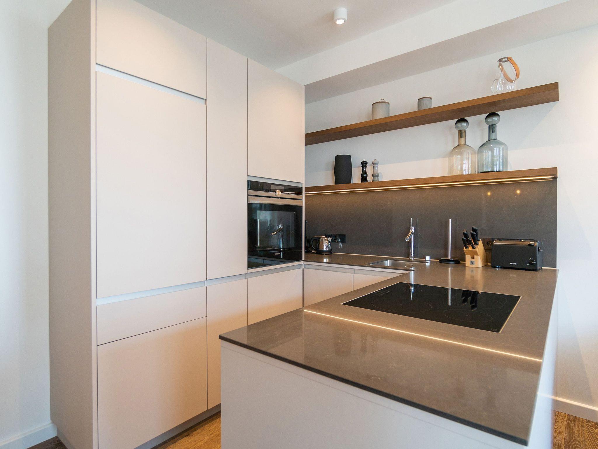 Von der Sonne verwöhnt wird dieses wunderschöne, 66 Quadratmeter große Appartement im 3. Obergeschoss. Schon direkt nach dem Aufstehen können Sie auf dem Balkon nicht nur die Morgensonne, sondern auch den Blick auf die glitzernde Ostsee genießen. Schöner kann der Urlaubstag doch nicht beginnen. Hell und sonnendurchflutet sind auch die drei Räume Ihres Urlaubsdomizils. Exklusivität und modernes Wohndesign treffen hier auf Leichtigkeit und Behaglichkeit. Ausgesuchte Design-Möbel, ein Bose-Soundsystem, das über das Handy bedienbar keine Klangwünsche offen lässt, ein Gas-Kamin, der auf Knopfdruck eine wohlige Kuschelatmosphäre verbreitet die Liste an besonderen Annehmlichkeiten, die dieses Appartement zu bieten hat, ist lang. Das offene Wohn-Esszimmer verfügt über einen riesigen Flat-TV, eine gemütliche Sofa-Sitzgruppe mit Schaukelstuhl, einen schönen, großen Esstisch und eine voll ausgestattete Küche. In dieser werden begeisterte Kochherzen höher schlagen. Denn hochwertige Markengeräte, edles Geschirr von ASA, eine von drei Seiten zugängige Kochinsel alles in modernem und zeitlos schlichtem Design warten nur darauf, dass sie damit ihre kreativen Gaumenfreuden in die Tat umsetzen. Die beiden Schlafzimmer sind mit bequemen Boxspringdoppelbetten (1,60 x 2,00), ablagefreudigen Schränken, Flat-TV und einem Zugang zum umlaufenden Süd-Ost-Balkon ausgestattet. Lassen Sie sich einfach fallen. Den Rest erledigt die wunderbare Wohlfühlatmosphäre. In zwei Bädern können sich Auszeithungrige frisch machen. Beide Badezimmer besitzen geräumige Regen-Duschen, einen großzügigen Waschtisch und ein WC. Wellness-Highlight des Masterbades ist eine Panoramasauna, die eine ganz private Entspannungsauszeit an kühlen Tagen oder Abenden erlaubt. In der Wohnung gibt es einen kleinen Abstellraum mit einem Waschtrockner. Bei uns wird Rundum-sorglos groß geschrieben. Darum sind bei Ihrer Anreise die Betten bezogen und Handtücher liegen für Sie bereit. Zudem ist das WLAN in der Wohnung kostenfrei. In der hochmodernen Tiefgarage ist für Sie der Pkw-Stellplatz Nr. 21 reserviert.