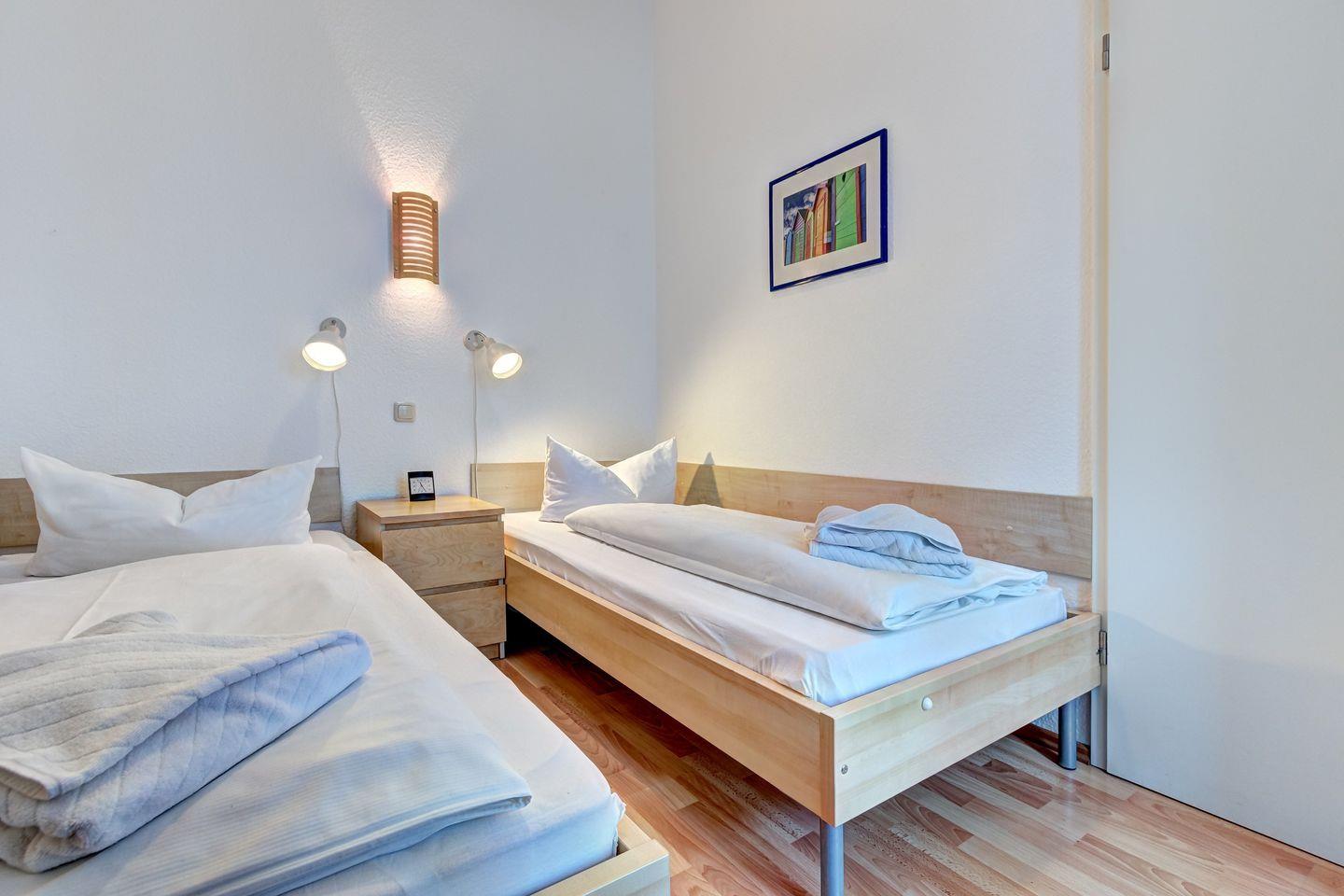 Die Wohnung ist ideal für zwei Personen und verfügt über ein gemütliches Schlafzimmer mit zwei Einzelbetten. Das gemütliche Schlafsofa bietet eine zusätzliche Aufbettungsmöglichkeit.