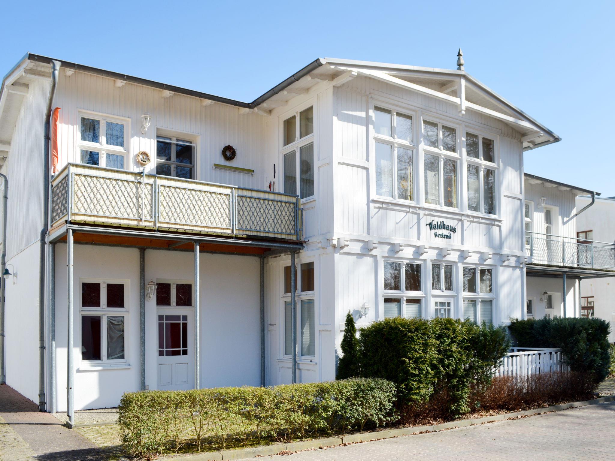 Appartementhaus "Waldhaus". 500 m vom Zentrum von Bansin, 2 km vom Zentrum von Heringsdorf, 30 km vom Zentrum von Wolgast, im Villenviertel, 150 m vom Meer. Zur Mitbenutzung: Grundstück 500 m2. Im Hause: Waschmaschine (zur Mitbenutzung, extra). Supermarkt 1 km, Bushaltestelle "Bansin Seebrücke" 120 m, Sandstrand 150 m. Nahe gelegene Sehenswürdigkeiten: Seebrücke Bansin 150 m.