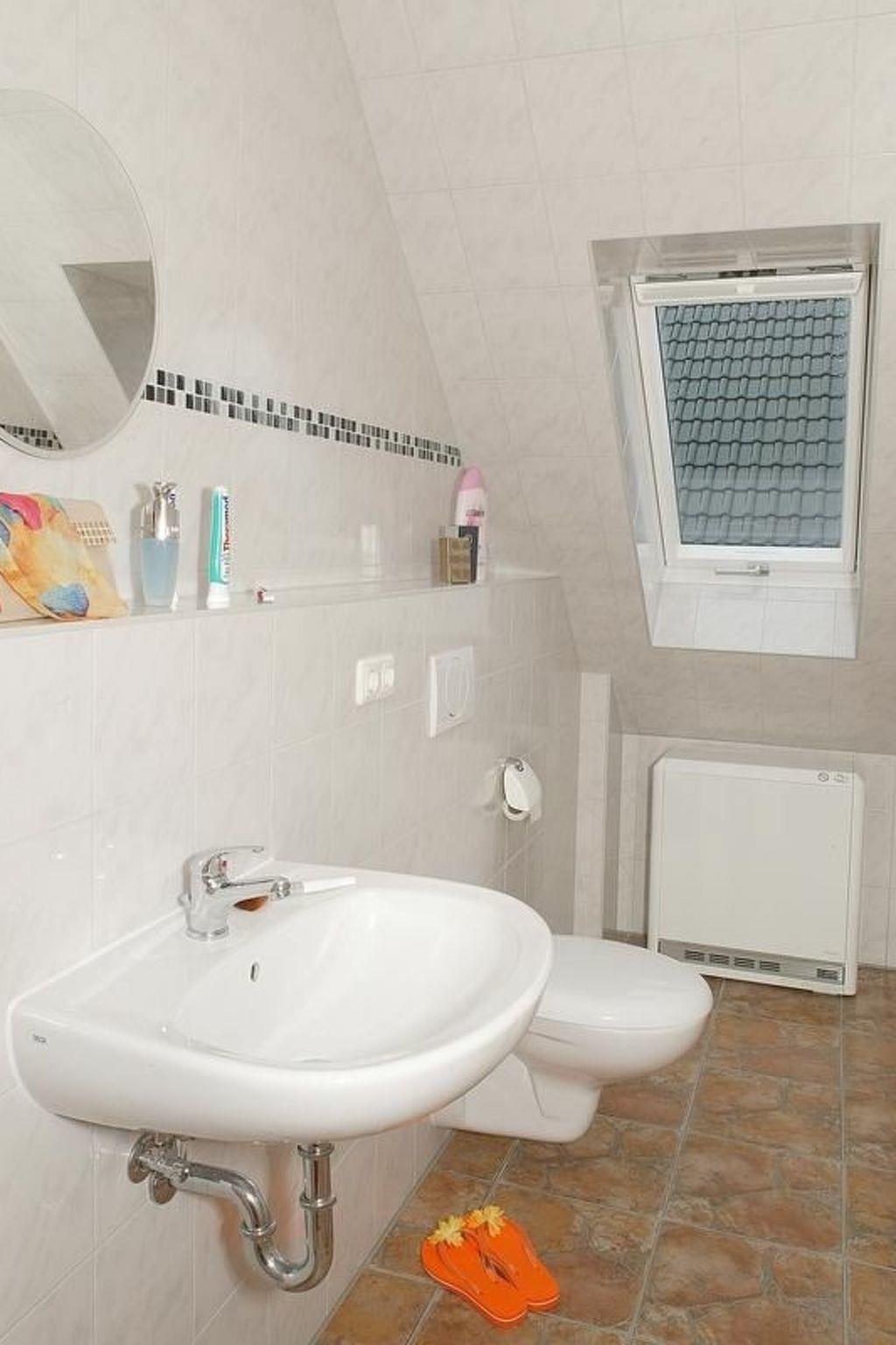 Das Erdgeschoss bietet Ihnen ein 35m² großes Wohnzimmer mit integrierter Küche und einem Kaminofen, ein Bad mit Dusche sowie einen Abstellraum. In der Küche stehen Ihnen, abgesehen von der Grundausstattung, ein Tiefkühlfach, ein Geschirrspüler, eine Mikrowelle, ein Toaster und ein Backofen zur Verfügung. Das Obergeschoss setzt sich aus zwei Schlafzimmern und einem Gäste WC zusammen. Eines der Schlafzimmer ist mit einem Ehebett (zwei Matratzen 90cm x 200cm) ausgestattet, der andere Schlafraum mit zwei Einzelbetten (90cm x 200cm). An allen Fenstern des Hauses sind Außenrolladen angebracht. Zum Wäsche waschen können Sie eine Waschmaschine und einen Trockner benutzen, diese befinden sich auf der anderen Strassenseite (gegen Gebühr).