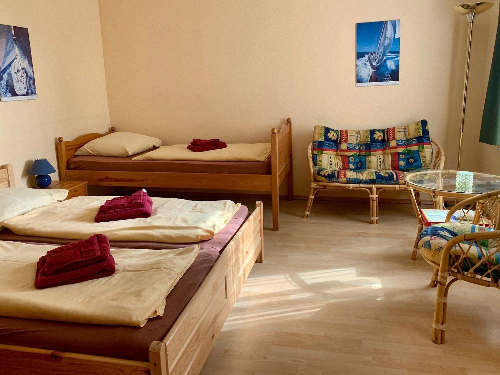 Ihre Ferienunterkunft verfügt über einen Wohn / Schlafraum, Küche, Erker mit Möglichkeit zum Essen sowie ein Badezimmer. Das Bett im Schlafraum setzt sich aus einem Doppelbett in den Maßen 0,80 x 2,00 m zusammen.- Ihre mitgebrachte Kleidung können Sie in einem Kleiderschrank aufbewahren. Die Küche ist mit 2-Platten Ceranfeld, Kühlschrank, Kaffeemaschine, Toaster und Wasserkocher ausgestattet. Das Bad begrüßt Sie mit Dusche, WC und Waschbecken und Föhn. Wäsche und Handtücher sind im Preis inbegriffen.- Ihr Auto kann auf einem der kostenfreien Parkplätze auf unserem Hof geparkt werden. Selbstverständlich können Sie auch ihre Wäsche in unserem Waschsalon waschen und trocknen. Gern können Sie Ihren Hund mitbringen es herrscht jedoch Leinenpflicht.
