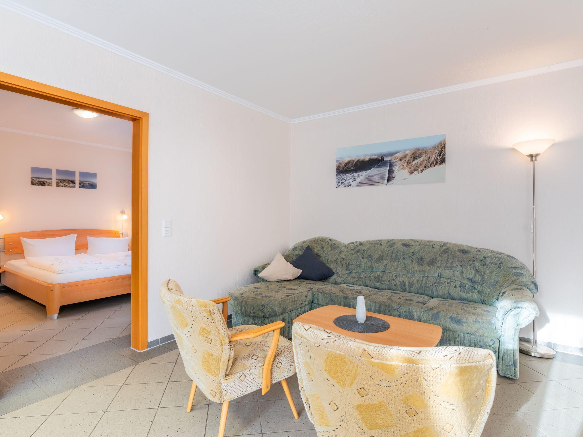 Innen erwartet Sie eine praktische und zugleich gemütliche Einrichtung. Das Herzstück der Wohnung bildet ein liebevoll gestalteter Wohn- und Essbereich mit einer Schlafcouch, der zum Verweilen einlädt. Eine offene Küche, komplett ausgestattet mit Herd, Backofen, Kaffeemaschine, Wasserkocher, Kühlschrank und Geschirrspüler, lässt keine Wünsche offen. Das Schlafzimmer verfügt über ein komfortables 180 cm breites Doppelbett und einen großen Kleiderschrank mit Spiegeltür. Das barrierefreie Badezimmer trumpft mit einer geräumigen, bodengleichen Dusche auf, die selbst an kühleren Tagen durch Fußbodenheizung für wohltuende Wärme sorgt.