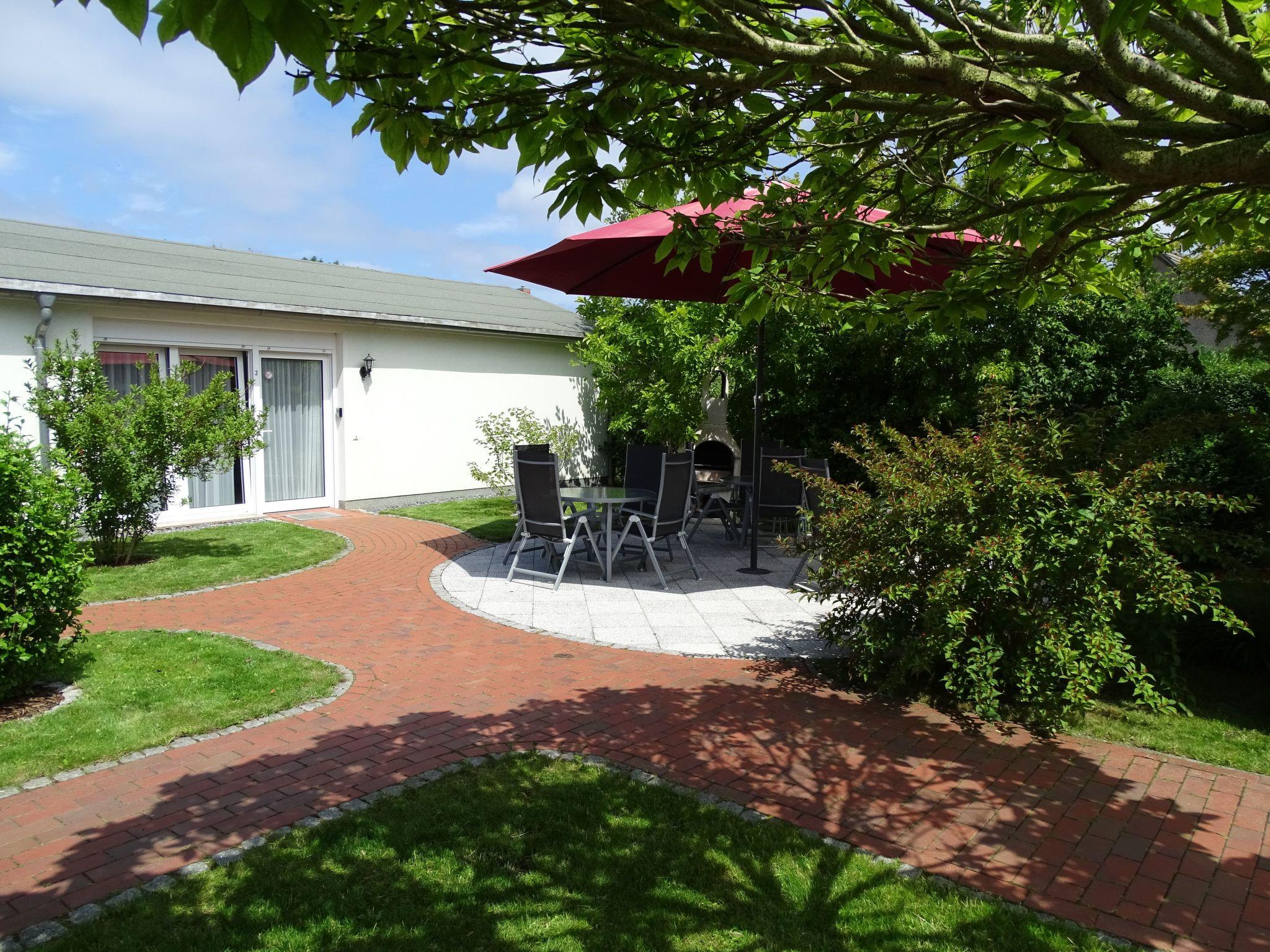 Im Außenbereich lädt eine ausgestattete Terrasse mit bequemen Gartenmöbeln und einem großen Sonnenschirm dazu ein, den Tag mit einem Frühstück in der Morgensonne zu beginnen oder die Abendstunden in Ruhe ausklingen zu lassen. Die Terrasse bietet den perfekten Rahmen für entspannte Momente unter freiem Himmel.