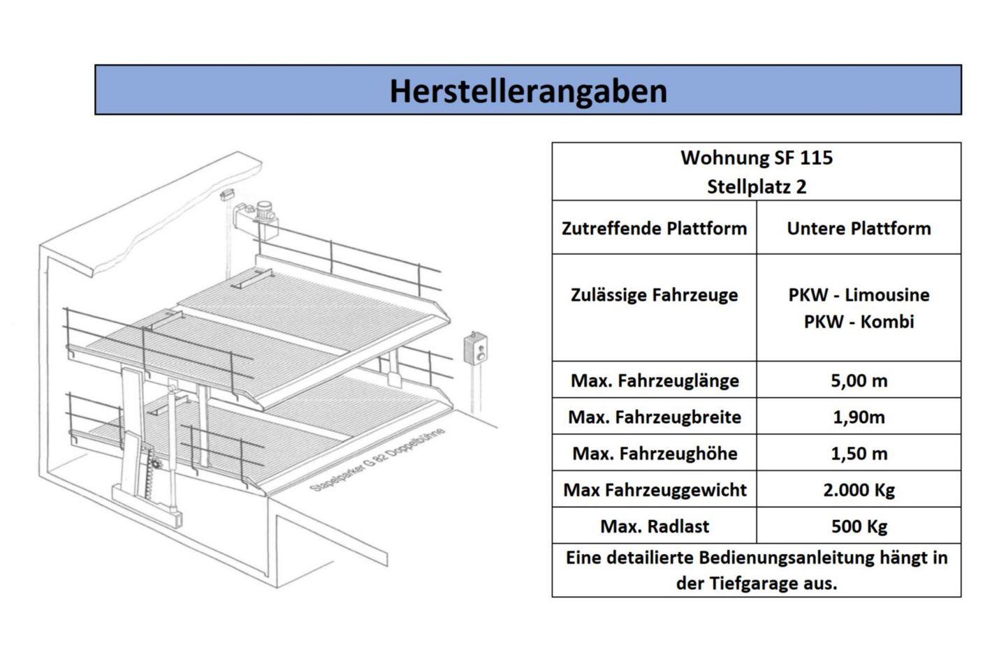 Ihr könnt einen PKW-Stellplatz in der hauseigenen Tiefgarage mit Doppelparksystem gegen Aufpreis hinzubuchen. Bitte gleicht die Maße eures PKW mit den Herstellerdaten sorgfältig im Vorfeld ab (siehe „Bildergalerie“). Alternativ kann euch die Gästebetreuung einen Stellplatz in der Tiefgarage Seepark, ca. 900 m entfernt, unter der Telefonnummer 038378-465020 reservieren (gegen Entgelt und nach Verfügbarkeit).