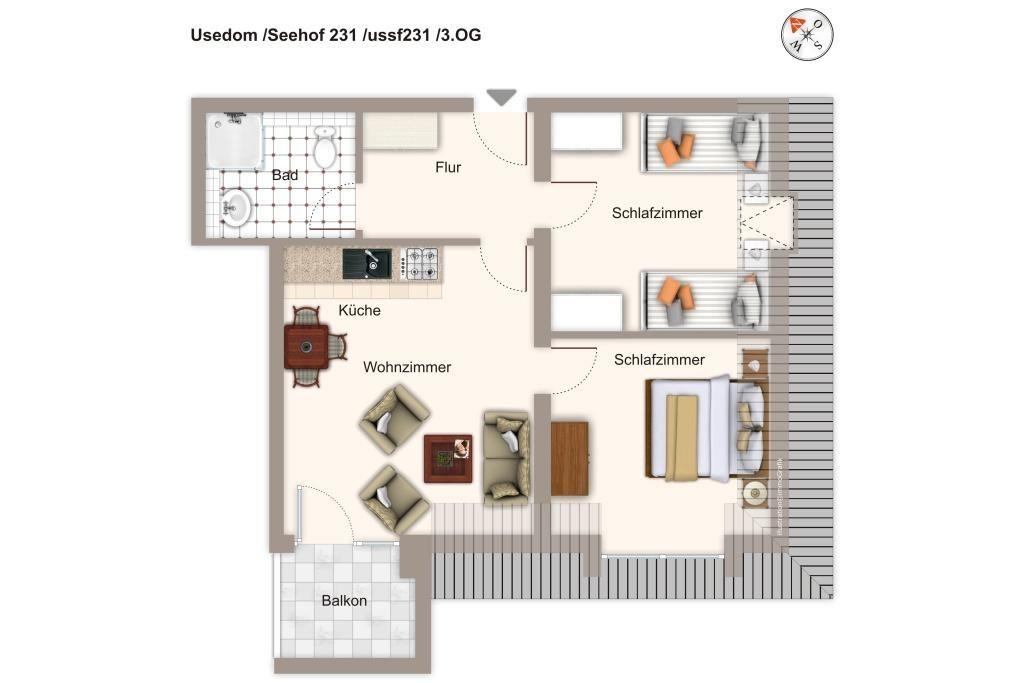 Die Dachgeschoss-Ferienwohnung befindet sich in Südwest-Lage, auf der 3. Etage des Hauses 2 in der beliebten Apartmentanlage Seehof - eingebettet zwischen Meer und See.