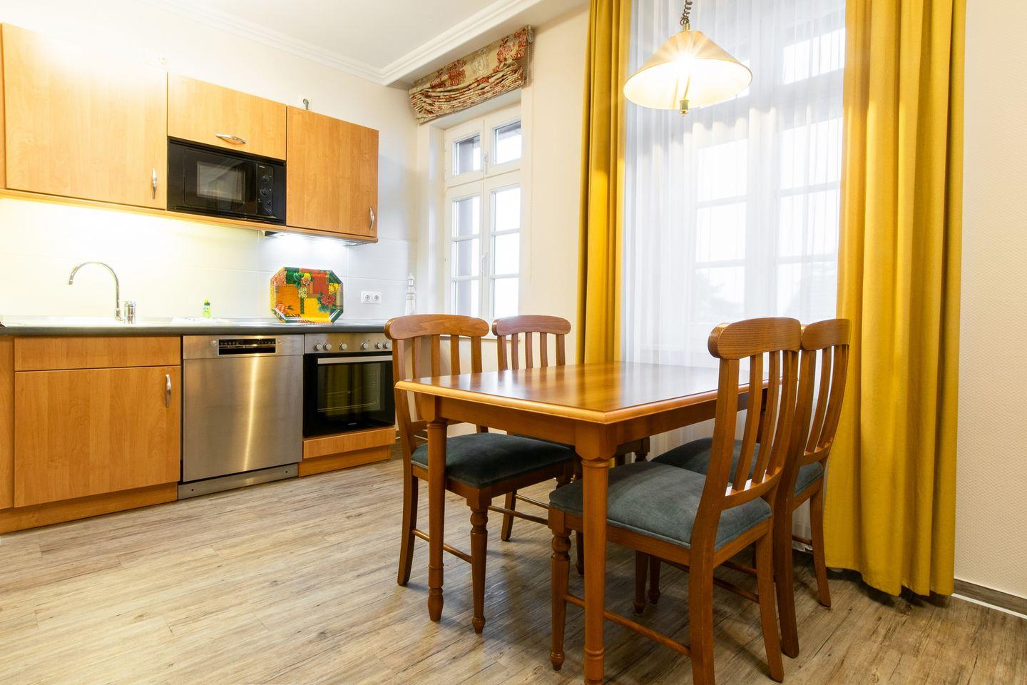 Gegen Gebühr könnt ihr Waschmaschine und Trockner im Haus nutzen. Ein Bügelbrett und Bügeleisen stehen im Waschraum zur gemeinschaftlichen Nutzung für euch bereit. In der Anlage verfügt über eine Sauna, die euch täglich ab 17.00 Uhr zur kostenfreien Verfügung steht. Im Haus befindet sich ein Lift. Dieser ist jedoch nur über eine Treppe mit 11 Stufen erreichbar. Gäste mit eingeschränkter Mobilität bitten wir, dies zu berücksichtigen. Der Saunabereich im Großen Seehof ist im Zeitraum vom 02.03.2026 bis voraussichtlich Ende Mai 2026 aufgrund von Sanierungsarbeiten nicht nutzbar.