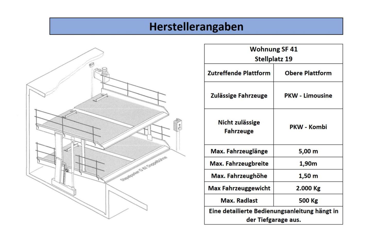 Ihr könnt einen PKW-Stellplatz in der hauseigenen Tiefgarage mit Doppelparksystem gegen Aufpreis hinzubuchen. Bitte gleicht die Maße eures PKW mit den Herstellerdaten sorgfältig im Vorfeld ab (siehe „Bildergalerie“). Alternativ kann euch die Gästebetreuung einen Stellplatz in der Tiefgarage Seepark, ca. 900 m entfernt, unter der Telefonnummer 038378-465020 reservieren (gegen Entgelt und nach Verfügbarkeit).