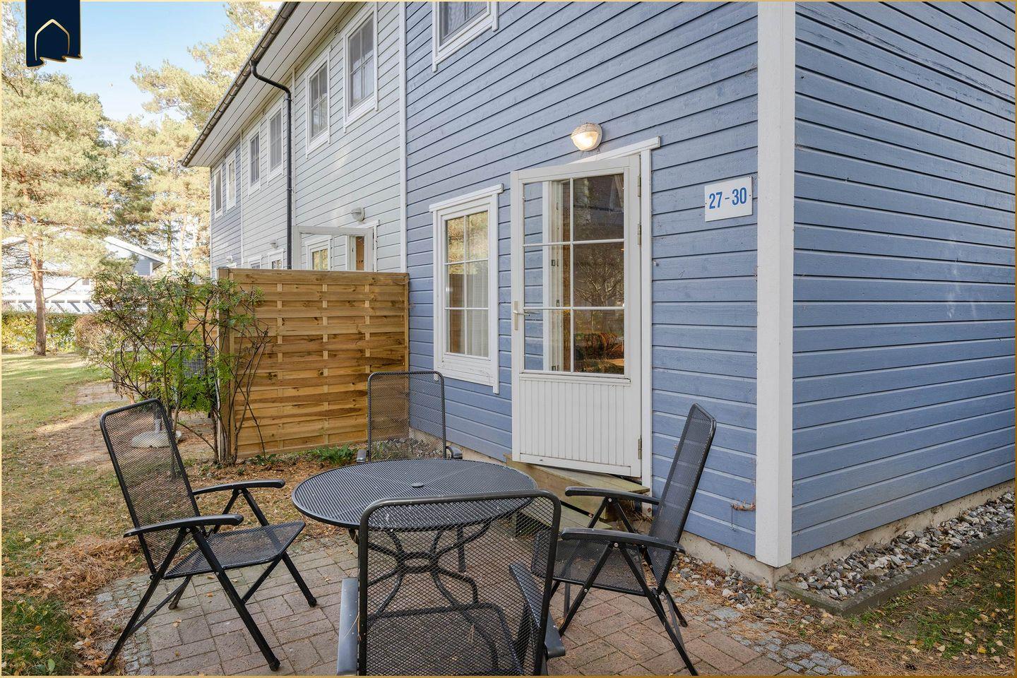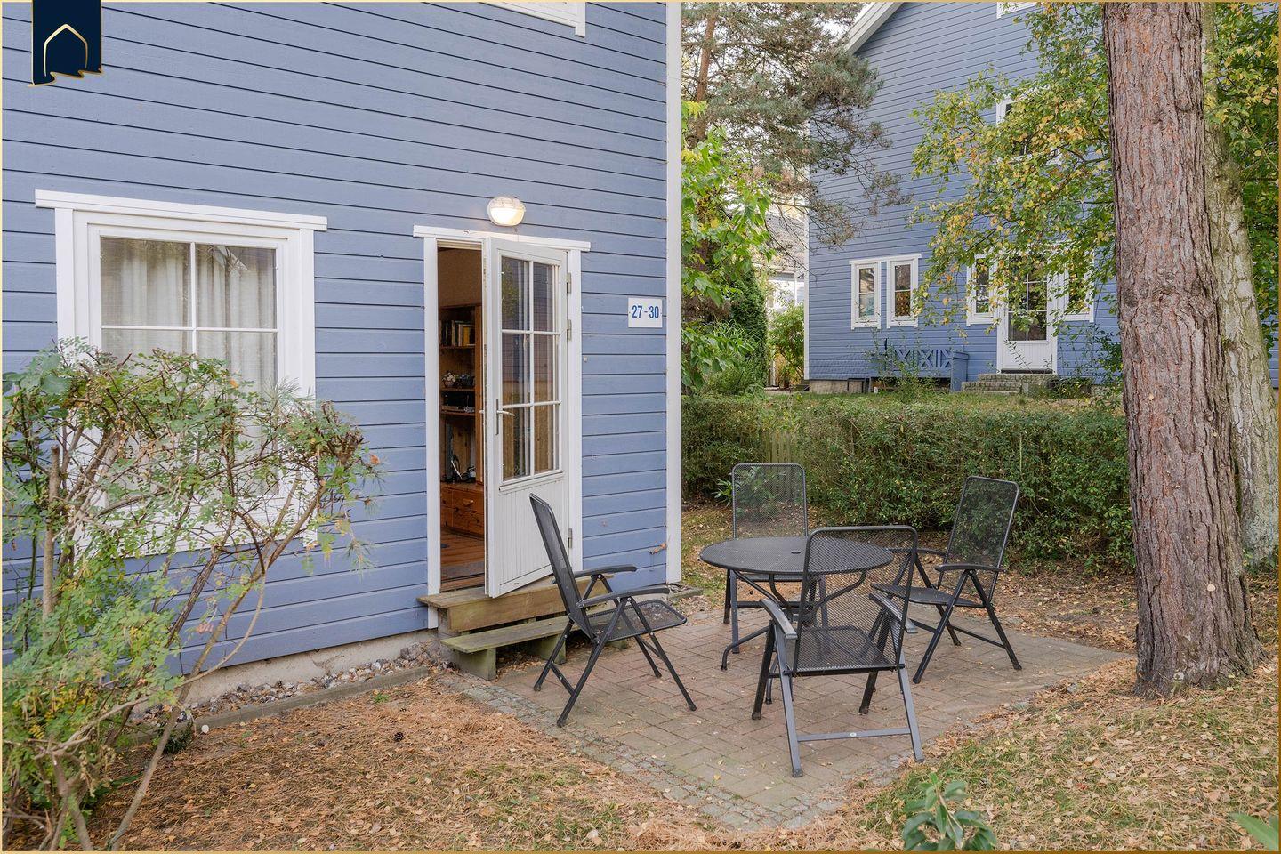 Der gepflegte Garten mit Terrasse, Gartenmöbeln, Sonnenliegen und Sonnenschirm – perfekt für entspannte Stunden im Freien. Ein Grill steht ebenfalls bereit und macht laue Sommerabende zum echten Genuss. Für Kinder gibt es einen Spielplatz in unmittelbarer Nähe und ein Treppengitter sorgt im Haus für zusätzliche Sicherheit. Auch ein Bollerwagen steht zur Verfügung – ideal für Ausflüge an den Strand oder zum nahegelegenen See, der nur 200?Meter entfernt ist.