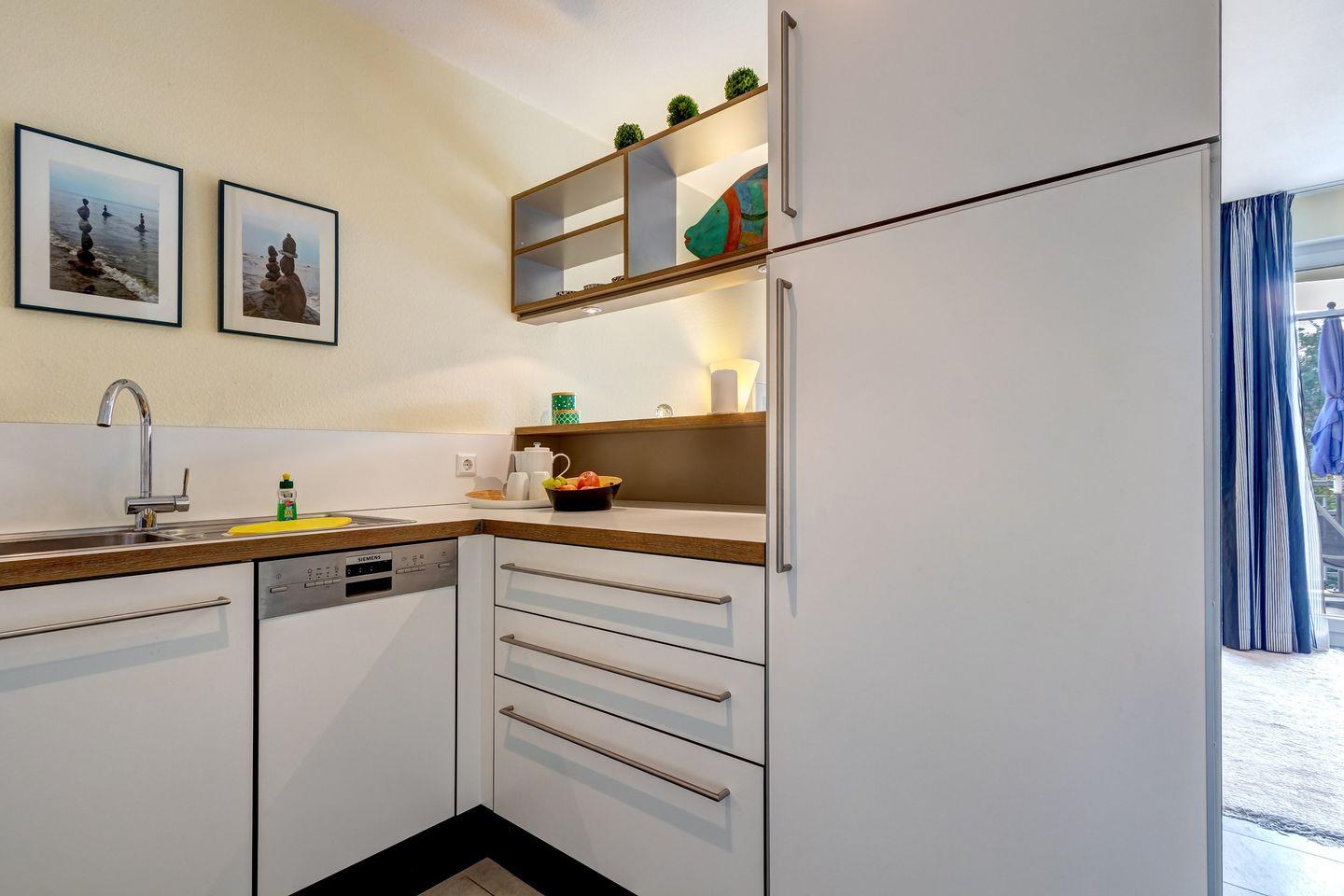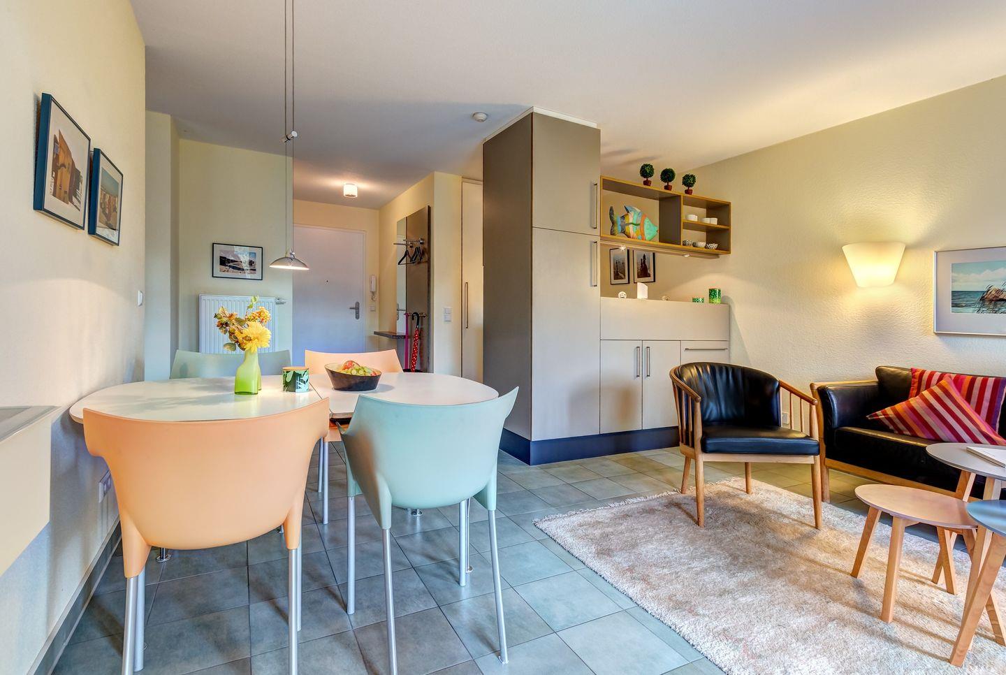 Gemütliche Ferienwohnung Schloonseevillen SV25 nahe Ostsee und Schloonsee mit überdachtem Balkon und moderner Ausstattung.