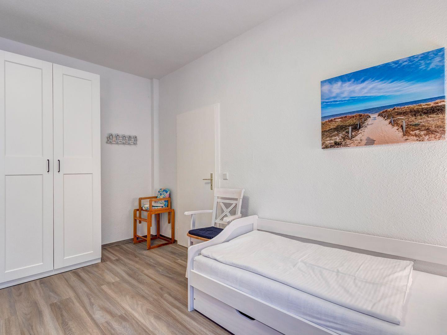 Die zwei Schlafzimmer sind gemütlich gestaltet: Das erste Schlafzimmer ist mit einem komfortablen Doppelbett ausgestattet, während das zweite Schlafzimmer über zwei Einzelbetten verfügt. Bei Ihrer Anreise sind die Betten bereits für Sie bezogen, und frische Handtücher liegen bereit, um Ihnen den Start in Ihren Urlaub so angenehm wie möglich zu gestalten.