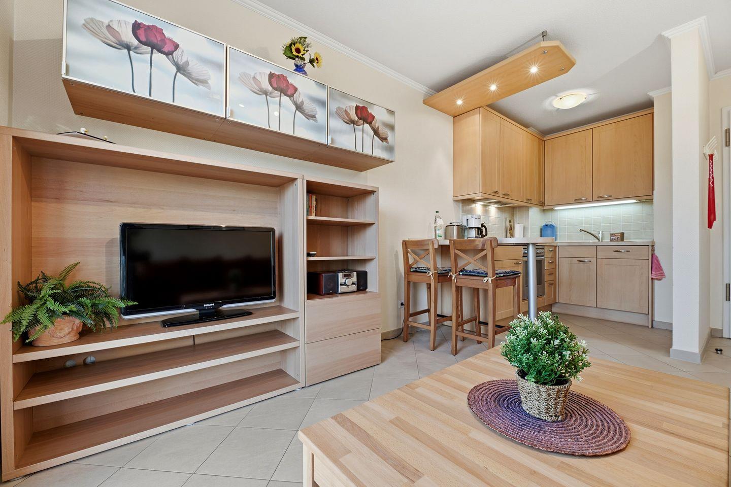 Der großzügige Wohn- und Essbereich mit Zugang zum sonnigen Balkon lädt zum Entspannen ein und bietet einen wunderbaren Rückzugsort nach einem erlebnisreichen Tag. Die offene Küche ist voll ausgestattet und bietet alles, was Sie für Ihre Mahlzeiten benötigen. Das helle Duschbad mit Fenster sorgt für zusätzlichen Komfort.