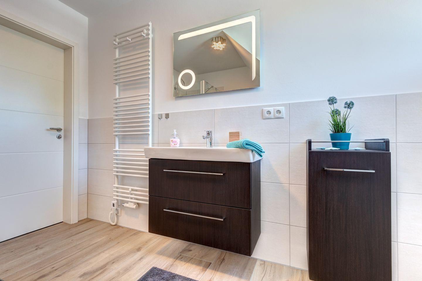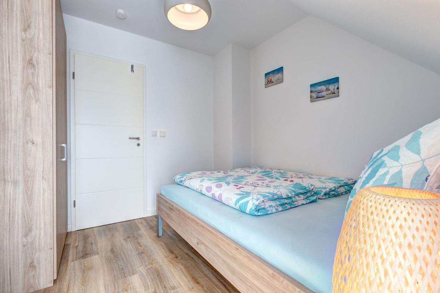 In der oberen Etage befinden sich ein weiteres Duschbad und drei Schlafzimmer. Alle Matratzen sind mit Milbenschutzbezügen versehen, um Ihnen einen ungestörten Schlaf zu ermöglichen. Für Familien mit kleinen Kindern gibt es die Möglichkeit, die Treppe mit einer Brüstungstür zu sichern.