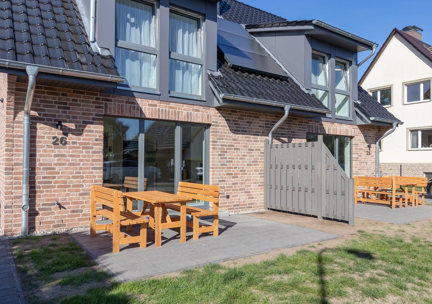 Der Garten mit Südterrasse lädt zum Verweilen im Freien ein. Eine Holzsitzgruppe bietet Platz für gesellige Stunden im Freien. Darüber hinaus stehen Ihnen Sonnenschirm, Liege, Gartenstühle, Grill und Wäscheständer im Hauswirtschaftsraum zur Verfügung, um Ihren Aufenthalt noch angenehmer zu gestalten.