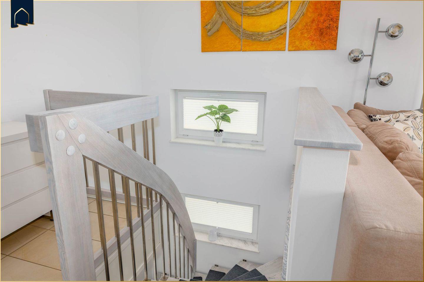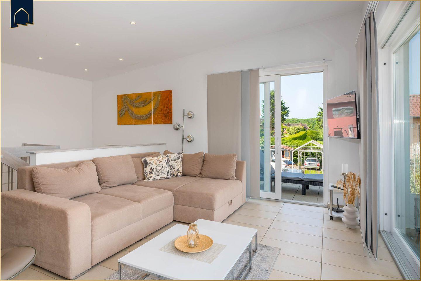 Die voll ausgestattete Küche lässt keine Wünsche offen und eignet sich ideal für Selbstversorger. Zur Ausstattung gehören unter anderem eine Spülmaschine, Mikrowelle, Kaffeemaschine, Toaster sowie ausreichend Geschirr und Kochutensilien. Das separate Schlafzimmer bietet ein komfortables Bett für erholsame Nächte, während das moderne Badezimmer mit Dusche funktional und stilvoll gestaltet ist. WLAN, Smart-TV, Fußbodenheizung und ein privater Parkplatz stehen selbstverständlich zur Verfügung.